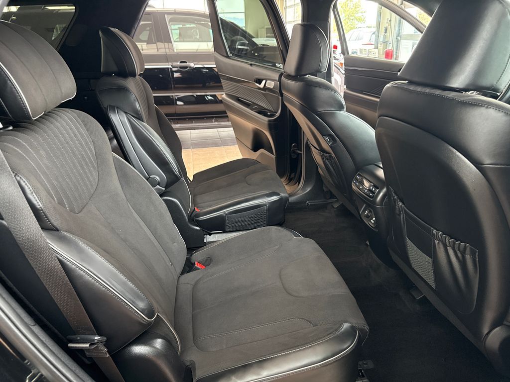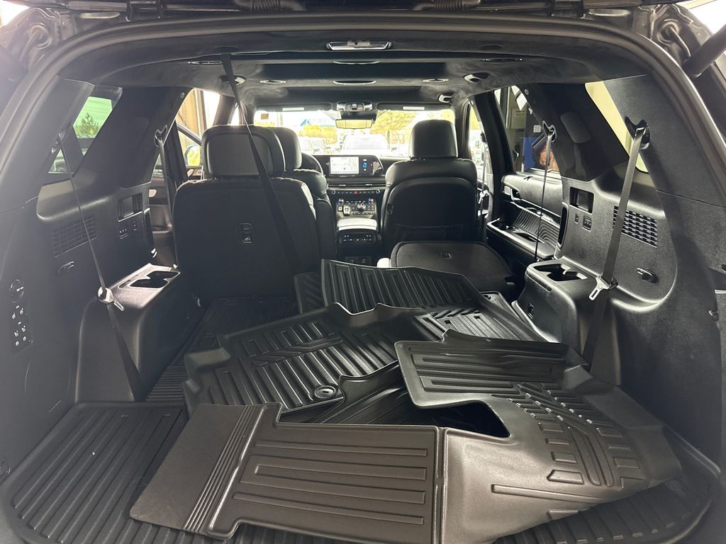 12 Speakers, 3rd row seats: split-bench, 4-Wheel Disc Brakes, ABS brakes, Air Conditioning, Alloy wheels, AM/FM radio: SiriusXM, Apple CarPlay & Android Auto, Auto High-beam Headlights, Auto-dimming door mirrors, Auto-dimming Rear-View mirror, Auto-leveling suspension, Automatic temperature control, Brake assist, Bumpers: body-color, Cargo Blocks, Cargo Net, Carpeted Floor Mats, Compass, Delay-off headlights, Driver door bin, Driver vanity mirror, Dual front impact airbags, Dual front side impact airbags, Electronic Stability Control, Emergency communication system, Exterior Parking Camera Rear, Four wheel independent suspension, Front anti-roll bar, Front Bucket Seats, Front Center Armrest, Front dual zone A/C, Front reading lights, Fully automatic headlights, Garage door transmitter: HomeLink, harman/kardon® Speakers, Heads-Up Display, Heated & Ventilated Front Bucket Seats, Heated door mirrors, Heated front seats, Heated rear seats, Heated steering wheel, Illuminated entry, Knee airbag, Leather steering wheel, Low tire pressure warning, Memory seat, Microfiber Suede Seat Trim, Mudguards, Navigation System, Occupant sensing airbag, Option Group 01, Outside temperature display, Overhead airbag, Overhead console, Panic alarm, Passenger door bin, Passenger vanity mirror, Power door mirrors, Power driver seat, Power Liftgate, Power moonroof, Power passenger seat, Power steering, Power windows, Radio data system, Radio: AM/FM/MP3 Premium Audio System, Rain sensing wipers, Rear air conditioning, Rear anti-roll bar, Rear audio controls, Rear reading lights, Rear side impact airbag, Rear window defroster, Rear window wiper, Reclining 3rd row seat, Remote keyless entry, Roadside Assistance Kit, Roof rack, Security system, Severe Weather Kit, Speed control, Speed-sensing steering, Split folding rear seat, Spoiler, Steering wheel mounted audio controls, Tachometer, Telescoping steering wheel, Tilt steering wheel, Traction control, Trip computer, Turn signal indicator mirrors, Variably intermittent wipers, Ventilated front seats, Ventilated rear seats, Wheels: 20'' x 7.5J Black Liquid Paint Alloy.