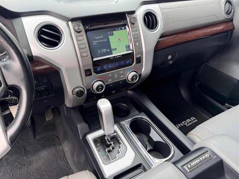 2017 Toyota Tundra Limited — Silver Sky Metallic exterior, Graphite interior. This example is powered by the factory 5.7L Flex-Fuel V8 (381 hp / 401 lb-ft) paired with Toyota’s automatic transmission, and it is in excellent overall condition with a clean CARFAX report.