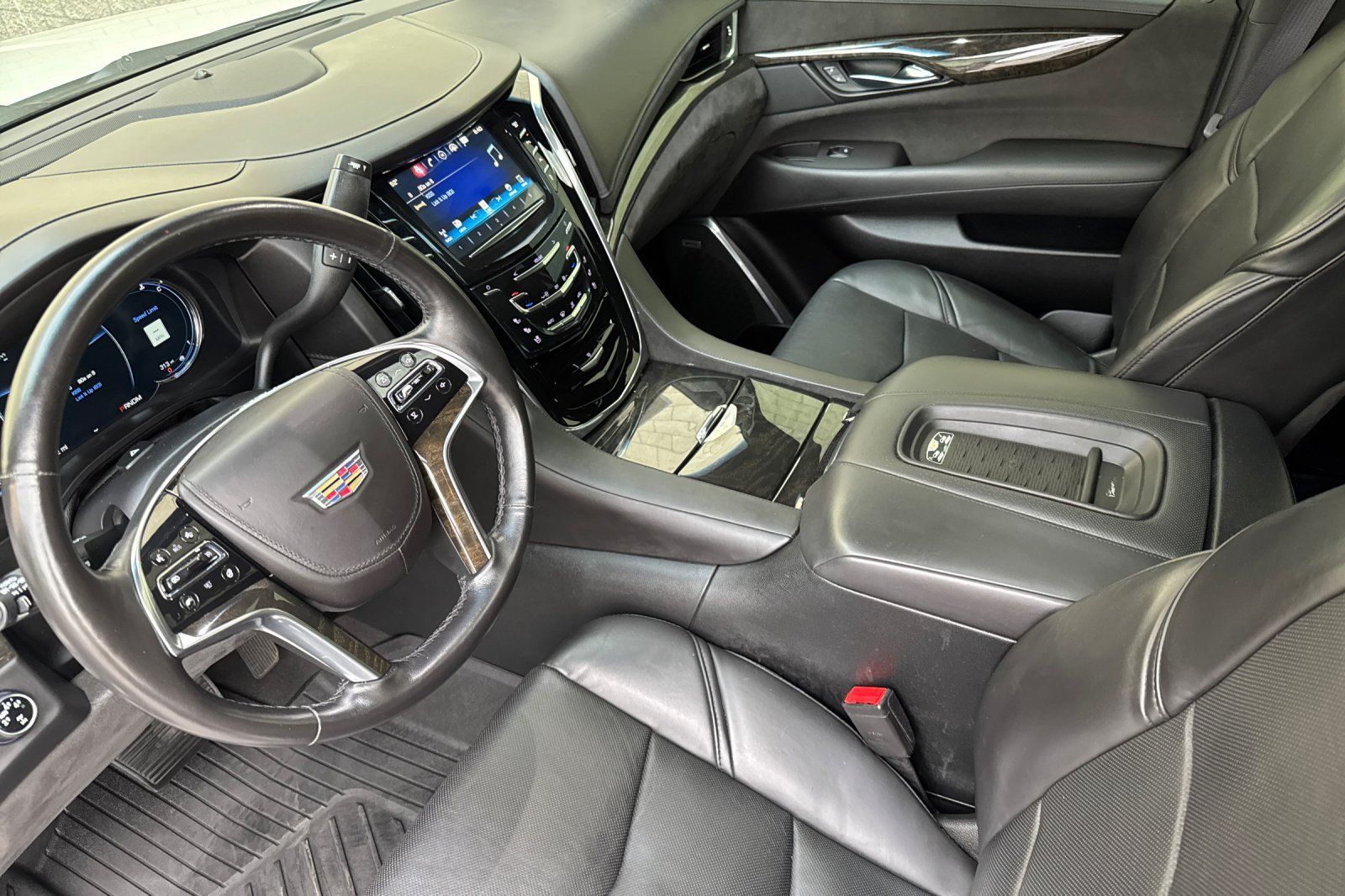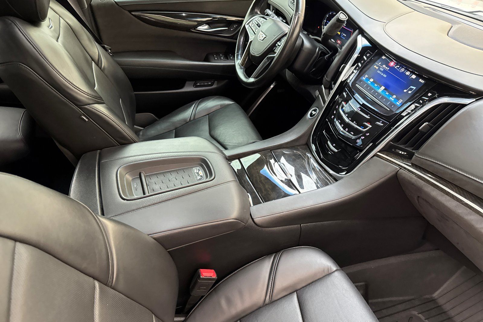 Inside our Platinum ESV, find yourself pampered by premium power heated/cooled/massaging power leather seating, a heated steering wheel, tri-zone automatic climate control, and a gorgeous sunroof. Cadillac's CUE and media touchscreen with full-color navigation will guide you to your destination. At the same time, you stay safely connected via Bluetooth and OnStar with WiFi capability or while listening to the premium Bose sound system with available HD/satellite radio. Of course, your passengers will enjoy the rear entertainment system with a Blu-ray player and four screens. The most acclaimed SUV ever, our Escalade ESV will exceed your expectations!