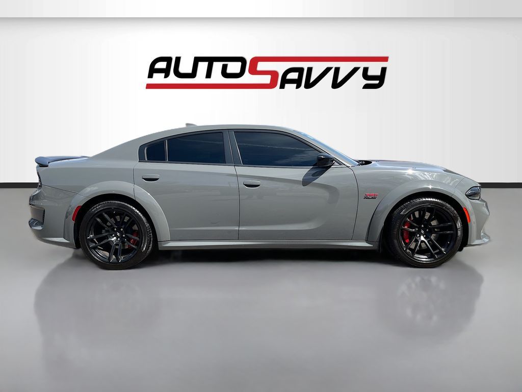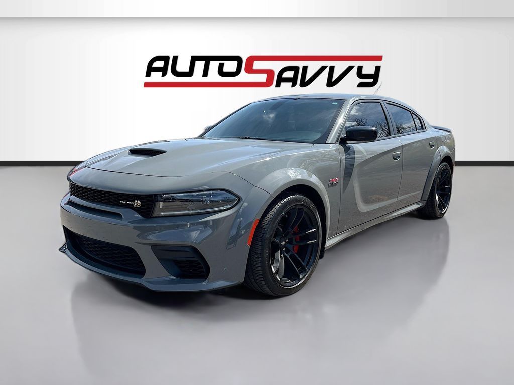 Unleash the thrill of driving with the 2023 Dodge Charger Scat Pack Widebody, available now at AutoSavvy Colorado Springs. This certified pre-owned sedan, with just 7,886 miles, is a powerhouse of performance and style. Its HEMI 6.4L V-8 engine, boasting 485 horsepower and cylinder deactivation, ensures an exhilarating ride. The Charger?s striking Destroyer Gray Clearcoat exterior is complemented by a luxurious black Nappa/Alcantara leather interior. Enjoy the seamless 8-speed automatic transmission and rear-wheel drive, along with state-of-the-art technology including an 8.4-inch touchscreen, Apple CarPlay, Android Auto, and a 4G LTE Wi-Fi hotspot. For added comfort, indulge in heated and ventilated front seats, a heated steering wheel, and the Plus Group package featuring memory settings and a premium-stitched dash panel. The current status of the title is branded, reflecting AutoSavvy's dedication to transparency and quality assurance. Every vehicle in our inventory undergoes a comprehensive inspection to meet stringent safety and reliability standards, providing peace of mind with every purchase. As a certified pre-owned vehicle, this Dodge Charger comes with our 4-month/4,500-mile warranty, offering additional confidence in your investment. Visit AutoSavvy Colorado Springs today to explore this exceptional sedan and become part of our satisfied customer community. Don?t miss the opportunity to own a vehicle that perfectly combines high performance, cutting-edge technology, and sleek design.