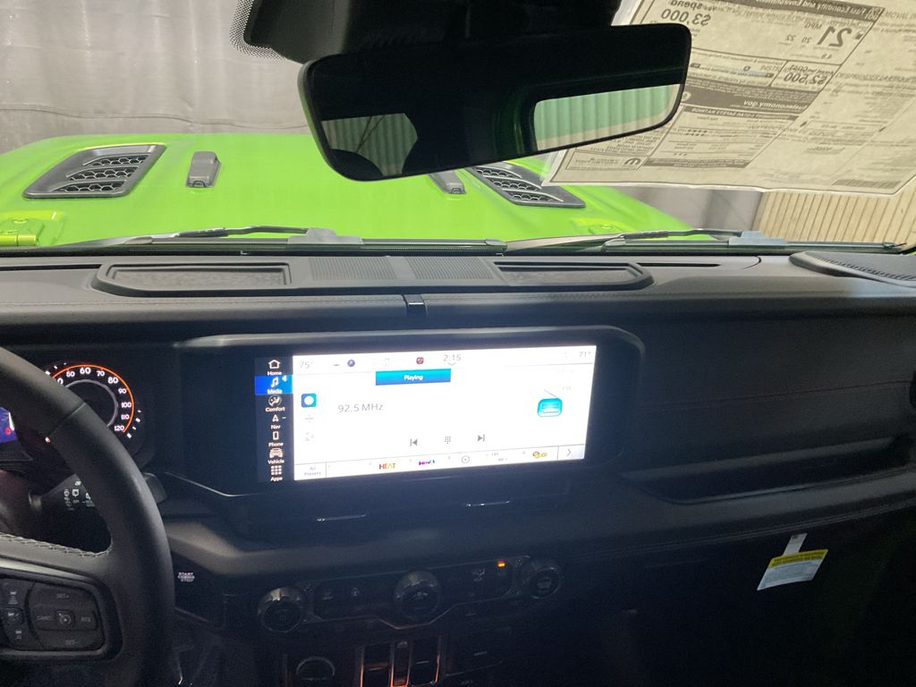 Convenience Group: Universal Garage Door Opener; Heated Front Seats; Heated Steering Wheel. Technology Group: Google Android Auto; SiriusXM Radio Service; 12.3" Touchscreen Display; Integrated Off-Road Camera; HD Radio; Rear View Auto Dim Mirror; Integrated Voice Command with Bluetooth; Connectivity - US/Canada; Uconnect 5 Navigation with 12.3" Display; GPS Navigation; 4G LTE Wi-Fi Hot Spot; SiriusXM with 360L; Connected Travel and Traffic Services; Apple CarPlay. Quick Order Package 22R Rubicon. Nappa Leather Seats. Body Color 3-Piece Hard Top. Alpine Premium Audio System. MOPAR Hardtop Headliner. Mojito Clearcoat. Body Color Rubicon Highline Flare. MOPAR All-Weather Floor Mats. MOPAR Plastic Door Sill Guards. Equipment listed is based on original vehicle build and subject to change. Please confirm the accuracy of the included equipment by calling the dealer prior to purchase.