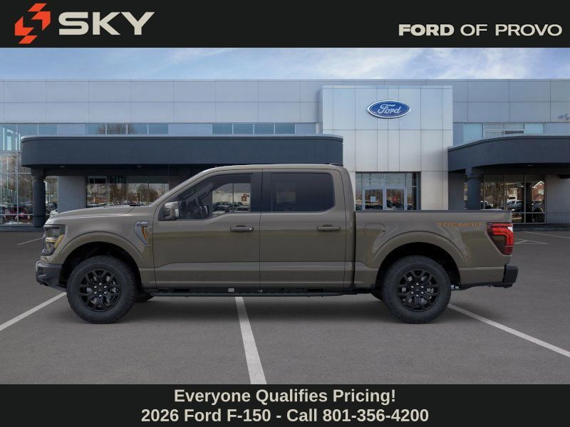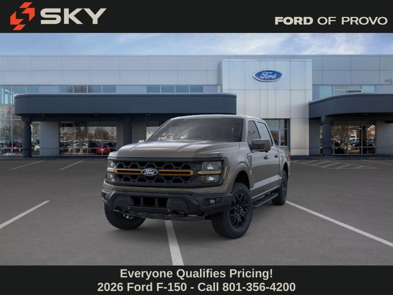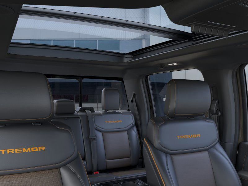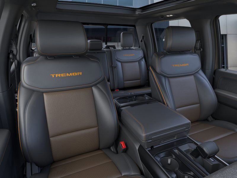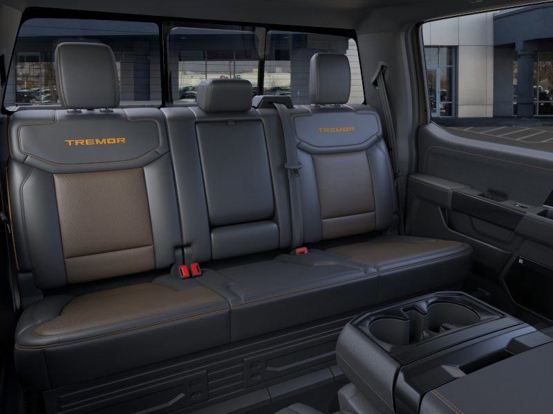 This 2026 Gray Ford F-150 Tremor 4WD is well equipped and includes these features and benefits: Bed Utility Package (4 Pickup Box Tie-Down Plates, LED Box Lighting, and Power Tailgate), Equipment Group 402A High (2nd Row Heated Seats, Auto-Dimming Rear-View Mirror, Electronic Locking with 3.73 Axle Ratio, Front Axle with Torsen Differential, Heated Steering Wheel, LED Taillamps, Media Bin Door, Modular Front Bumper and Carbon Black Rear Bumper, Power Glass Heated Sideview Mirrors, Power-Adjustable Pedals with Memory, Radio: B&O Unleashed Sound System by Bang & Olufsen, Rain-Sensing Wipers, Unique Tremor Leather-Trimmed Seats, Universal Garage Door Opener, and Wheels: 18'' Alloy with Dark Matte Finish), Ford Connectivity Package (1-Year Included), GVWR: 7,050 lbs Payload Package, Internet access capable: 5G Modem - Ford Connectivity Package, Mobile Office Package (Console Worksurface, Partitioned Lockable Rear Storage, and Wireless Charging), Tow/Haul Package (Integrated Trailer Brake Controller), 4WD, 4-Wheel Disc Brakes, 8 Speakers, ABS brakes, Adjustable pedals, Air Conditioning, Alloy wheels, AM/FM radio: SiriusXM with 360L, Auto High-beam Headlights, Auto-dimming Rear-View mirror, Automatic temperature control, Brake assist, Bumpers: body-color, Compass, Delay-off headlights, Driver door bin, Driver vanity mirror, Driver's Side SecuriCode Keyless-Entry Keypad, Dual front impact airbags, Dual front side impact airbags, Electronic Stability Control, Emergency communication system: SYNC 4 911 Assist, Front anti-roll bar, Front Bucket Seats, Front Center Armrest, Front dual zone A/C, Front fog lights, Front reading lights, Front wheel independent suspension, Fully automatic headlights, Heated door mirrors, Heated front seats, Illuminated entry, Low tire pressure warning, Navigation system: Connected Navigation, Occupant sensing airbag, Outside temperature display, Overhead airbag, Overhead console, Panic alarm, Passenger door bin, Passenger vanity mirror, Power door mirrors, Power driver seat, Power passenger seat, Power steering, Power windows, Radio data system, Radio: B&O Sound System by Bang and Olufsen, Rear reading lights, Rear step bumper, Rear window defroster, Remote keyless entry, Security system, Speed control, Split folding rear seat, Steering wheel mounted audio controls, SYNC 4 with Enhanced Voice Recognition, Tachometer, Tailgate Step with Work Surface, Telescoping steering wheel, Tilt steering wheel, Traction control, Trip computer, Turn signal indicator mirrors, Twin Panel Moonroof, Unique Sport Cloth 40/Console/40 Power Front Seat, and Variably intermittent wipers.