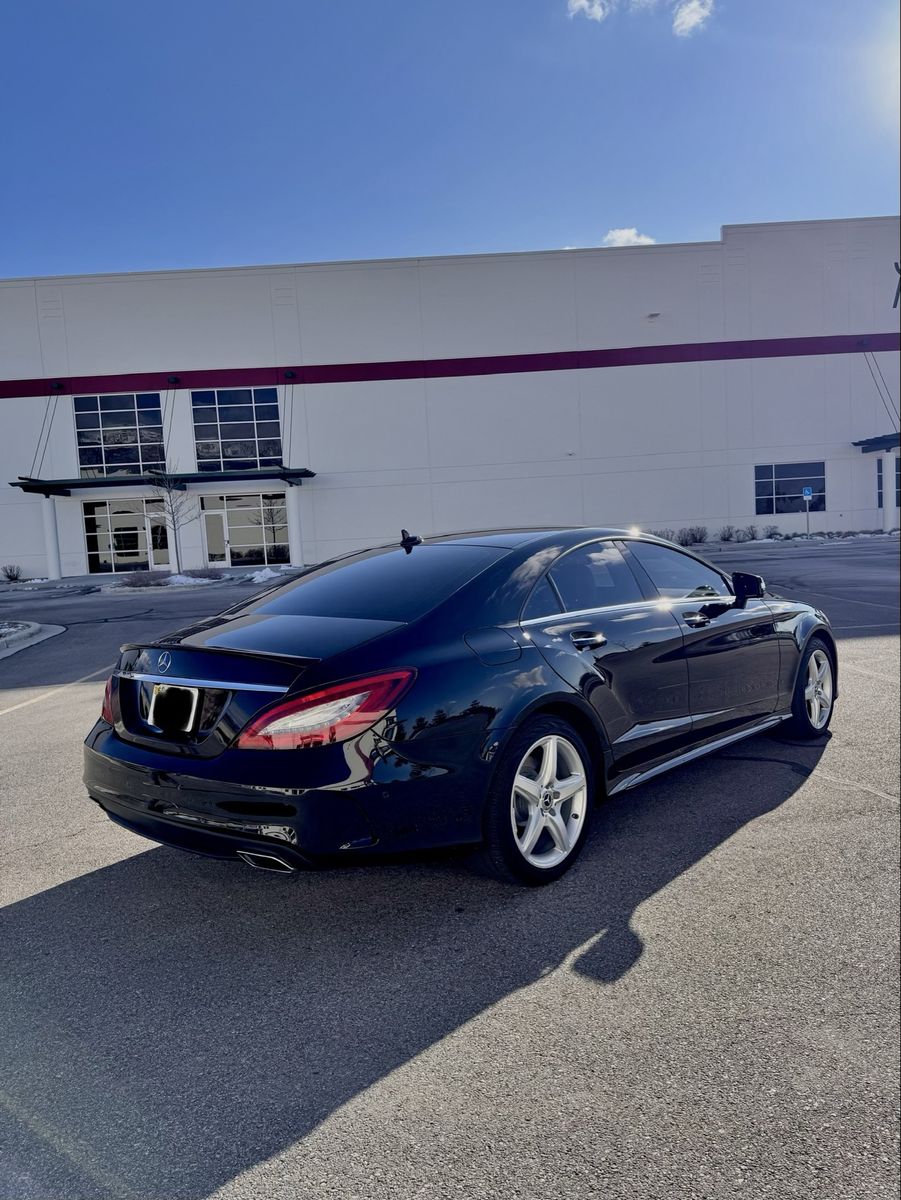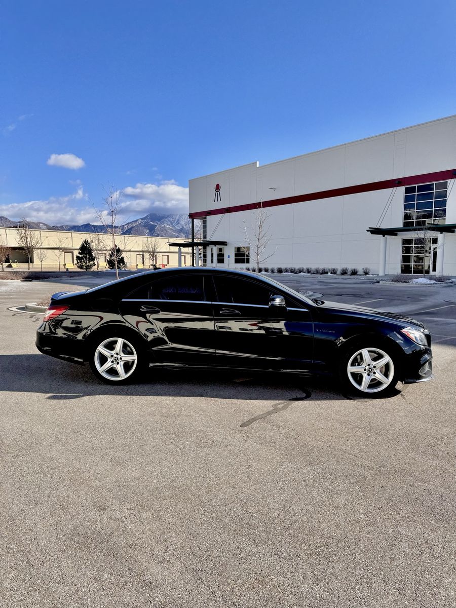 2018 Mercedes Benz CLS550 4Matic with AMG Line, Premium Package 2, lane tracking and parking assist. Newer all‑season tires and fresh carbon ceramic brakes & illuminated front badge. Clean title, recently serviced and in excellent shape inside and out.