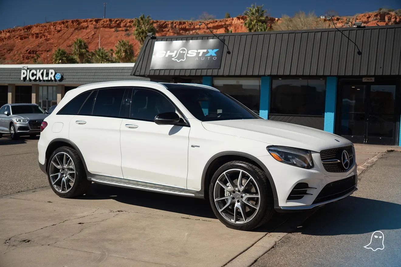 This 2017 Mercedes-Benz AMG GLC 43 4MATIC in Polar White is a high-performance luxury SUV that perfectly bridges the gap between a daily driver and a track-inspired machine. With an original MSRP of over $65,000, this AMG-tuned GLC features a biturbo V6 and the advanced Air Body Control suspension for a ride that is as versatile as it is fast.