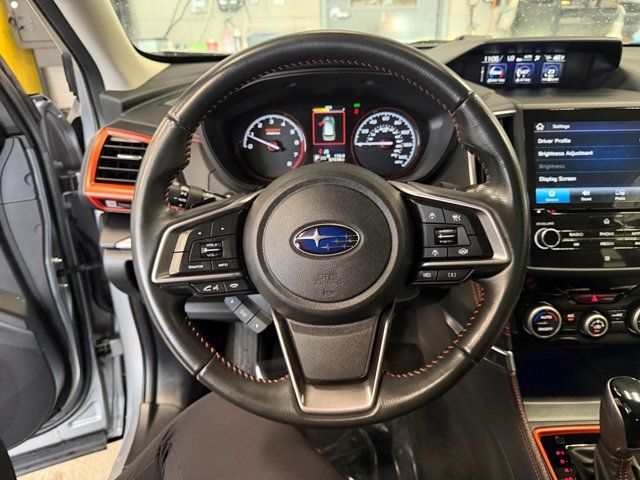 Audio Sys/Drvr Ast Tech/Rev Auto Brake/Pwr Rr Gate,3.70 Axle Ratio,Wheels: 18 x 7.0J Black Finish Aluminum Alloy,Heated Front Bucket Seats,Sport Cloth Upholstery,Radio: Subaru Starlink 6.5 Multimedia Plus System,Radio: Subaru Starlink 8.0 Multimedia Plus System,Auto-Dimming Mirror w/Compass & HomeLink,Cargo Net,All-Weather Floor Liners,Auto-Dimming Exterior Mirror w/Approach Lighting,Rear Bumper Cover,Rear Seatback Protector,Splash Guards,Popular Package #2,Blind Spot Detection w/Rear Cross Traffic Alert,harman kardon 576W Amp & Speaker System,Power Rear Gate,Paddle-Shift Control Switches,Reverse Automatic Braking System (RAB),4-Wheel Disc Brakes,STARLINK/Apple CarPlay/Android Auto,Emergency communication system: STARLINK Safety and Security (Subscription Required),Power moonroof: Panoramic,Auto High-beam Headlights,Exterior Parking Camera Rear,AM/FM radio: SiriusXM,Variably intermittent wipers,Turn signal indicator mirrors,Trip computer,Traction control,Tilt steering wheel,Telescoping steering wheel,Steering wheel mounted audio controls,Split folding rear seat,Speed-sensing steering,Speed control,Security system,Roof rack: rails only,Remote keyless entry,Rear window wiper,Rear window defroster,Rear seat center armrest,Rear anti-roll bar,Radio data system,Power windows,Power steering,Power driver seat,Power door mirrors,Passenger vanity mirror,Passenger door bin,Panic alarm,Overhead console,Overhead airbag,Outside temperature display,Occupant sensing airbag,Low tire pressure warning,Knee airbag,Illuminated entry,Heated front seats,Heated door mirrors,Fully automatic headlights,Front reading lights,Front fog lights,Front anti-roll bar,Four wheel independent suspension,Dual front side impact airbags,Dual front impact airbags,Driver vanity mirror,Driver door bin,CD player,Bumpers: body-color,Brake assist,Automatic temperature control,Alloy wheels,Adjustable head restraints: driver and passenger w/tilt,ABS brakes,Tachometer,Spoiler,Leather Shift Knob,Front Center Armrest,Front Bucket Seats,Electronic Stability Control,Air Conditioning,6 Speakers