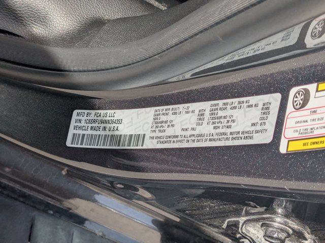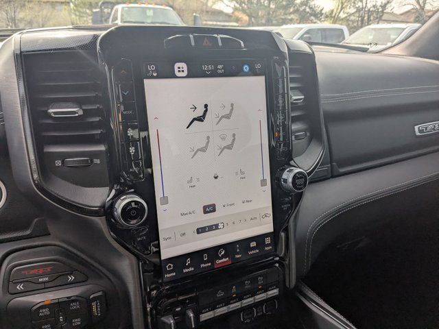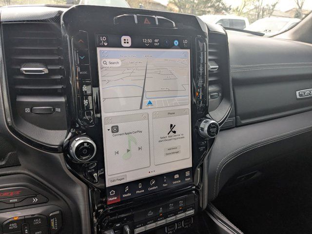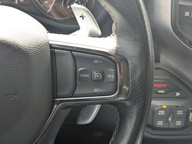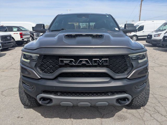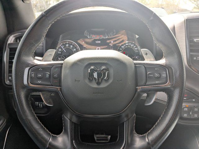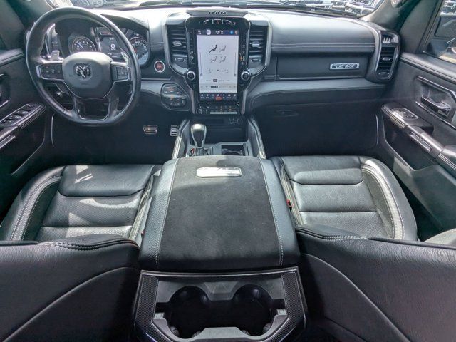 TRANSMISSION: 8-SPEED AUTOMATIC (8HP95) (STD),DIAMOND BLACK CRYSTAL PEARLCOAT,BLIND SPOT & CROSS PATH DETECTION,SURROUND VIEW CAMERA SYSTEM,PARKSENSE FRONT/REAR PARK ASSIST W/STOP,BED UTILITY GROUP -inc: MOPAR Spray In Bedliner MOPAR 4 Adjustable Cargo Tie-Down Hooks MOPAR Deployable Bed Step,MOPAR OFF-ROAD STYLE RUNNING BOARDS,BLACK LEATHER TRIMMED BUCKET SEATS -inc: Center Console Parts Module #2 Seat Foam Cushion Heated Front Seats Power 4-Way Passenger Lumbar Adjust,LOWER TWO TONE PAINT,TRX LEVEL 1 EQUIPMENT GROUP -inc: Full Length Premium Upgraded Floor Console Rear Window Defroster Rain Sensitive Windshield Wipers Power Adjustable Pedals Driver/Passenger Wrapped Assist Handles Pick-Up Box Lighting Body Color Door Handles MOPAR Bright Pedal Kit IP LED Ambient Light Pipe Premium Wrapped IP Bezel Rear Underseat Compartment Storage Universal Garage Door Opener Luxury Front Door Trim Panel Heated Steering Wheel Front Door Accent Lighting Power 8-Way Driver & Passenger Seats Rear Door Accent Lighting Sun Visors w/Illuminated Vanity Mirrors,ENGINE: 6.2L SUPERCHARGED HEMI V8 SRT (STD),REMOTE START SYSTEM,WHEELS: 18 X 9 BLACK PAINT/POLISH ALUMINUM (STD),QUICK ORDER PACKAGE 29Y -inc: Engine: 6.2L Supercharged HEMI V8 SRT Transmission: 8-Speed Automatic (8HP95),FRONT LICENSE PLATE BRACKET,GRANITE CRYSTAL METALLIC CLEARCOAT,TRAILER TOW GROUP -inc: Trailer Light Check Trailer Brake Control Trailer Tire Pressure Monitoring System,BLACK POWER-FOLD TRAILER TOW MIRRORS -inc: Mirror-Mounted Aux Reverse Lamps Exterior Mirrors w/Memory Mirror Clearance/Running Lights Trailer Tow Mirrors,Supercharged,Four Wheel Drive,Locking/Limited Slip Differential,Tow Hitch,Active Suspension,Power Steering,ABS,4-Wheel Disc Brakes,Brake Assist,Aluminum Wheels,Tires - Front All-Terrain,Tires - Rear All-Terrain,Conventional Spare Tire,Tow Hooks,Tow Hooks,Power Mirror(s),Integrated Turn Signal Mirrors,Power Folding Mirrors,Heated Mirrors,Privacy Glass,Intermittent Wipers,Variable Speed Intermittent Wipers,Power Door Locks,Fog Lamps,Automatic Highbeams,Daytime Running Lights,Automatic Headlights,LED Headlights,AM/FM Stereo,Navigation System,Satellite Radio,Bluetooth Connection,HD Radio,Requires Subscription,Premium Sound System,MP3 Capability,Steering Wheel Audio Controls,Auxiliary Audio Input,Premium Sound System,Bluetooth Connection,Power Driver Seat,Adjustable Steering Wheel,Trip Computer,Power Windows,WiFi Hotspot,Driver Adjustable Lumbar,Pass-Through Rear Seat,Rear Bench Seat,Leather Steering Wheel,Keyless Start,Keyless Entry,Power Door Locks,Cruise Control,Climate Control,Multi-Zone A/C,A/C,Bucket Seats,Auto-Dimming Rearview Mirror,Passenger Vanity Mirror,Passenger Illuminated Visor Mirror,Floor Mats,Remote Engine Start,Keyless Start,Remote Engine Start,Smart Device Integration,Requires Subscription,Navigation System,Smart Device Integration,Power Windows,Power Door Locks,Trip Computer,Power Driver Seat,Immobilizer,Security System,Traction Control,Stability Control,Traction Control,Front Side Air Bag,Front Collision Mitigation,Tire Pressure Monitor,Driver Air Bag,Passenger Air Bag,Front Head Air Bag,Rear Head Air Bag,Passenger Air Bag Sensor,Child Safety Locks,Back-Up Camera