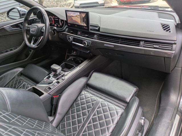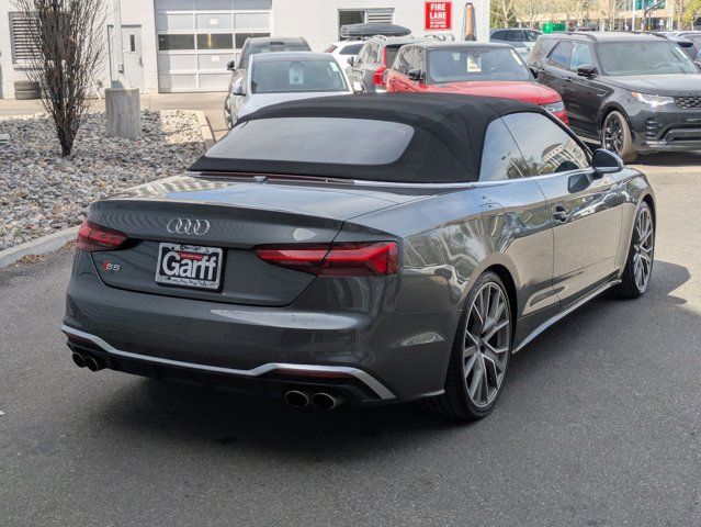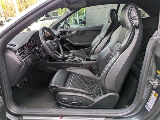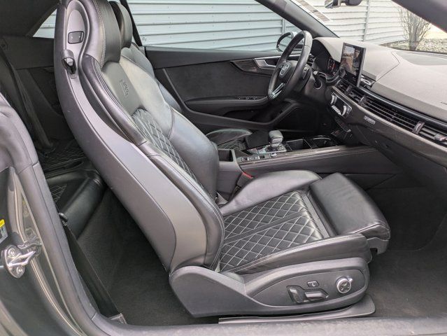 Clean CARFAX. Daytona Gray Pearl 2021 Audi S5 3.0T Premium Plus quattro quattro 8-Speed Automatic with Tiptronic 3.0L TFSI 10 Speakers, 4-Wheel Disc Brakes, ABS brakes, Air Conditioning, Alarm System w/Motion Sensor, Alloy wheels, AM/FM radio, Audi Active Lane Assist, Audi Adaptive Cruise Control w/Traffic Jam Assist, Audi Advanced Key, Audi Connect PRIME & PLUS, Audi Guard All-Weather Front & Rear Mats, Audi Phone Box, Audi S Beam - Front Doors Only, Audi Side Assist w/pre sense Rear, Audi smartphone interface with Apple CarPlay, Audi Virtual Cockpit Plus, Auto High-beam Headlights, Auto-Dimming Exterior Mirrors, Auto-dimming Rear-View mirror, Automatic temperature control, Bang & Olufsen Sound System w/3D Sound, Brake assist, Bumpers: body-color, Carbon Atlas Inlays, Compass, Convenience Package, Convertible roof lining, Convertible roof wind blocker, Delay-off headlights, Driver door bin, Driver Seat Memory, Driver vanity mirror, Dual front impact airbags, Dual front side impact airbags, Electronic Stability Control, Emergency communication system: Audi connect CARE, Exterior Parking Camera Rear, Fine Nappa Leather Seating Surfaces, Four wheel independent suspension, Front anti-roll bar, Front Bucket Seats, Front Center Armrest, Front dual zone A/C, Front fog lights, Front reading lights, Garage door transmitter: HomeLink, Glass rear window, Hands-On Detection Steering Wheel, Heated door mirrors, Heated Front S Sport Seats, Heated front seats, Heated Steering Wheel, Illuminated entry, Integrated roll-over protection, Knee airbag, Leather Shift Knob, Leather steering wheel, Leatherette Covered Center Console & Door Armrests, Low tire pressure warning, MMI Navigation Plus, Navigation Package, Occupant sensing airbag, Outside temperature display, Panic alarm, Parking System Plus, Passenger door bin, Passenger vanity mirror, Power convertible roof, Power door mirrors, Power driver seat, Power Folding Exterior Mirrors, Power passenger seat, Power steering, Power windows, Premium Plus Package, Radio data system, Radio: Audi Sound System, Rain sensing wipers, Rear air conditioning, Rear anti-roll bar, Rear reading lights, Rear window defroster, Red Brake Calipers, Remote keyless entry, S Sport Package, SiriusXM All Access Service, Speed control, Speed-sensing steering, Speed-Sensitive Wipers, Split folding rear seat, Sport Adaptive Damping Suspension, Sport Rear Differential, Steering wheel mounted audio controls, Tachometer, Telescoping steering wheel, Tilt steering wheel, Top View Camera System, Traction control, Trip computer, Turn signal indicator mirrors, Variably intermittent wipers, Wheels: 18 5-Double-Spoke Design, Wheels: 20 5-V-Spoke-Star Design.Recent Arrival! 20/26 City/Highway MPG