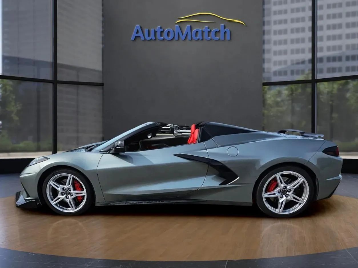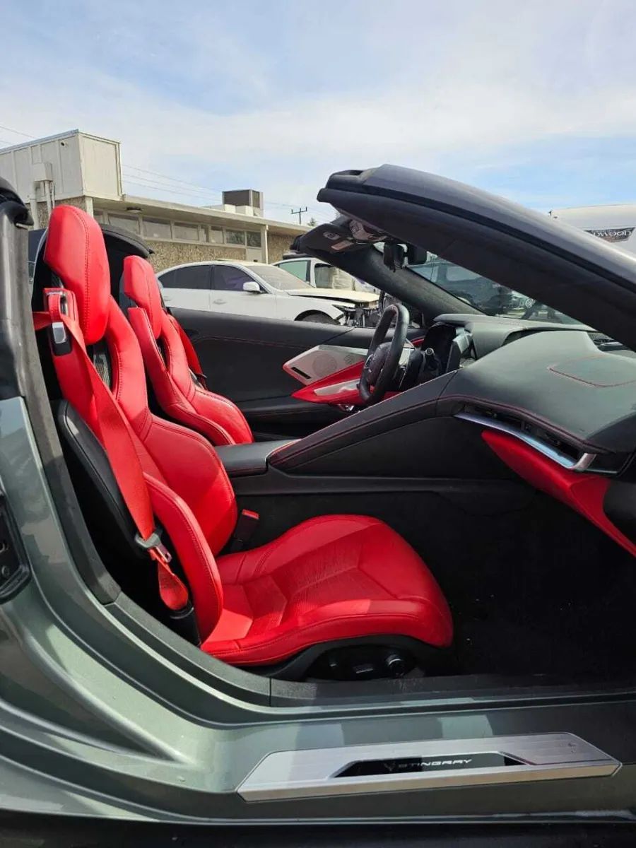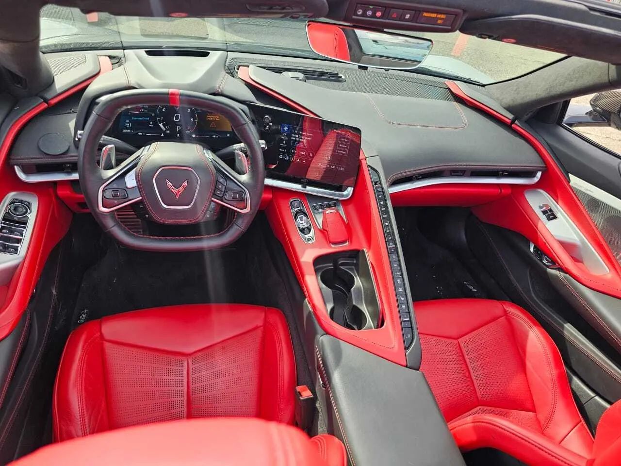 Leather Upholstery, Head-up display, Proximity Entry System Multi-function remote, Ventilated Driver seat, Ventilated Passenger seat, Heated steering wheel, Leather Steering wheel trim, Automatic Climate Control Front air conditioning, Driver Seat Memorized settings, Passenger Seat Memorized settings, Steering Wheel Memorized settings, Side Mirrors Memorized settings, Dual Front air conditioning zones, 8 Driver seat power adjustments, Power Tilt And Telescopic Steering wheel, Paddle Shifter Steering wheel mounted controls, Front Wireless charging station, Faux Suede Interior accents, Faux Suede Headliner trim, Push-button start, Heated Driver seat, Remote engine start, Heated Passenger seat, Homelink - Garage Door Opener Universal remote transmitter, Camera-based Rearview mirror, Auto-dimming Rearview mirror, Sport Bucket Front seat, 12 In. Instrument cluster screen size, 8 Passenger seat power adjustments, Variable/speed-proportional Power steering, Cruise control, Leather Dash trim, Leather Center console trim, Leather Door trim, Ambient lighting, Carpet Floor mat material, 2 Driver Memorized settings, Air filtration, Customizable instrument cluster, USB Front Power outlet(s), USB-C Front Power outlet(s), 12V Cargo Area Power outlet(s), 12V Front Power outlet(s), Rear Bulkhead Storage, Front Floor mats, Multi-function display, Oil Pressure Gauge, Front Console With Armrest And Storage Center console, Compass, Vehicle And Key Memory Multi-function remote, External temperature display, Perforated Upholstery accents, MPG Fuel economy display, Range Fuel economy display, Cargo Net Storage, Front Reading lights, Tachometer Gauge, Lumbar Driver seat power adjustments, Lumbar Passenger seat power adjustments, Reclining Passenger seat power adjustments, Reclining Driver seat power adjustments, Height Driver seat power adjustments, Height Passenger seat power adjustments, Front Cupholders, Maintenance Due Warnings and reminders, Dual Illuminating Vanity mirrors, Cargo area light, 2 One-touch windows, Panic Alarm Multi-function remote, Audio Steering wheel mounted controls, Cargo Tie-down Anchors And Hooks Storage, Carpet Floor material, Cruise Control Steering wheel mounted controls, Phone Steering wheel mounted controls, Multi-function Steering wheel mounted controls, Voice Control Steering wheel mounted controls, Covered Cupholders, Trunk Release Multi-function remote, Power Retractable Hard Top Convertible roof, Painted Aluminum Alloy Wheels, LED Headlights, LED Daytime running lights, Quad Tip Exhaust, LED Taillights, Power Folding Side mirror adjustments, Soft Close Rear trunk/liftgate, Driver Side Auto-dimming Side mirrors, Safety Reverse Power windows, Run flat tires, Power Side mirror adjustments, Heated Side mirrors, Approach Lamps Exterior entry lights, Rear Window defogger, Variable Intermittent Front wipers, Tire Pressure Monitoring System, Integrated Turn Signals Side mirrors, Reverse Gear Tilt Side mirror adjustments, Solar-tinted glass, Auto On/off Headlights, Remote Operation Convertible roof, Auto Delay Off Headlights, Wiper Activated Headlights, Black Window trim, Black Door handle color, Black Grille color, Stainless Steel Exhaust tip color, Hotspot Wi-Fi, Touch Screen Display Navigation system, Voice Operated Navigation system, Bose Premium brand, Wireless Apple CarPlay Smartphone integration, Wireless Android Auto Smartphone integration, MyChevrolet With Connected Access Smart device app compatibility, 12 Total speakers, Bluetooth Wireless data link, Voice Operated Hands-free phone call integration, Voice Operated Radio, Bluetooth Auxiliary audio input, Surround sound, HD Radio Radio, 2 Subwoofer, 8 In. Infotainment screen size, Touch Screen Display Radio, Real Time Traffic Navigation data, App Marketplace Integration Connected in-car apps, With Read Function Electronic messaging assistance, Voice Operated Electronic messaging assistance, SiriusXM Satellite radio, Digital sound processing, USB Auxiliary audio input, IPod/iPhone Auxiliary audio input, OnStar Satellite communications, Voice Guided Directions Satellite communications, Lock Operation Smart device app function, Chevrolet Infotainment System Infotainment, Horn/light Operation Smart device app function, Maintenance Status Smart device app function, Jack Auxiliary audio input, Roadside Assistance Driver assistance app, AM/FM Radio, Radio data system, Driving Performance Connected in-car apps, Speed sensitive volume control, Google POIs Connected in-car apps, Google Search Connected in-car apps, Send Destination To Vehicle Navigation data, Sensor/alert Blind spot safety, Rear Cross traffic alert, Front Camera system, Rearview Camera system, Front Side airbags, Rear Parking sensors, Front Recording Dash camera, 4-wheel ABS, Interior Motion Sensor Anti-theft system, Anti-tow Sensor Anti-theft system, Anti-lockout Power door locks, Auto-locking Power door locks, Programmable safety key, Painted brake calipers, Auto Off Electronic parking brake, Ventilated Disc Rear brake, Alarm Anti-theft system, Braking assist, Hill holder control, Ventilated Disc Front brake, Dual Front airbags, Vehicle Immobilizer Anti-theft system, Power brakes, Electronic brakeforce distribution, Stability control, Traction control, In Dash Rearview monitor, Occupant Sensing Passenger Airbag deactivation, Front Seatbelt pretensioners, Front Emergency locking retractors, Front Seatbelt warning sensor, Mid-mounted engine, Rear Limited slip differential, Cylinder deactivation, Sport Tuned suspension, Auxiliary oil cooler, Drive mode selector, Independent Front suspension classification, Independent Rear suspension classification, Short And Long Arm Rear suspension, Front struts, Rear struts, Short And Long Arm Front suspension, Monotube Front shock, Monotube Rear shock, Front stabilizer bar, Rear stabilizer bar, Battery saver