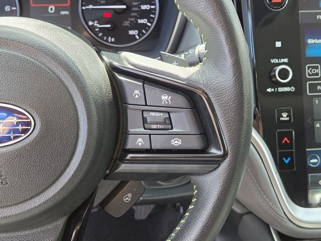 Exterior@Active grille shutters~Exterior@Bumper detail (front underguard)~Exterior@Daytime running lights (LED)~Exterior@Door handle color (body-color)~Exterior@Exhaust tip color (metallic)~Exterior@Exterior entry lights (approach lamps)~Exterior@Fender lip moldings (black)~Exterior@Front bumper color (body-color)~Exterior@Front fog lights (LED)~Exterior@Front wipers (variable intermittent)~Exterior@Grille color (black)~Exterior@Headlight bezel color (black)~Exterior@Headlights (LED)~Exterior@Headlights (auto delay off)~Exterior@Headlights (auto high beam dimmer)~Exterior@Headlights (auto on/off)~Exterior@Headlights (cornering)~Exterior@Headlights (self-leveling)~Exterior@Headlights (wiper activated)~Exterior@Heated windshield wiper rests~Exterior@Laminated glass (acoustic windshield)~Exterior@Liftgate window (fixed)~Exterior@Mirror color (black)~Exterior@Moonroof / Sunroof (anti-trapping)~Exterior@Moonroof / Sunroof (one-touch open/close)~Exterior@Moonroof / Sunroof (power glass)~Exterior@Moonroof / Sunroof (sliding sunshade)~Exterior@Moonroof / Sunroof (tilt/slide)~Exterior@Power windows (safety reverse)~Exterior@Rear bumper color (black)~Exterior@Rear privacy glass~Exterior@Rear spoiler (roofline)~Exterior@Rear spoiler color (black)~Exterior@Rear trunk/liftgate (liftgate)~Exterior@Rear trunk/liftgate (power operated)~Exterior@Rear trunk/liftgate (sensor-activated)~Exterior@Rear wiper (auto-on in reverse)~Exterior@Rear wiper (intermittent)~Exterior@Rear wiper (with washer)~Exterior@Rocker panel color (black)~Exterior@Roof rack crossbars (black)~Exterior@Roof rails (black)~Exterior@Side mirror adjustments (manual folding)~Exterior@Side mirror adjustments (power)~Exterior@Side mirrors (heated)~Exterior@Side mirrors (integrated turn signals)~Exterior@Taillights (LED)~Exterior@Tinted glass~Exterior@Window defogger (rear)~Exterior@Window trim (chrome)~Interior@Adaptive cruise control~Interior@Adaptive stop and go cruise control (semi-automatic)~Interior@Air filtration~Interior@Airbag deactivation (occupant sensing passenger)~Interior@Antenna type (diversity)~Interior@Antenna type (mast)~Interior@Armrests (rear center with cupholders)~Interior@Armrests (rear folding)~Interior@Assist handle (front)~Interior@Assist handle (rear)~Interior@Autonomous lane guidance (lane centering)~Interior@Cargo area floor mat (rubber/vinyl)~Interior@Cargo area light~Interior@Cargo cover (retractable)~Interior@Center console (front console with armrest and storage)~Interior@Center console (illuminated)~Interior@Center console trim (leatherette)~Interior@Connected in-car apps (Google POIs)~Interior@Connected in-car apps (Google search)~Interior@Connected in-car apps (SiriusXM Travel Link)~Interior@Connected in-car apps (Yelp)~Interior@Courtesy lights (door)~Interior@Cupholders (front)~Interior@Cupholders (rear)~Interior@Dash trim (leatherette)~Interior@Door trim (leatherette)~Interior@Door trim (metallic)~Interior@Driver assistance app (roadside assistance)~Interior@Driver seat (heated)~Interior@Driver seat power adjustments (10)~Interior@Driver seat power adjustments (height)~Interior@Driver seat power adjustments (lumbar)~Interior@Driver seat power adjustments (reclining)~Interior@Electronic messaging assistance (voice operated)~Interior@Electronic messaging assistance (with read function)~Interior@Floor mat material (carpet)~Interior@Floor material (carpet)~Interior@Front air conditioning (automatic climate control)~Interior@Front air conditioning zones (dual)~Interior@Front airbags (dual)~Interior@Front headrests (2)~Interior@Front headrests (adjustable)~Interior@Front seat type (bucket)~Interior@Hands-free phone call integration (voice operated)~Interior@Heated steering wheel~Interior@Infotainment (STARLINK)~Interior@Infotainment screen size (11.6 in.)~Interior@Interior accents (chrome)~Interior@Interior accents (metallic-tone)~Interior@Internet radio app (AHA)~Interior@Internet radio app (Pandora)~Interior@Internet radio app (Stitcher)~Interior@Internet radio app (iHeartRadio)~Interior@Knee airbags (driver)~Interior@Memorized settings (liftgate)~Interior@Multi-function remote (panic alarm)~Interior@Multi-function remote (proximity entry system)~Interior@Multi-function remote (trunk release)~Interior@One-touch windows (4)~Interior@Overhead console (front)~Interior@Passenger seat (heated)~Interior@Passenger seat manual adjustments (4)~Interior@Passenger seat manual adjustments (reclining)~Interior@Power outlet(s) (12V cargo area)~Interior@Power outlet(s) (12V front)~Interior@Power outlet(s) (12V rear)~Interior@Power outlet(s) (USB front)~Interior@Power outlet(s) (USB rear)~Interior@Power outlet(s) (USB-C front)~Interior@Power outlet(s) (USB-C rear)~Interior@Power steering (variable/speed-proportional)~Interior@Power windows (lockout button)~Interior@Premium brand (harman/kardon)~Interior@Push-button start~Interior@Radio (AM/FM)~Interior@Radio (HD radio)~Interior@Radio (touch screen display)~Interior@Radio (voice operated)~Interior@Radio data system~Interior@Reading lights (front)~Interior@Reading lights (rear)~Interior@Rear headrests (3)~Interior@Rear headrests (adjustable)~Interior@Rear seat folding (one-touch fold flat)~Interior@Rear seat folding (split)~Interior@Rear seat manual adjustments (reclining)~Interior@Rear seat type (60-40 split bench)~Interior@Rear vents (second row)~Interior@Rearview mirror (auto-dimming)~Interior@Seat cushion airbags (dual front)~Interior@Shift knob trim (leather)~Interior@Side airbags (front)~Interior@Side curtain airbags (front)~Interior@Side curtain airbags (rear)~Interior@Smart device app compatibility (MySubaru)~Interior@Smart device app function (engine start)~Interior@Smart device app function (horn/light operation)~Interior@Smart device app function (lock operation)~Interior@Smart device app function (maintenance scheduling)~Interior@Smart device app function (maintenance status)~Interior@Smart device app function (security event/collision alert)~Interior@Smart device 