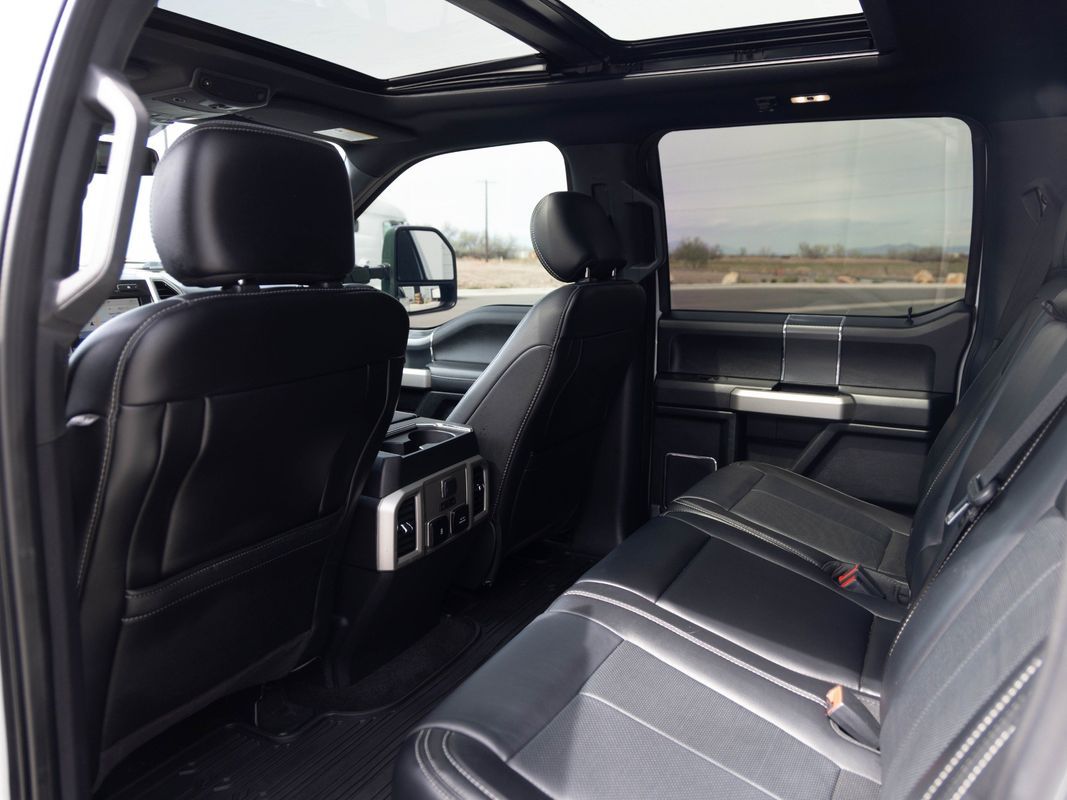 Sunroof/Moonroof,Remote Start,Navigation System,Leather Seats,Heated Seats,Bluetooth,Backup Camera,Driver seat: heated ventilated,Driver seat power adjustments: height lumbar, reclining, 10,Front headrests: adjustable 3,Front seat type: 40-20-40 split bench,Passenger seat: heated ventilated,Passenger seat power adjustments: height lumbar, reclining, 10,Rear headrests: adjustable 3,Rear seat folding: folds up split,Rear seat type: 60-40 split bench,Upholstery: leather-trimmed,ABS: 4-wheel,Braking assist: ,Cornering brake control: ,Electronic brakeforce distribution: ,Electronic parking brake: auto off,Emergency braking preparation: ,Front brake diameter: 13.8,Front brake type: ventilated disc,Front brake width: 1.34,Power brakes: ,Rear brake diameter: 13.7,Rear brake type: ventilated disc,Rear brake width: .98,Alternator: 200 amps,Auto start/stop: ,Battery: maintenance-free,Battery rating: 800 CCA,Battery saver: ,Daytime running lights: ,Exterior entry lights: approach lamps puddle lamps,Front fog lights: ,Headlights: auto delay off auto high beam dimmer, auto on/off, halogen, wiper activated,Automatic emergency braking: front,Automatic hazard warning lights: ,Blind spot safety: sensor/alert trailer coverage,Body side reinforcements: side impact door beams,Camera system: rearview,Child safety door locks: ,Child seat anchors: LATCH system,Cross traffic alert: rear,Crumple zones: front,Energy absorbing steering column: ,Impact sensor: alert system door unlock, post-collision safety system,Lane deviation sensors: ,Lane keeping assist: ,Pre-collision warning system: audible warning visual warning,Programmable safety key: ,Rearview monitor: in dash,Airbag deactivation: occupant sensing passenger,Front airbags: dual,Side airbags: front,Side curtain airbags: front rear,Side-curtain airbag rollover sensor: ,Side mirror adjustments: power power folding,Side mirrors: driver side auto-dimming heated, integrated turn signals,Front wipers: variable intermittent,Pickup sliding rear window: power horizontal,Power windows: safety reverse,Rear privacy glass: ,Solar-tinted glass: rear,Window defogger: rear,2-stage unlocking doors: ,Anti-theft system: alarm anti-tow sensor, engine immobilizer, interior motion sensor, perimeter alarm,Power door locks: anti-lockout auto-locking,Steering ratio: 17,Emergency locking retractors: front,Front seatbelts: 3-point,Rear seatbelts: 3-point,Seatbelt force limiters: front,Seatbelt pretensioners: front,Seatbelt warning sensor: front,4WD selector: electronic hi-lo,4WD type: part time w/ on demand setting,Axle ratio: 3.55,Drive mode selector: ,Front shock type: gas,Front spring type: coil,Front stabilizer bar: diameter 36 mm,Front struts: ,Front suspension classification: independent,Front suspension type: double wishbone,Rear shock type: gas,Rear spring type: leaf,Rear suspension classification: solid live axle,Rear suspension type: multi-leaf,Electronic messaging assistance: voice operated with read function,Phone: voice operated,Smart device app function: engine start horn/light operation, lock operation, maintenance status, vehicle location,Wifi: hotspot,Wireless data link: Bluetooth,Antenna type: diversity mast,Auxiliary audio input: Bluetooth USB, iPod/iPhone,Radio: AM/FM touch screen display, voice operated,Radio data system: ,Satellite radio: SiriusXM,Speed sensitive volume control: ,Total speakers: 7,Spare tire mount location: underbody,Spare tire size: full-size,Spare wheel type: steel,Tire Pressure Monitoring System: ,Tire type: all terrain,Wheel locks: spare only,Wheels: aluminum with painted accents,Clock: ,Compass: ,Customizable instrument cluster: ,Digital odometer: ,Engine hour meter: ,External temperature display: ,Fuel economy display: MPG range,Gauge: oil pressure tachometer, transmission temperature,Instrument cluster screen size: 8 in.,Multi-function display: ,Trip odometer: ,Warnings and reminders: low fuel level low oil level, maintenance due, tire fill alert,Air filtration: ,Front air conditioning: automatic climate control,Front air conditioning zones: dual,Armrests: front center rear center folding with storage, rear center with cupholders,Dash trim: alloy,Door sill trim: scuff plate,Door trim: alloy,Floor mat material: carpet,Floor material: carpet,Floor mats: front rear,Steering wheel trim: leather,Active grille shutters: ,Door handle color: body-color,Fender lip moldings: body-color,Front bumper color: chrome,Grille color: black surround chrome,Mirror color: body-color,Pickup bed light: tailgate illumination,Pickup bed type: styleside,Rear bumper color: chrome,Tailgate: power locking removable,Tailgate protection cap: ,Window trim: black,Cargo tie downs: ,Tow hooks: front,Tow/Haul mode: ,Trailer hitch: Class IV,Trailer wiring: 4-pin 7-pin,Adjustable pedals: power,Ambient lighting: color,Assist handle: front rear,Capless fuel filler system: ,Cruise control: ,Cupholders: front rear,Easy entry: power driver seat,Keypad entry: ,Memorized settings: 3 driver adjustable pedals, driver seat, side mirrors,Multi-function remote: panic alarm proximity entry system,One-touch windows: 2,Overhead console: front,Power outlet(s): 12V front 12V rear,Power steering: variable/speed-proportional,Power windows: lockout button,Push-button start: ,Reading lights: front rear,Rearview mirror: auto-dimming,Retained accessory power: ,Steering wheel: tilt and telescopic,Steering wheel mounted controls: audio cruise control, multi-function, phone, voice control,Storage: accessory hook door pockets, front seatback, in seat cushion, sunglasses holder, under rear seats,Vanity mirrors: dual illuminating,Connected in-car apps: Google POIs Google search, app marketplace integration,Infotainment: SYNC,Infotainment screen size: 8 in.,Smartphone integration: Android Auto Apple CarPlay,Hill holder control: ,Roll stability control: ,Stability control: ,Traction control: ,Trailer stability control: