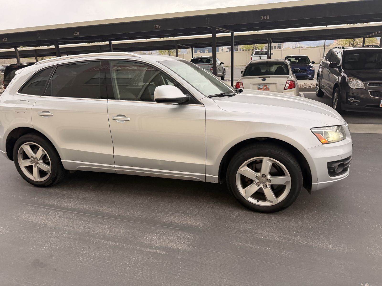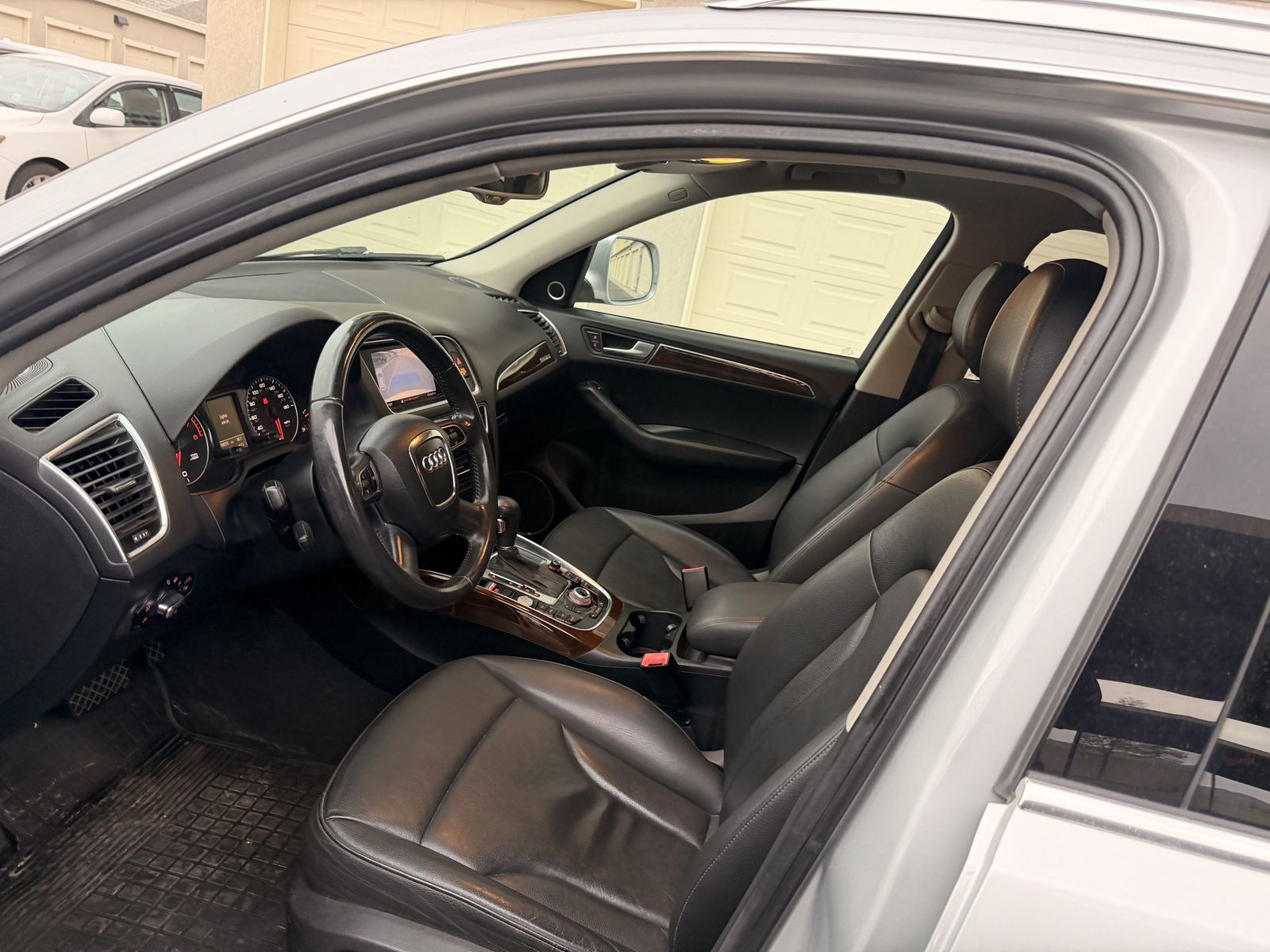 Audi with a replacement engine showing 106,000 miles, featuring a new timing chain and up to date maintenance records. All four tires are new. The transmission functions perfectly and is free of any issues. Only two previous owners. This is an Audi Q5 equipped with a fuel efficient 2.0 liter engine, featuring sensors and a rear view camera.