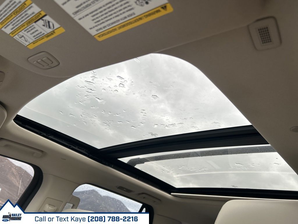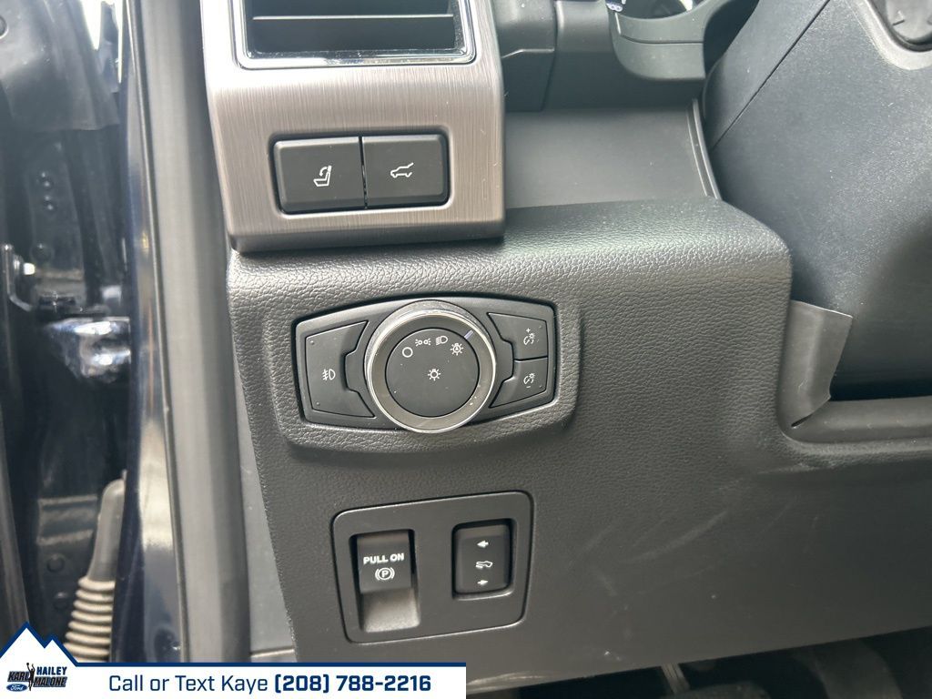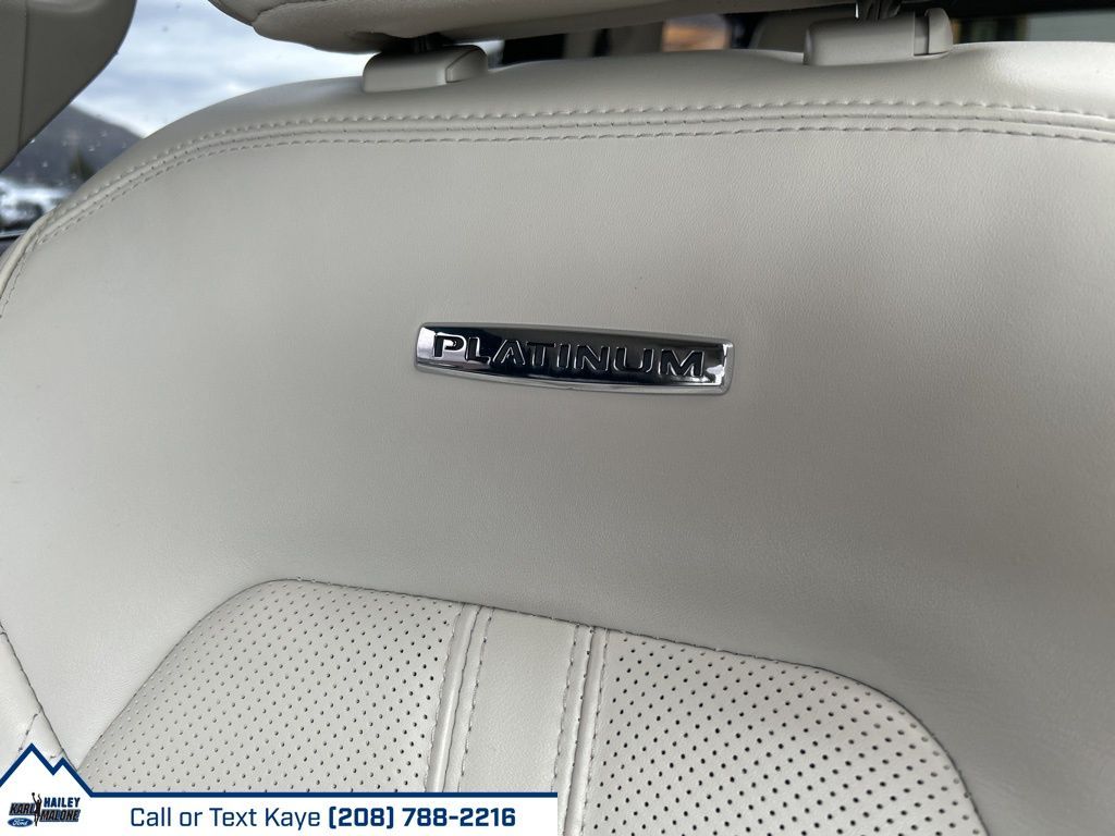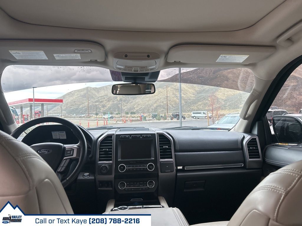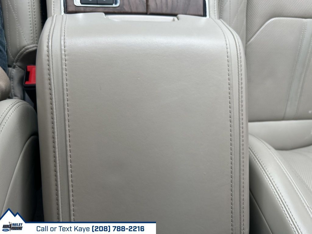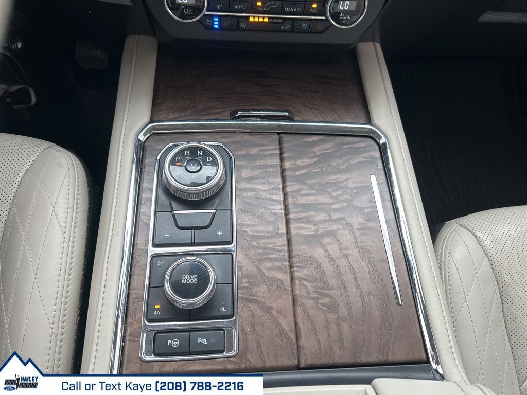 12 Speakers, 1st & 2nd Row Floor Liners w/Carpet Mats, 3rd row seats: split-bench, 4-Wheel Disc Brakes, ABS brakes, Adaptive suspension, Adjustable pedals, Air Conditioning, Alloy wheels, AM/FM radio: SiriusXM, Auto High-beam Headlights, Auto-dimming door mirrors, Auto-dimming Rear-View mirror, Automatic temperature control, Brake assist, Bumpers: body-color, Compass, Delay-off headlights, Driver door bin, Driver vanity mirror, Dual front impact airbags, Dual front side impact airbags, Electronic Stability Control, Emergency communication system: SYNC 3 911 Assist, Equipment Group 600A Standard Package, Exterior Parking Camera Rear, Four wheel independent suspension, Front anti-roll bar, Front Bucket Seats, Front Center Armrest, Front dual zone A/C, Front fog lights, Front reading lights, Fully automatic headlights, Garage door transmitter, Genuine wood console insert, Genuine wood dashboard insert, Genuine wood door panel insert, Heated door mirrors, Heated front seats, Heated rear seats, Heated steering wheel, Heated/Ventilated Leather Front Captain's Chairs, Heavy-Duty Engine Radiator, Heavy-Duty Trailer Tow Package, Illuminated entry, Integrated Trailer Brake Controller, Leather steering wheel, Low tire pressure warning, Memory seat, Navigation System, Occupant sensing airbag, Outside temperature display, Overhead airbag, Overhead console, Panic alarm, Passenger door bin, Passenger vanity mirror, Pedal memory, Power door mirrors, Power driver seat, Power Liftgate, Power moonroof, Power passenger seat, Power steering, Power windows, Pro Trailer Backup Assist, Radio data system, Radio: B&O Sound System by Bang & Olufsen, Rain sensing wipers, Rear air conditioning, Rear anti-roll bar, Rear audio controls, Rear reading lights, Rear window defroster, Rear window wiper, Reclining 3rd row seat, Remote keyless entry, Reversible Cargo Mat, Roof rack, Security system, SiriusXM Satellite Radio, Speed control, Speed-sensing steering, Speed-Sensitive Wipers, Split folding rear seat, Standard Safety Belt, Steering wheel memory, Steering wheel mounted audio controls, SYNC 3 Communications & Entertainment System, Tachometer, Telescoping steering wheel, Tilt steering wheel, Traction control, Trip computer, Turn signal indicator mirrors, Variably intermittent wipers, Ventilated front seats, Voltmeter, Wheels: 22'' 6-Spoke Painted Machined-Face Aluminum.