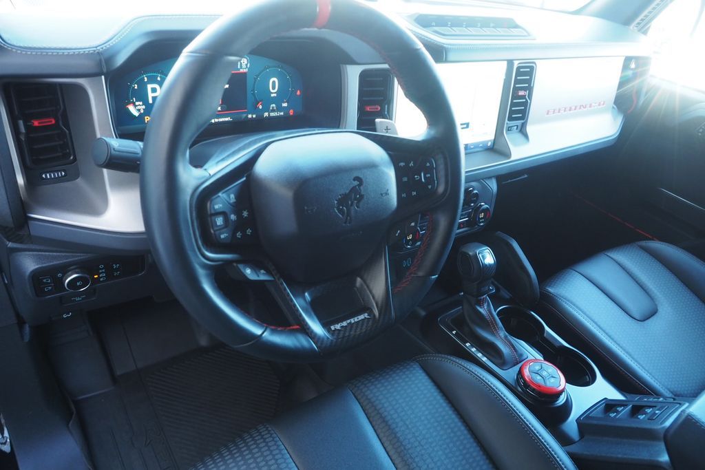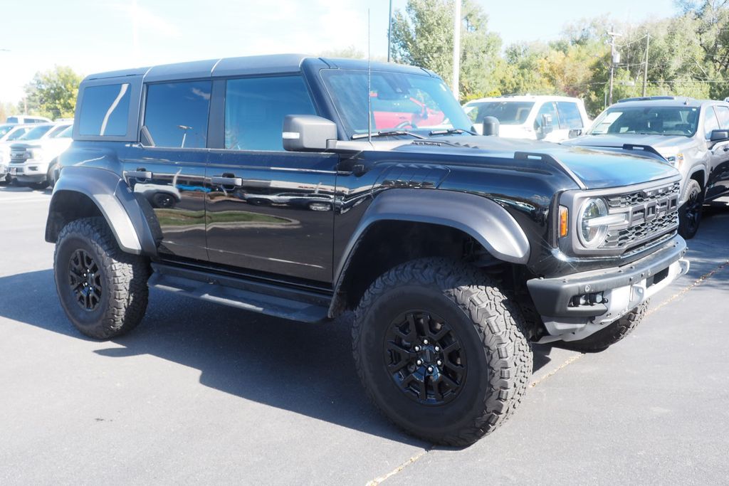 Shadow Black 2023 Ford Bronco Raptor 4WD 10-Speed Automatic 3.0L EcoBoost V6 CLEAN CARFAX, FULLY LOADED 374A EQUIPMENT GROUP, LUXURY PACKAGE, ADAPTIVE CRUISE CONTROL, HEATED STEERING WHEEL, WIRELESS CHARGING PAD, INTERIOR CARBON FIBER PACKAGE, SOUND DEADENING HEADLINER, NAVIGATION SYSTEM, 10 Speakers w/Subwoofer, 2 Smart Charging USB Ports In Dashboard, Adaptive Cruise Control, Connected Built-In Navigation, Convertible HardTop, Equipment Group 374A Lux Package, Evasive Steering Assist, Heated Steering Wheel, Lux Package, Navigation system: Connected Navigation, Radio: B&O Sound System by Bang & Olufsen, Universal Garage Door Opener, Wireless Charging Pad.