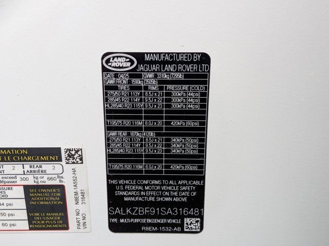 COLD CLIMATE PACK -inc: Heated Washer Jets Heated Windscreen,SATIN BLACK CERAMIC CONTROLS,BLACK ANODISED METAL FINISHER,EMERGENCY PACK,TAILGATE EVENT SUITE W/LEATHER CUSHIONS,CARBON FIBER ENGINE COVER,SV SIGNATURE SUITE W/LEATHER CLUB TABLE SURFACE -inc: 24-Way Heated & Cooled Electric Front Bucket Seats hot stone massage front seats executive class comfort plus rear seats and fixed rear center console Rear Seat Refrigerator Compartment Electrically Deployable Club Table w/Lthr Surface,DEPLOYABLE SIDE STEPS,TOWING PACK -inc: Advanced Tow Assist Tow Hitch Receiver,BLACK CONTRAST ROOF,Turbocharged,All Wheel Drive,Locking/Limited Slip Differential,Air Suspension,Active Suspension,Power Steering,Air Suspension,Air Suspension,ABS,4-Wheel Disc Brakes,Brake Assist,Lithium Ion Traction Battery,Locking/Limited Slip Differential,Aluminum Wheels,Tires - Front Performance,Tires - Rear Performance,Temporary Spare Tire,Sun/Moonroof,Generic Sun/Moonroof,Panoramic Roof,Heated Mirrors,Power Mirror(s),Integrated Turn Signal Mirrors,Power Folding Mirrors,Rear Defrost,Privacy Glass,Intermittent Wipers,Variable Speed Intermittent Wipers,Rain Sensing Wipers,Rear Spoiler,Remote Trunk Release,Power Liftgate,Power Door Locks,Daytime Running Lights,Automatic Headlights,Headlights-Auto-Leveling,LED Headlights,Fog Lamps,Automatic Highbeams,AM/FM Stereo,Navigation System,Premium Sound System,Satellite Radio,MP3 Capability,Bluetooth Connection,Telematics,Auxiliary Audio Input,HD Radio,WiFi Hotspot,Smart Device Integration,Requires Subscription,MP3 Capability,Steering Wheel Audio Controls,Hard Disk Drive Media Storage,Premium Sound System,Bluetooth Connection,Entertainment System,Power Driver Seat,Power Passenger Seat,Bucket Seats,Heated Front Seat(s),Cooled Front Seat(s),Seat-Massage,Mirror Memory,Driver Adjustable Lumbar,Seat Memory,Seat-Massage,Driver Adjustable Lumbar,Passenger Adjustable Lumbar,Pass-Through Rear Seat,Heated Rear Seat(s),Cooled Rear Seat(s),Seat-Massage,Adjustable Steering Wheel,Trip Computer,Power Windows,WiFi Hotspot,Leather Steering Wheel,Heated Steering Wheel,Keyless Entry,Power Door Locks,Keyless Start,Keyless Entry,Power Door Locks,Hands-Free Liftgate,Universal Garage Door Opener,Cruise Control,Adaptive Cruise Control,A/C,Rear A/C,Climate Control,Multi-Zone A/C,A/C,Woodgrain Interior Trim,Leather Seats,Auto-Dimming Rearview Mirror,Driver Vanity Mirror,Passenger Vanity Mirror,Driver Illuminated Vanity Mirror,Passenger Illuminated Visor Mirror,Floor Mats,Cargo Shade,Keyless Start,Smart Device Integration,Requires Subscription,Navigation System,Smart Device Integration,Mirror Memory,Seat Memory,Power Windows,Power Door Locks,Trip Computer,Heads-Up Display,Security System,Immobilizer,Cruise Control Steering Assist,Traction Control,Stability Control,Traction Control,Front Side Air Bag,Telematics,Requires Subscription,Rear Parking Aid,Back-Up Camera,Automatic Parking,Blind Spot Monitor,Cross-Traffic Alert,Lane Departure Warning,Lane Keeping Assist,Lane Departure Warning,Aerial View Display System,Front Collision Mitigation,Driver Monitoring,Tire Pressure Monitor,Driver Air Bag,Passenger Air Bag,Front Head Air Bag,Rear Head Air Bag,Passenger Air Bag Sensor,Child Safety Locks,Back-Up Camera