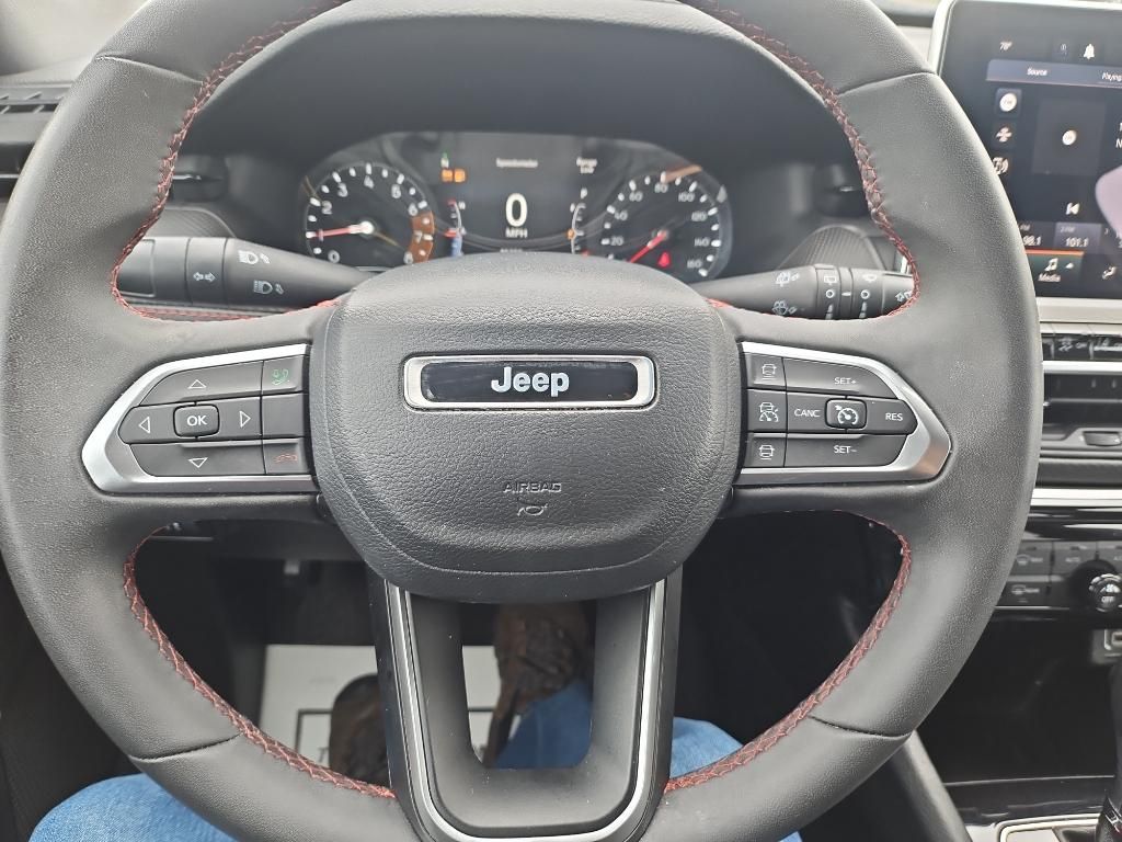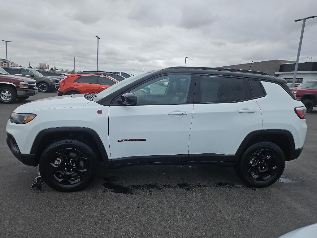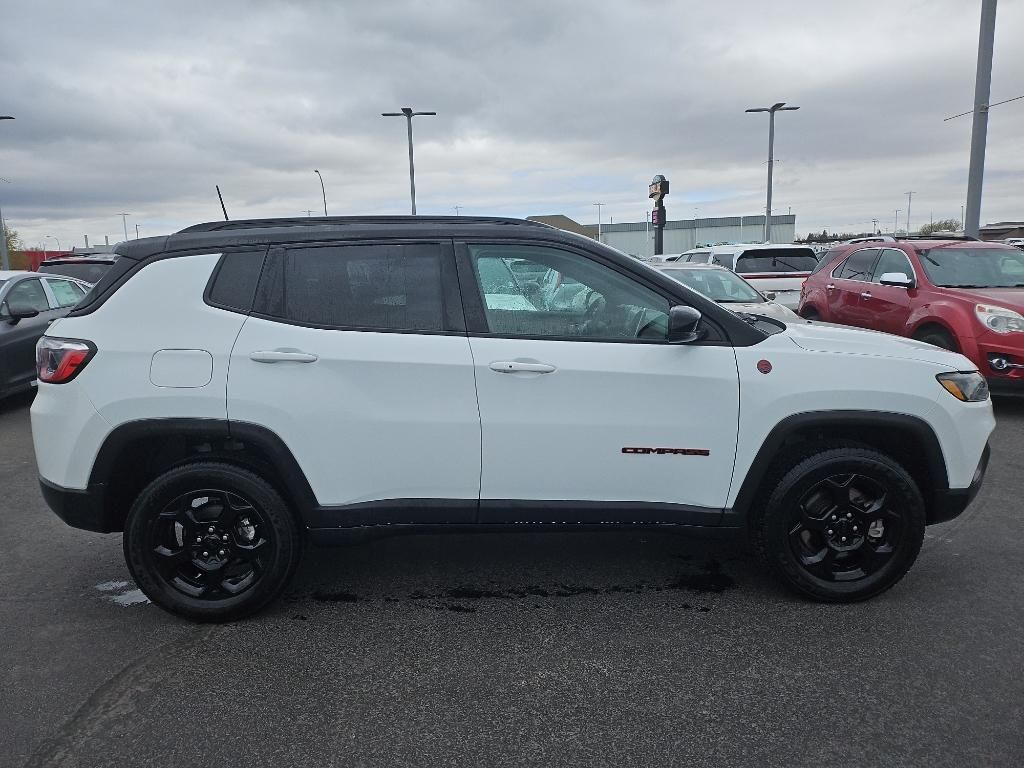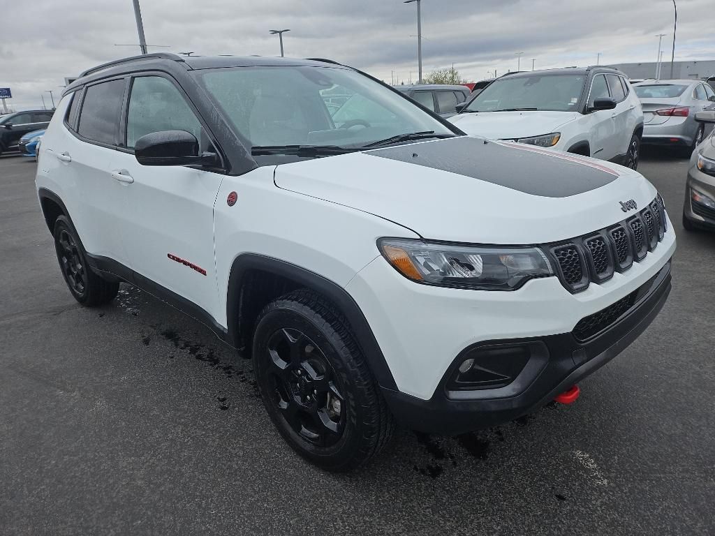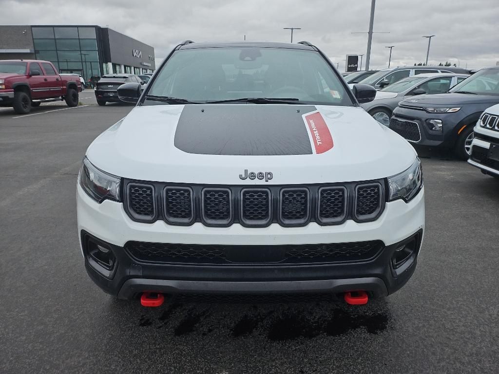 Protect this Jeep Compass from unwanted accidents with a cutting edge backup camera system. This 2023 Jeep Compass offers Apple CarPlay for seamless connectivity. This unit has auto-adjust speed for safe following. This unit offers Android Auto for seamless smartphone integration. This mid-size suv has a clean CARFAX vehicle history report. This unit offers Automatic Climate Control for personalized comfort. It's Forward Collision Warning system alerts the driver to potential front-end collisions, enhancing safety. This vehicle is a certified CARFAX 1-owner. The vehicle features a hands-free Bluetooth phone system. The leather seats in the Jeep Compass are a must for buyers looking for comfort, durability, and style. This Jeep Compass embodies class and sophistication with its refined white exterior. This unit has a 4 Cyl, 2.0L high output engine. It has four wheel drive capabilities. Maintaining a stable interior temperature in this 2023 Jeep Compass is easy with the climate control system.