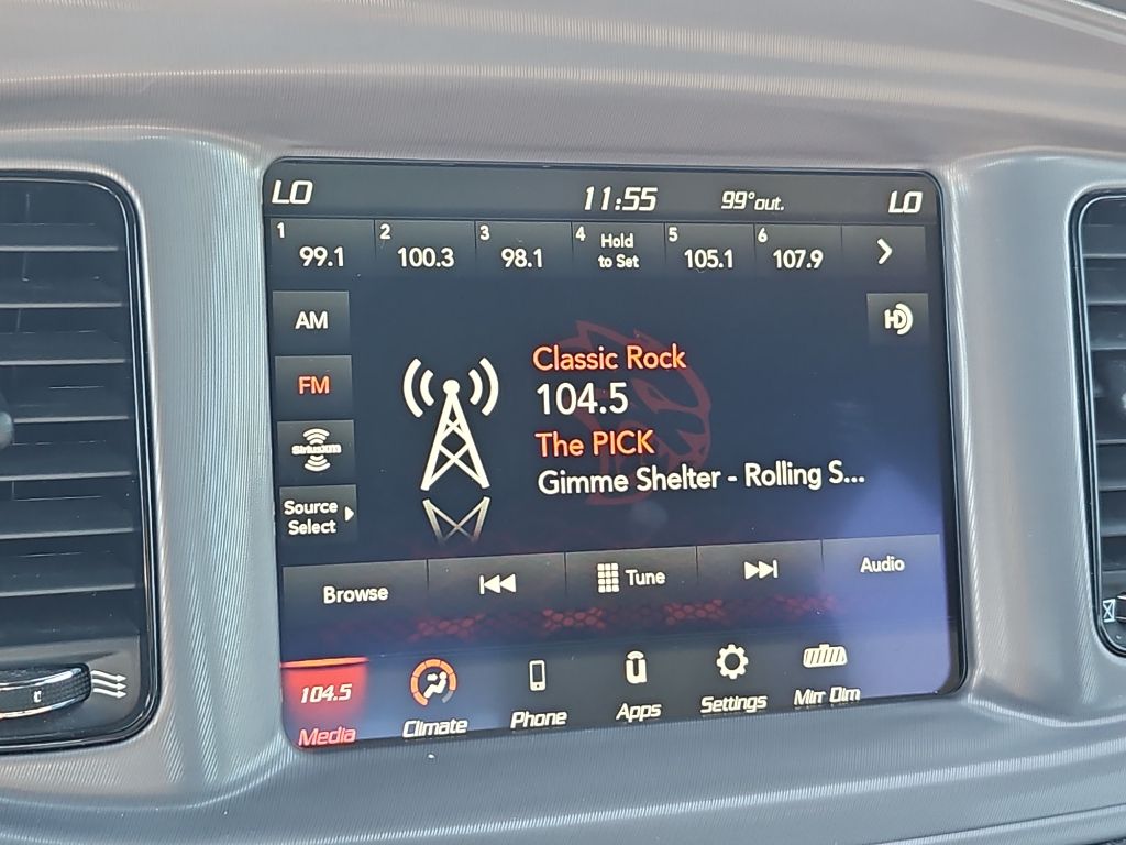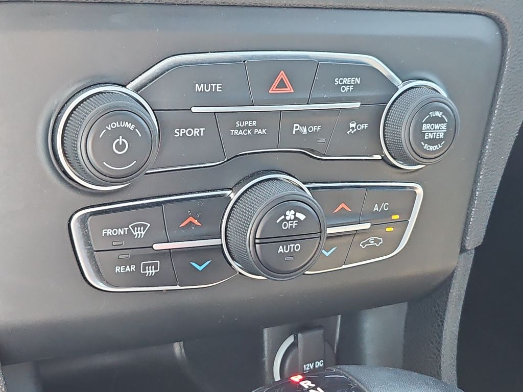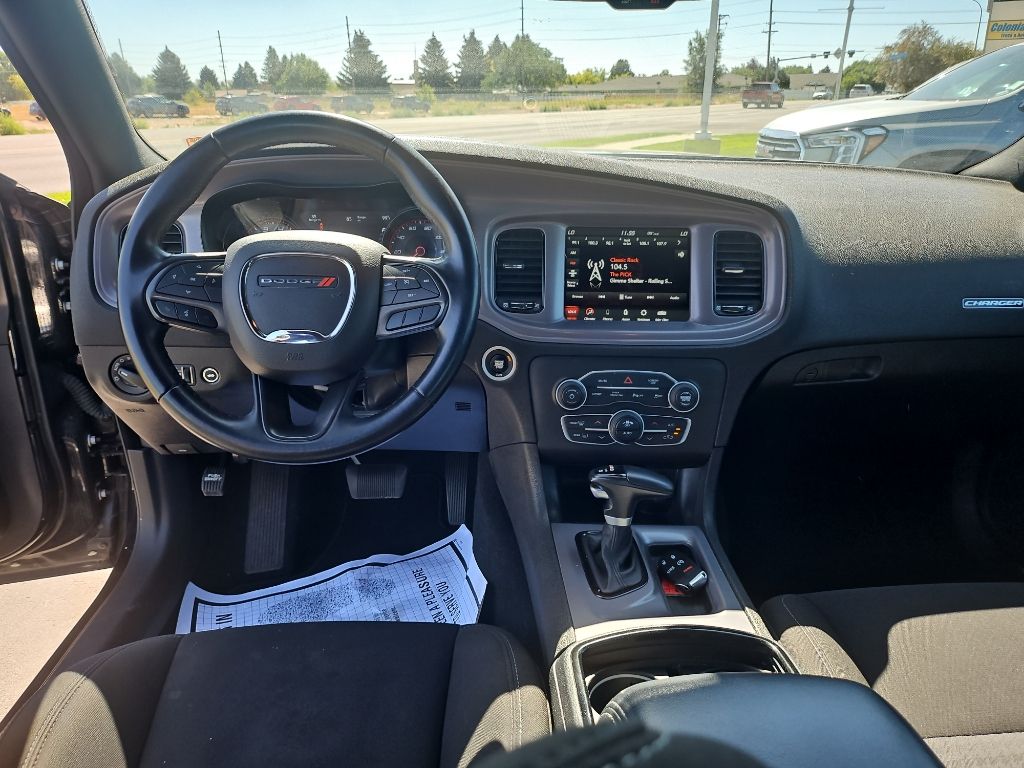Blacktop Package: Gloss Black Instrument Panel Cluster Trim Rings; Black 1-Piece Performance Spoiler; Black Dodge Grille Badge; Satin Black Charger Decklid Badge; Satin Black Dodge Tail Lamp Badge; Wheels: 20" X 8" Black Noise Painted; Rhombi 2 Piece Wheel Center Cap; Black Badge,Quick Order Package 2EH,Apple CarPlay/Android Auto smart device mirroring,Keyfob remote start,Uconnect w/Bluetooth handsfree wireless device connectivity,Cloth front seat upholstery,Driver seat with 8-way directional controls,Front passenger seat with 4-way directional controls,Keyfob trunk control,4G LTE Wi-Fi Hot Spot mobile hotspot internet access,ParkView rear mounted camera,Brake assist system,Cruise control with steering wheel mounted controls,Primary monitor touchscreen,Driver seat power reclining, lumbar support, cushion tilt, fore/aft control and height adjustable control,Pentastar 3.6L V-6 DOHC, variable valve control, regular unleaded, engine with 300HP,Keyless Enter-N-Go with hands-free access and push button start,Smart device remote start,Bluetooth wireless audio streaming,Dual-zone front climate control,Sentry Key immobilizer,SiriusXM Guardian vehicle tracker,Alpine speakers,SiriusXM Guardian vehicle integrated emergency SOS system,Uconnect 4C external memory control,Internet radio capability,5 USB ports,Digital/analog instrumentation display,Electronic stability control system with anti-roll,Hill start assist,Automatic climate control,ParkSense rear parking sensors,LED daytime running lights,LED brake lights,Leather and metal-look steering wheel,Sport ride suspension,Manual rear child safety door locks,Dodge App mobile app access,Illuminated front beverage holders,Heated driver and passenger side door mirrors,Manual tilting steering wheel,Manual telescopic steering wheel,Capless fuel filler,20 x 8-inch front and rear black forged aluminum wheels,P245/45ZR20 performance AS BSW front and rear tires,7 airbags,Driver front impact airbag,Seat mounted side impact driver airbag,Curtain first and second-row overhead airbags,Passenger front impact airbag,Seat mounted side impact front passenger airbag,Airbag occupancy sensor,V6; 3.6 Liter,Automatic; 8-Spd w/AutoStick,RWD,Hill Start Assist Control,Traction Control,Electronic Stability Control,ABS (4-Wheel),Keyless Entry,Push Button Start,Air Conditioning,Power Windows,Power Door Locks,Cruise Control,Power Trunk Release,Power Steering,Tilt & Telescoping Wheel,AM/FM/HD Radio,SiriusXM Satellite,Bluetooth Wireless,Uconnect,ParkSense Park Assist,Backup Camera,Dual Air Bags,Side Air Bags,F&R Head Curtain Air Bags,Power Seat,Daytime Running Lights,Rear Spoiler,Premium Wheels 19"