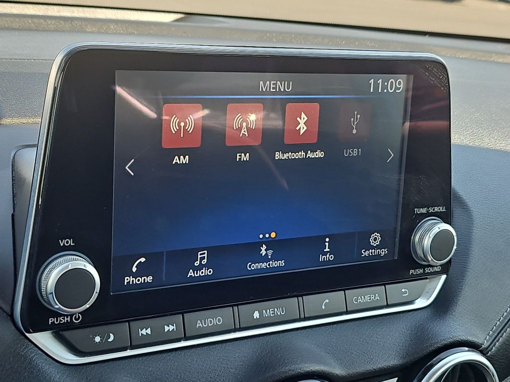 Carpeted Floor Mats with Trunk Mat,NissanConnect featuring Apple CarPlay and Android Auto smart device mirroring,Bluetooth handsfree wireless device connectivity,Intelligent Forward Collision Warning w/Automatic Emergency Braking (AEB),Intelligent Emergency Braking with Pedestrian Detection (P-IEB),RearView Monitor rear mounted camera,Rear Automatic Braking (RAB) collision mitigation,Brake assist system,Lane Departure Warning (LDW),Intelligent Driver Alertness (I-DA),Blind Spot Warning (BSW),High Beam Assist (HBA) auto high-beam headlights,Immobilizer,Electronic stability control system,Hill Start Assist (HSA),Rear parking sensors,Manual rear child safety door locks,Gauge cluster display size: 7.00,10 airbags,Driver front impact airbag,Seat mounted side impact driver airbag,Curtain first and second-row overhead airbags,Passenger front impact airbag,Seat mounted side impact front passenger airbag,Airbag occupancy sensor,Driver and passenger side knee airbag,Rear side impact airbags,Intelligent Cruise Control (ICC),Cruise control with steering wheel mounted controls,Intelligent Key with hands-free access and push button start,Rear Door Alert rear seat check warning,Heated driver and passenger side door mirrors,Auto-locking doors,Valet key,Primary monitor touchscreen,Bluetooth wireless audio streaming,External memory control,2L I-4 gasoline direct injection, DOHC, variable valve control, regular unleaded, engine with 149HP,2-speed CVT,Selectable mode transmission,Body-colored rear bumper insert,Active grille shutters,Metallic paint,16 x 6.5-inch front and rear machined w/painted accents aluminum wheels,P205/60HR16 AS BSW front and rear tires,Leather and metal-look steering wheel,Manual tilting steering wheel,Manual telescopic steering wheel,Premium cloth front seat upholstery,Premium cloth rear seat upholstery,Manual climate control,4-Cyl; 2.0 Liter,Automatic; CVT w/Xtronic,FWD,Blind-Spot Warning System,Hill Start Assist,Traction Control,Vehicle Dynamic Control,ABS (4-Wheel),Alarm System,Keyless Entry,Push Button Start,Air Conditioning,Power Windows,Power Door Locks,Intelligent Cruise Control,Remote Trunk Release,Power Steering,Tilt & Telescoping Wheel,AM/FM Stereo,CD/MP3 (Single Disc),SiriusXM Satellite,Bluetooth Wireless,NissanConnect,Rear Parking Sensors,Backup Camera,Dual Air Bags,F&R Side Air Bags,F&R Head Curtain Air Bags,Knee Air Bags,Lane Departure Warning System,Alloy Wheels,Premium Sound,Blue