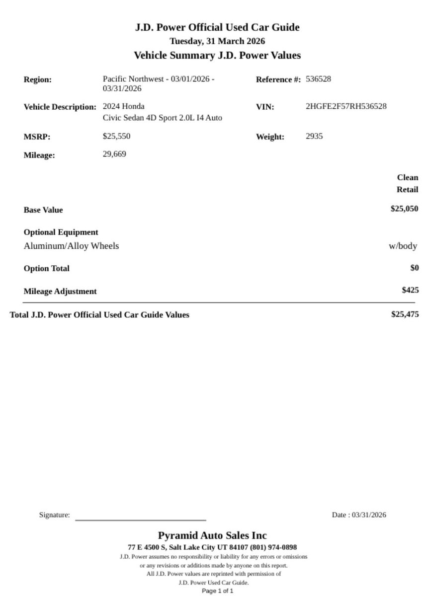 • 🚗 Make/Model: Honda Civic Sport Sedan 4D