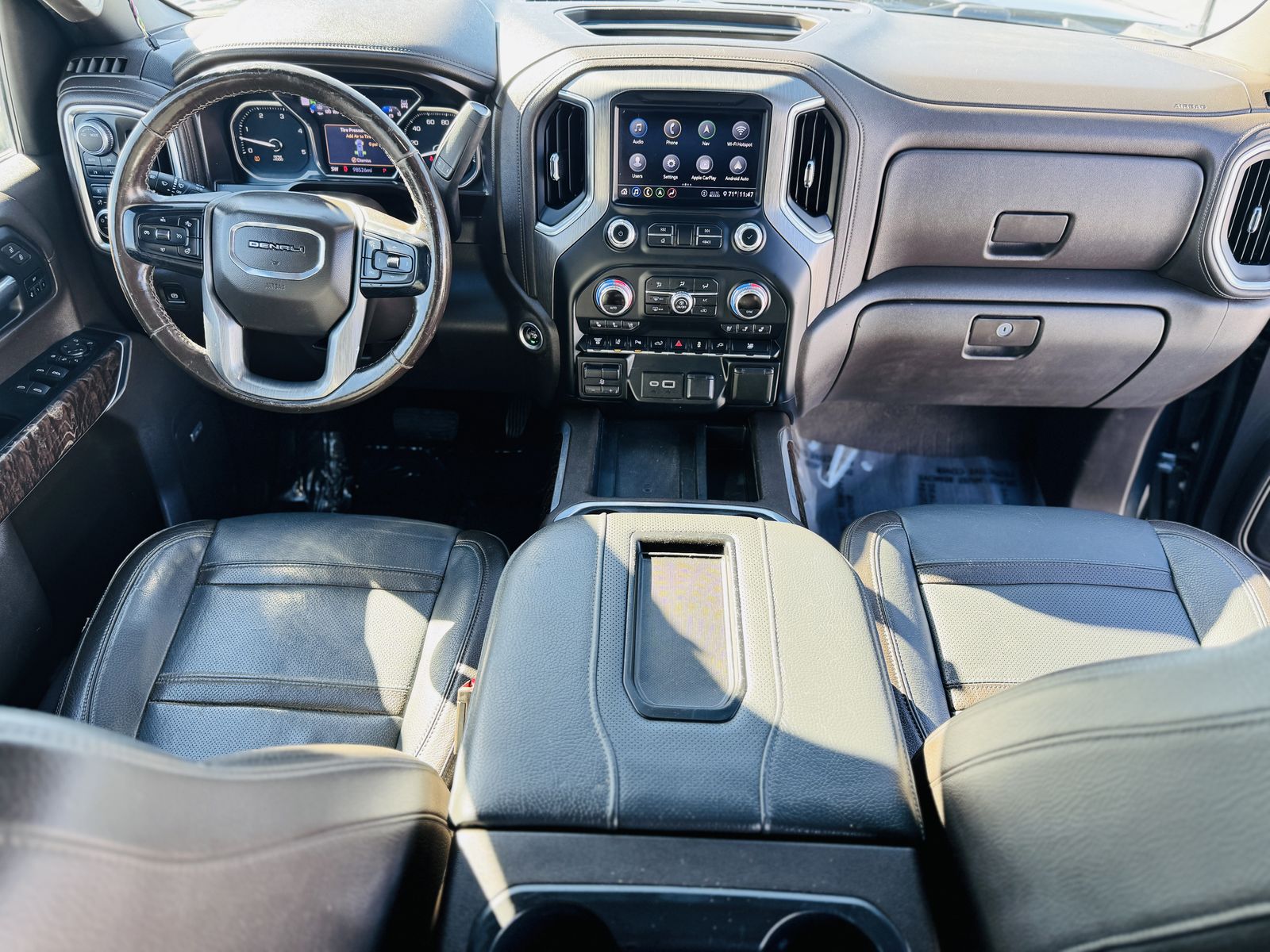 Denali trim with high-end leather-appointed seating and wood-grain accents.