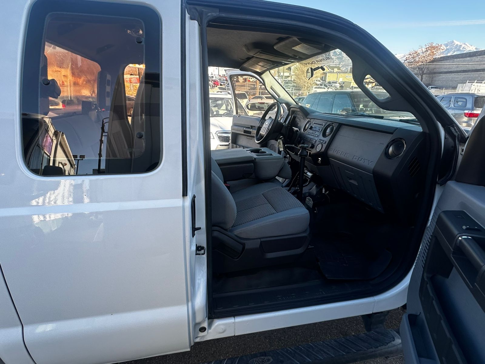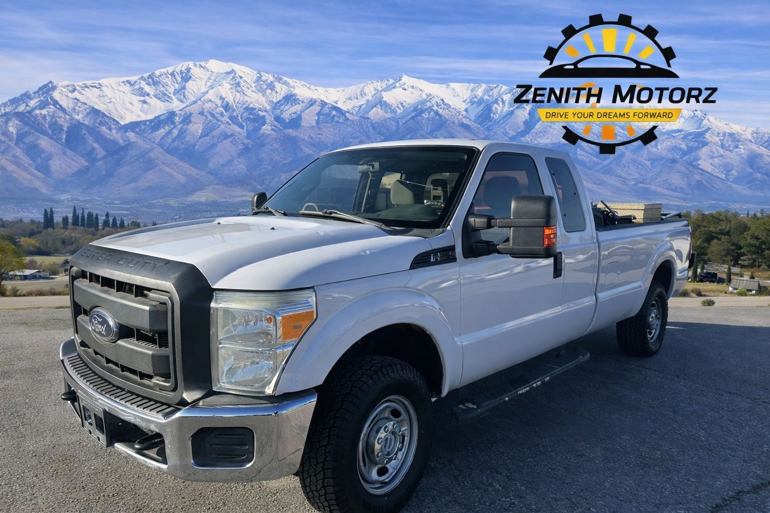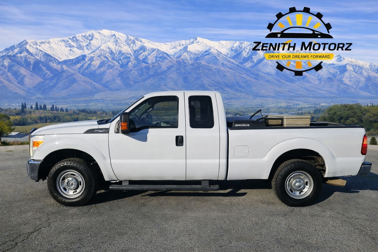 Strong and reliable 2014 Ford F-250 XL Extended Cab in white, built for work and off-road use.
