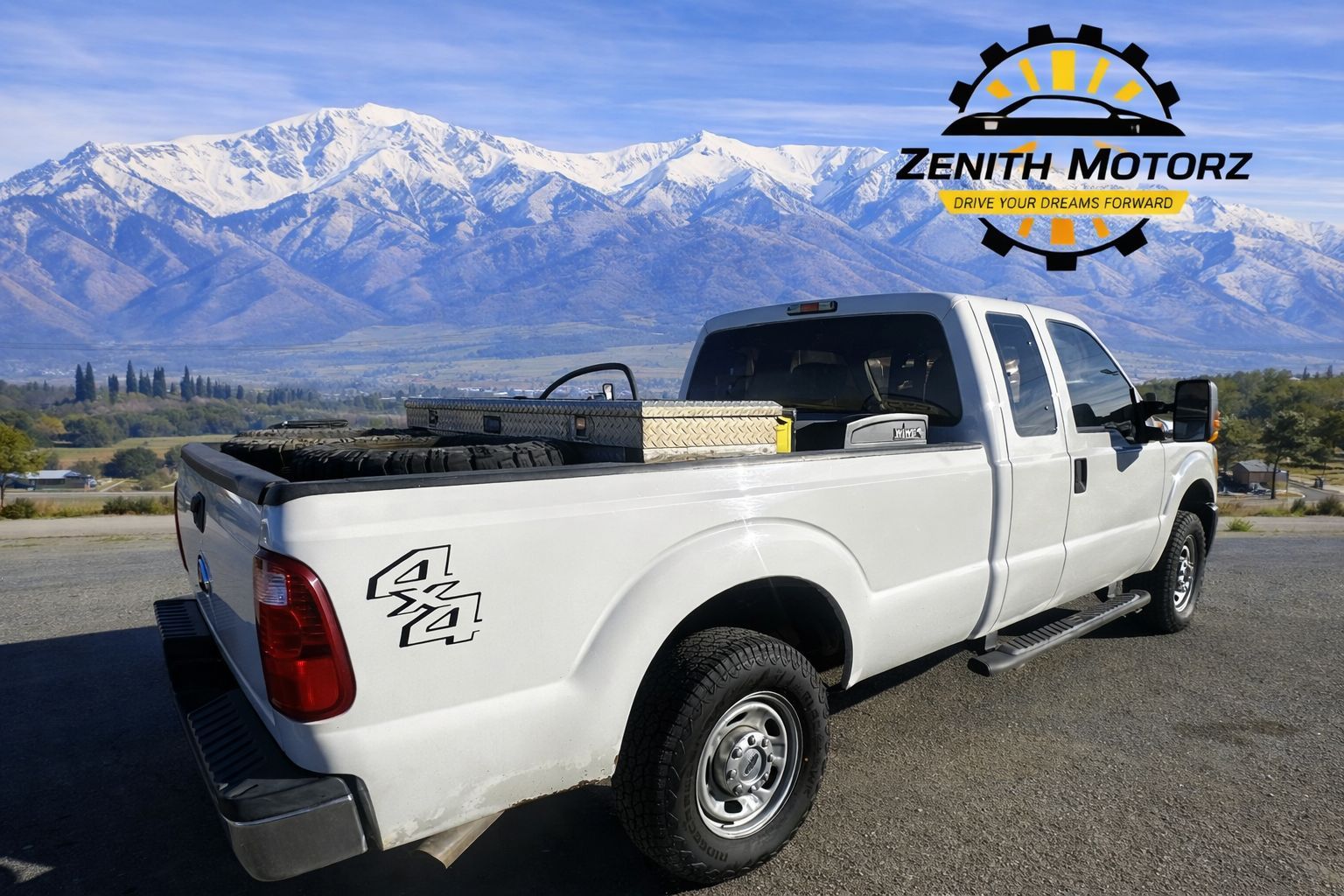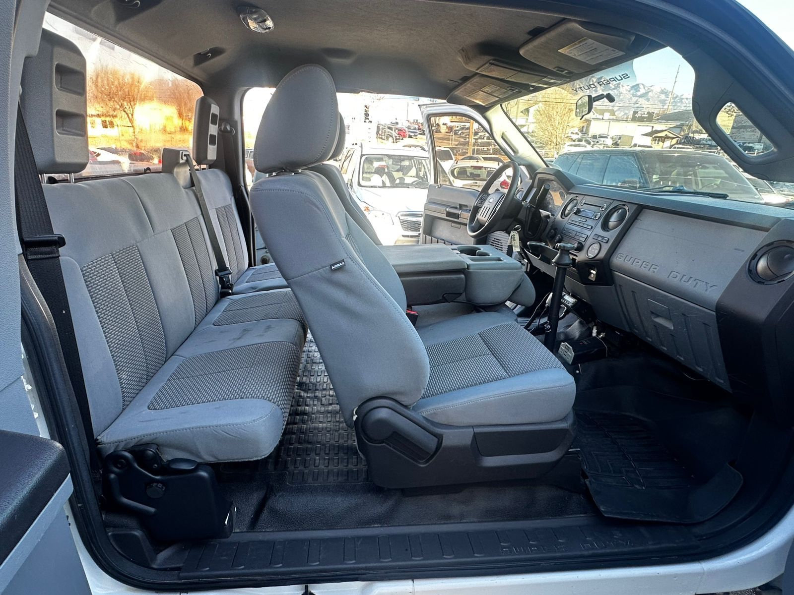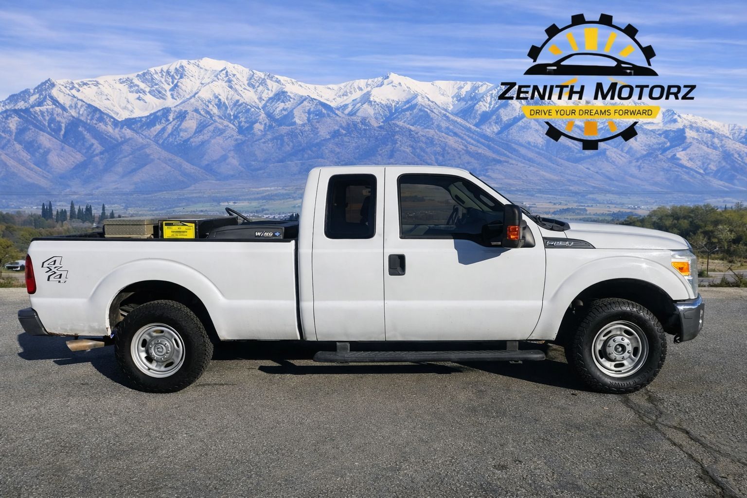 Strong and reliable 2014 Ford F-250 XL Extended Cab in white, built for work and off-road use.