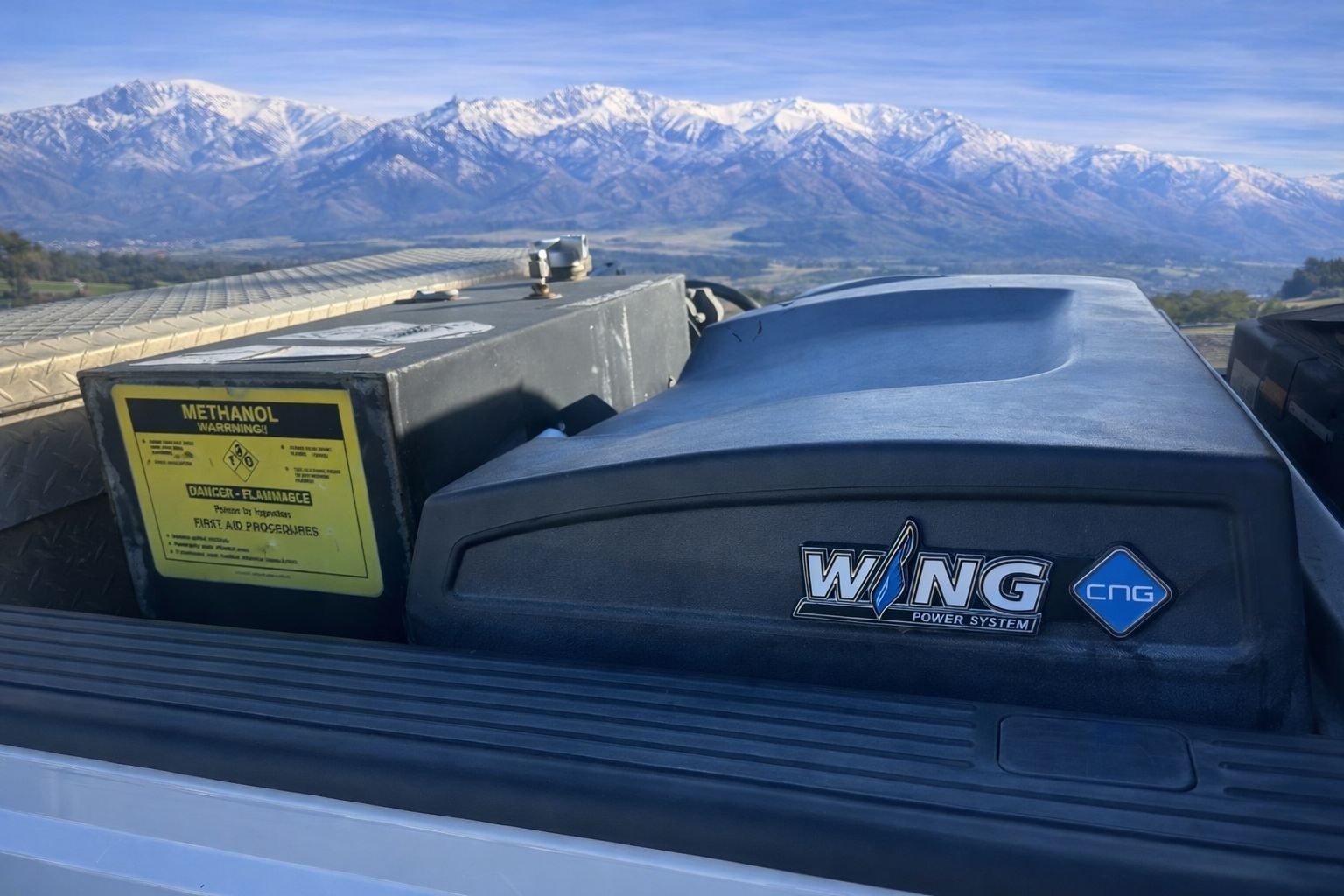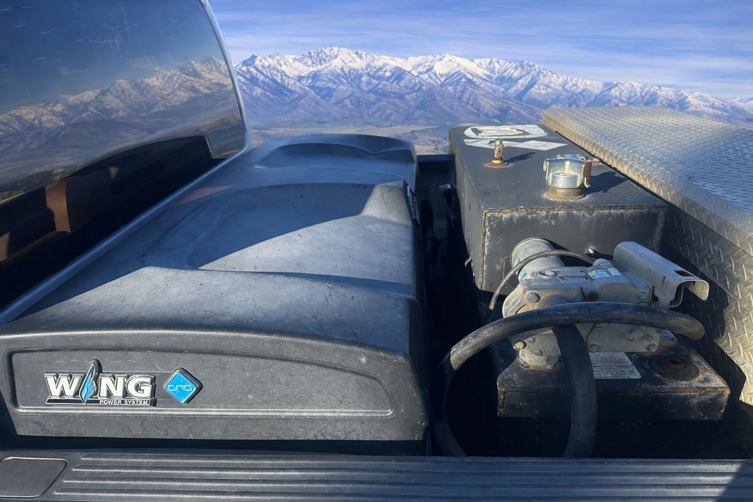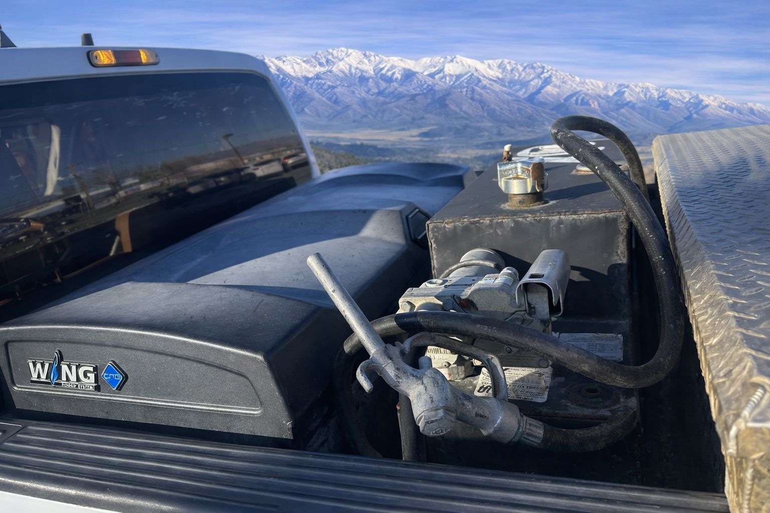 Additional fuel tank mounted in the bed