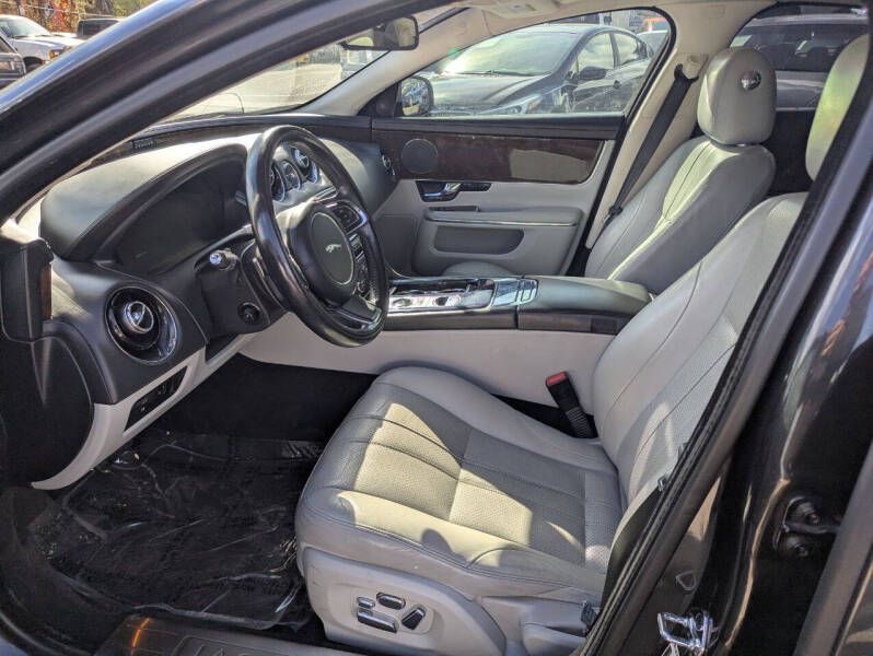 Step into true luxury with this 2012 Jaguar XJ, a full-size sedan that perfectly blends refined British craftsmanship with powerful performance. With its sleek, elegant design and unmistakable presence, this XJ stands out from the crowd in all the right ways.
