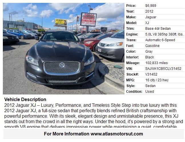 If you want a sophisticated sedan that offers style, comfort, and power, this 2012 Jaguar XJ is the one.