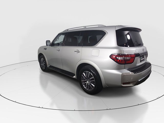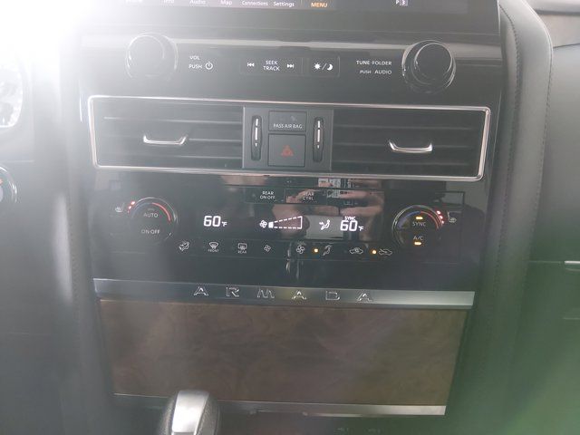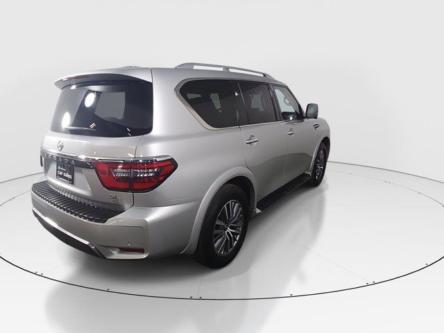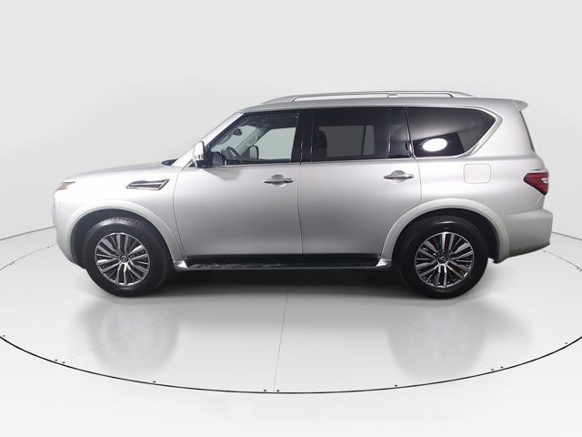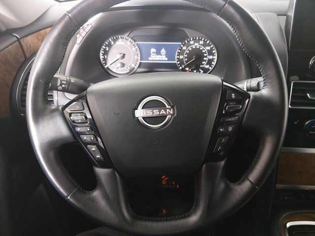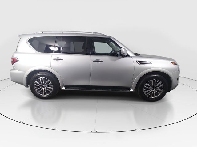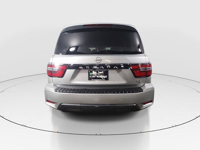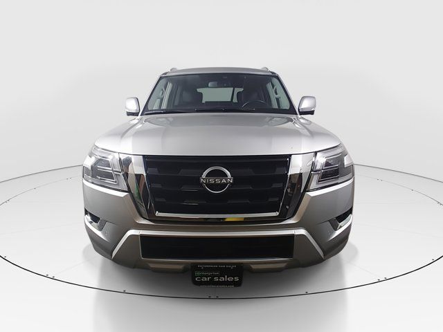 BRILLIANT SILVER METALLIC,[L93] 3RD ROW CARPETED FLOOR MATS - CAPTAIN SEAT -inc: carpeted cargo mat,[X01] CAPTAIN'S CHAIRS PACKAGE -inc: Seating revised from 8 to 7 passengers 2nd Row Captain's Chairs 2nd Row Center Console w/Padded Armrest,LED Brakelights,Headlights-Automatic Highbeams,Chrome Grille,Deep Tinted Glass,Speed Sensitive Variable Intermittent Wipers,Full-Size Spare Tire Stored Underbody w/Crankdown,Body-Colored Power w/Tilt Down Heated Auto Dimming Side Mirrors w/Power Folding and Turn Signal Indicator,Tires: P275/60R20 All-Season,Chrome Side Windows Trim and Black Front Windshield Trim,Power Liftgate Rear Cargo Access,Auto On/Off Reflector Led Low/High Beam Daytime Running Auto High-Beam Headlamps w/Delay-Off,Express Open/Close Sliding And Tilting Glass 1st Row Sunroof w/Sunshade,Fully Galvanized Steel Panels,Running Boards,Flip-Up Rear Window w/Wiper and Defroster,Front Windshield -inc: Sun Visor Strip,Chrome Door Handles,Front Fog Lamps,Body-Colored Front Bumper w/Metal-Look Rub Strip/Fascia Accent and 1 Tow Hook,Perimeter/Approach Lights,Lip Spoiler,Wheels: 20 x 8J Painted Alloy -inc: 18-spoke Machined finish,Aluminum Spare Wheel,Body-Colored Rear Bumper w/Metal-Look Rub Strip/Fascia Accent and 1 Tow Hook,Body-Colored Wheel Well Trim,Tailgate/Rear Door Lock Included w/Power Door Locks,Full Cloth Headliner,Heated Front Bucket Seats -inc: memory power driver's seat 10-way power adjustable driver seat w/2-way power lumbar and 8-way power adjustable passenger seat w/2-way power lumbar,2 Seatback Storage Pockets,Perimeter Alarm,FOB Controls -inc: Keyfob Cargo Access Keyfob Window Activation and Keyfob Remote Start,NissanConnect Services Tracker System,Heated Leather Steering Wheel w/Auto Tilt-Away,Trip Computer,Remote Releases -Inc: Power Cargo Access,Radio: NissanConnect w/SiriusXM -inc: 13 speaker Bose audio system 2 subwoofers Alexa built-in wireless Apple CarPlay Android Auto Nissan door to door navigation 12.3 color display w/multi-touch control SiriusXM Traffic and Travel Link (subscription required) access NissanConnect Services powered by SiriusXM Bluetooth hands-free phone system hands-free text messaging assistant enhanced voice recognition USB port for compatible devices HD Radio technology and Wi-Fi hotspot,Rear HVAC w/Separate Controls,Seats w/Leatherette Back Material,Memory Settings -inc: Driver Seat Door Mirrors Steering Wheel and HVAC,Manual Anti-Whiplash Adjustable Front Head Restraints and Manual Adjustable Rear Head Restraints,Delayed Accessory Power,Carpet Floor Trim,Fixed 60-40 Split-Bench 3rd Row Seat Front Manual Recline Manual Fold Into Floor 2 Manual and Adjustable Head Restraints,13 Speakers,Mobile Hotspot Internet Access,Power Rear Windows,HVAC -inc: Underseat Ducts Headliner/Pillar Ducts and Console Ducts,Intelligent Cruise Control (ICC) w/Full Speed Range and Hold,Illuminated Locking Glove Box,60-40 Folding Split-Bench Front Facing Manual Reclining Flip Forward Cushion/Seatback Rear Seat,Leather Door Trim Insert,HomeLink Garage Door Transmitter,Full Carpet Floor Covering,Fade-To-Off Interior Lighting,Smart Device Integration,Remote Keyless Entry w/Integrated Key Transmitter 4 Door Curb/Courtesy Illuminated Entry Illuminated Ignition Switch and Panic Button,Day-Night Auto-Dimming Rearview Mirror,Cargo Space Lights,Cargo Area Concealed Storage,8-Way Driver Seat,Leather Gear Shifter Material,Wireless Phone Connectivity,Driver And Passenger Visor Vanity Mirrors w/Driver And Passenger Illumination Driver And Passenger Auxiliary Mirror,Front Center Armrest and Rear Center Armrest,3 12V DC Power Outlets and 1 Interior 120V AC Power Outlet,Power Tilt/Telescoping Steering Column,Driver Foot Rest,Window Grid Diversity Antenna,Power 1st Row Windows w/Front And Rear 1-Touch Up/Down,Integrated Navigation System w/Voice Activation,Gauges -inc: Speedometer Odometer Voltmeter Oil Pressure Engine Coolant Temp Tachometer Trip Odometer and Trip Computer,Radio w/Seek-Scan Clock Speed Compensated Volume Control Aux Audio Input Jack and Steering Wheel Controls,Immobilizer,Dual Zone Front Automatic Air Conditioning,Interior Trim -inc: Simulated Wood/Metal-Look Instrument Panel Insert Simulated Wood Door Panel Insert Simulated Wood/Metal-Look Console Insert and Metal-Look Interior Accents,Analog Appearance,Driver Information Center,Real-Time Traffic Display,Outside Temp Gauge,3 12V DC Power Outlets,Power Door Locks w/Autolock Feature,Full Floor Console w/Covered Storage Mini Overhead Console w/Storage 3 12V DC Power Outlets and 1 Interior 120V AC Power Outlet,Front Cupholder,Leather-Appointed Seat Trim,Rear Cupholder,Trunk/Hatch Auto-Latch,Proximity Key For Doors And Push Button Start,Valet Function,Instrument Panel Bin Driver / Passenger And Rear Door Bins and Audio Media Storage,Air Filtration,Front And Rear Map Lights,Cruise Control w/Steering Wheel Controls,1 LCD Monitor In The Front,6-Way Passenger Seat,1583# Maximum Payload,Gas-Pressurized Shock Absorbers,Transmission w/Driver Selectable Mode Sequential Shift Control and Oil Cooler,Engine: 5.6L Endurance V8 -inc: remote engine start,Transmission: 7-Speed Automatic,150 Amp Alternator,Rear Auto-Leveling Suspension,4-Wheel Disc Brakes w/4-Wheel ABS Front And Rear Vented Discs Brake Assist and Hill Hold Control,Electric Power-Assist Speed-Sensing Steering,Double Wishbone Front Suspension w/Coil Springs,Class IV Towing Equipment -inc: Hitch Brake Controller and Trailer Sway Control,26 Gal. Fuel Tank,Electronic Transfer Case,Trailer Wiring Harness,GVWR: 7 500 lbs (3 402 kgs),70-Amp/Hr 650CCA Maintenance-Free Battery w/Run Down Protection,Single Stainless Steel Exhaust,1 Skid Plate,Permanent Locking Hubs,Front And Rear Anti-Roll Bars,2.937 Axle Ratio,Automatic Full-Time Four-Wheel Drive,Double Wishbone Rear Suspension w/Air Springs,Dual Stage Driver And Passenger Front Airbags,Back-Up Camera,Curtain 1st 2nd And 3rd Row Airbags,Driver Monitoring-Alert,ABS And Driveline Traction Control,Front Camera,Airbag Occupancy Sensor