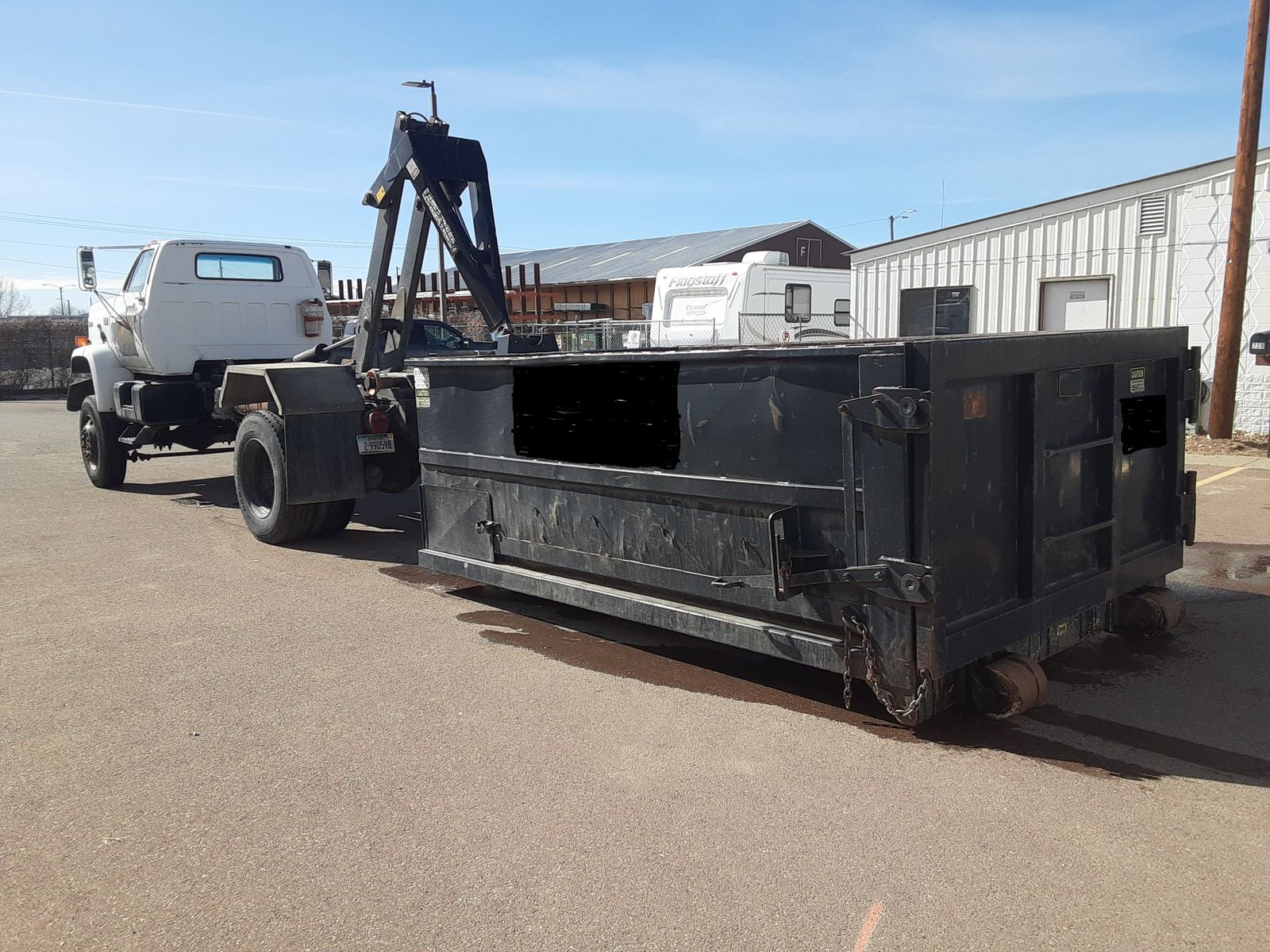 GMC Roll-Off Dumpster Truck - Cat Turbo -10 Ton Stellar Hook - 14 CY Dumpster - AWD - Allison Automatic