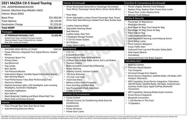 2021 Mazda CX-5 Grand Touring Machine Gray Metallic AWD 6-Speed Automatic SKYACTIV® 2.5L 4-Cylinder DOHC 16V 24/30 City/Highway MPG