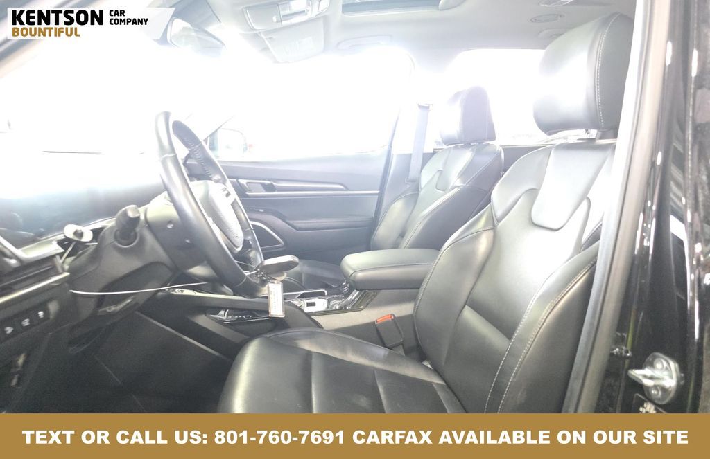 3rd row seats: split-bench, 4-Wheel Disc Brakes, 6 Speakers, ABS brakes, Air Conditioning, Alloy wheels, AM/FM radio: SiriusXM, Apple CarPlay & Android Auto, Auto High-beam Headlights, Automatic temperature control, Brake assist, Bumpers: body-color, Carpeted Floor Mats, Cross Bars, Delay-off headlights, Driver door bin, Driver vanity mirror, Dual front impact airbags, Dual front side impact airbags, Electronic Stability Control, Emergency communication system: 911 Connect, Exterior Parking Camera Rear, Four wheel independent suspension, Front anti-roll bar, Front Bucket Seats, Front Center Armrest, Front dual zone A/C, Front reading lights, Fully automatic headlights, Heated door mirrors, Heated Front Bucket Seats, Heated front seats, Illuminated entry, Knee airbag, Leather Shift Knob, Leather steering wheel, Low tire pressure warning, Navigation System, Occupant sensing airbag, Outside temperature display, Overhead airbag, Overhead console, Panic alarm, Passenger door bin, Passenger vanity mirror, Power door mirrors, Power driver seat, Power Liftgate, Power moonroof, Power steering, Power windows, Radio data system, Radio: AM/FM Display Audio System, Rear air conditioning, Rear anti-roll bar, Rear audio controls, Rear reading lights, Rear side impact airbag, Rear window defroster, Rear window wiper, Reclining 3rd row seat, Remote keyless entry, Security system, Speed control, Speed-sensing steering, Split folding rear seat, Spoiler, Steering wheel mounted audio controls, SynTex Synthetic Leather Seat Trim, Tachometer, Telescoping steering wheel, Tilt steering wheel, Traction control, Trip computer, Turn signal indicator mirrors, Variably intermittent wipers, and Wheels: 20'' x 7.5'' Black Finish.