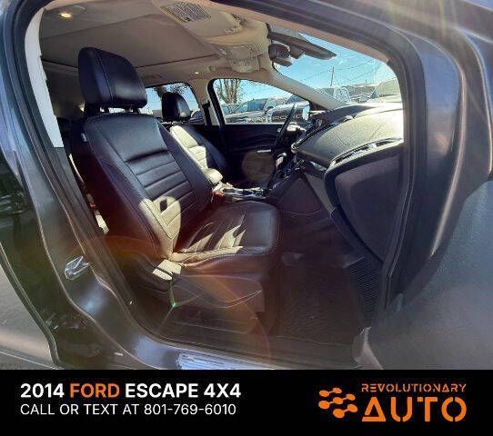 2014 Ford Escape Titanium 2.0L I4, FRONT WHEEL DRIVE W/ 4X4, Clean Title, Clean Carfax, 24 Service History Records, Runs and Drives Great, In Overall Very Good Condition. CALL OR TEXT JAMES FOR MORE INFORMATION OR TO SCHEDULE A TEST DRIVE! AT REVOLUTIONARY AUTO WE TAKE PRIDE IN GOING ABOVE AND BEYOND FOR OUR CUSTOMERS AND WE HOPE OUR GOOGLE REVIEWS SPEAK FOR THEMSELVES. WE ARE NOT HERE TO SIMPLY SELL CARS, WE VALUE BUILDING RELATIONSHIPS BY SIMPLY BACKING UP THE VEHICLES WE SELL AND PUTTING OUR CUSTOMERS FIRST! CALL OR TEXT JAMES TO SCHEDULE A TEST DRIVE. WE LOOK FORWARD TO MEETING YOU!
