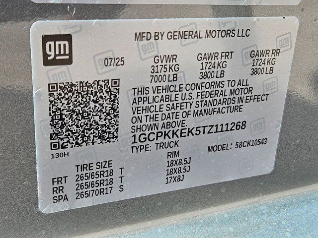 TRANSMISSION 8-SPEED AUTOMATIC ELECTRONICALLY CONTROLLED with overdrive and tow/haul mode. Includes Cruise Grade Braking and Powertrain Grade Braking (STD),REAR AXLE 3.42 RATIO,TIRE SPARE 265/70R17SL ALL-SEASON BLACKWALL (STD),SEATS FRONT 40/20/40 SPLIT-BENCH with covered armrest storage and under-seat storage (lockable) (STD),AUDIO SYSTEM CHEVROLET INFOTAINMENT 3 PREMIUM SYSTEM with Google built-in compatibility (select service plan required terms and limitations apply) including navigation capability 13.4 diagonal HD color touchscreen includes multi-touch display AM/FM stereo Bluetooth streaming audio for music and most phones; featuring Wireless Apple CarPlay and Wireless Android Auto capability for compatible phones advanced voice recognition in-vehicle apps personalized profiles for infotainment and vehicle settings (STD),TIRES 265/65R18SL ALL-SEASON BLACKWALL (STD),STERLING GRAY METALLIC,JET BLACK CLOTH SEAT TRIM,LT PREFERRED EQUIPMENT GROUP includes standard equipment,ENGINE TURBOMAX (310 hp [231 kW] @ 5600 rpm 430 lb-ft of torque [583 Nm] @ 3000 rpm) (STD),WHEELS 18 X 8.5 (45.7 CM X 21.6 CM) BRIGHT SILVER PAINTED ALUMINUM (STD),Tow Hitch,Lane Departure Warning,Lane Keeping Assist,Front Collision Mitigation,Front Collision Warning,Automatic Highbeams,Climate Control,Multi-Zone A/C,A/C,Security System,Rear Defrost,Keyless Entry,Power Door Locks,Power Driver Seat,Adjustable Steering Wheel,Heated Front Seat(s),Driver Adjustable Lumbar,Remote Engine Start,Keyless Start,Heated Steering Wheel,Turbocharged,Keyless Start,Locking/Limited Slip Differential,Four Wheel Drive,Tow Hooks,Power Steering,ABS,4-Wheel Disc Brakes,Aluminum Wheels,Tires - Front All-Season,Tires - Rear All-Season,Tires - Front All-Season,Tires - Rear All-Season,Daytime Running Lights,LED Headlights,Automatic Highbeams,Heated Mirrors,Power Mirror(s),Privacy Glass,AM/FM Stereo,Navigation System,MP3 Capability,Bluetooth Connection,Auxiliary Audio Input,Smart Device Integration,Requires Subscription,Satellite Radio,Requires Subscription,Bluetooth Connection,Smart Device Integration,Bluetooth Connection,WiFi Hotspot,Split Bench Seat,Cloth Seats,Power Driver Seat,Driver Adjustable Lumbar,Heated Front Seat(s),Pass-Through Rear Seat,Rear Bench Seat,Floor Mats,Floor Mats,Heated Steering Wheel,Steering Wheel Audio Controls,Adjustable Steering Wheel,Power Windows,Power Windows,Power Door Locks,Remote Engine Start,Keyless Entry,Power Door Locks,Keyless Start,Cruise Control,Security System,MP3 Capability,Auxiliary Audio Input,Climate Control,Multi-Zone A/C,A/C,A/C,Rear A/C,Rear Defrost,Front Collision Mitigation,Front Collision Warning,Front Collision Mitigation,Traction Control,Stability Control,Daytime Running Lights,Driver Air Bag,Passenger Air Bag,Front Side Air Bag,Front Head Air Bag,Rear Head Air Bag,Passenger Air Bag Sensor,Telematics,Requires Subscription,Telematics,Navigation from Telematics,Requires Subscription,Back-Up Camera,Lane Departure Warning,Lane Keeping Assist,Front Collision Warning,Driver Restriction Features,Tire Pressure Monitor