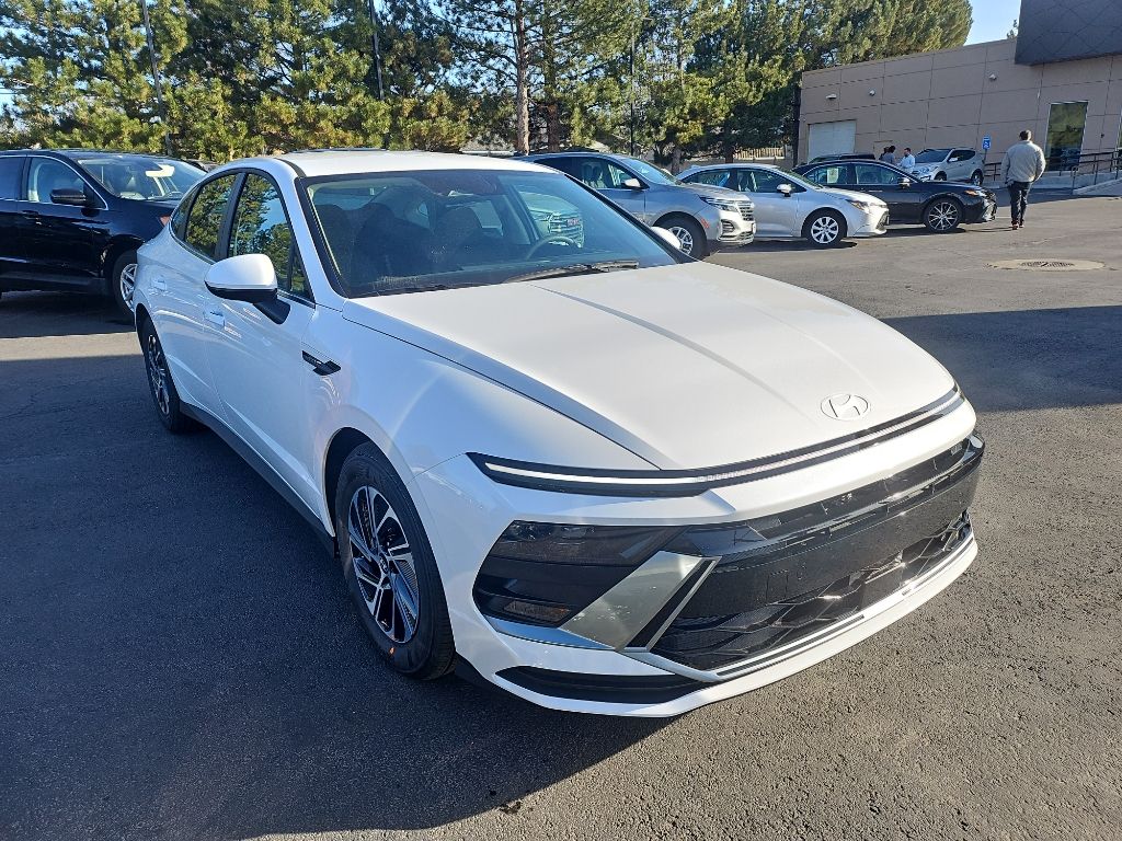 See what's behind you with the back up camera on the vehicle. This mid-size car offers Apple CarPlay for seamless connectivity. This Hyundai Sonata Hybrid keeps you comfortable with Auto Climate. This mid-size car features a high end BOSE stereo system. Never get into a cold vehicle again with the remote start feature on this 2026 Hyundai Sonata Hybrid . Bluetooth technology is built into this vehicle, keeping your hands on the steering wheel and your focus on the road. This mid-size car's Cross-Traffic Alert: Safeguarding you from unexpected traffic when reversing. This 2026 Hyundai Sonata Hybrid comes equipped with Android Auto for seamless smartphone integration on the road. This 2026 Hyundai Sonata Hybrid has a 4 Cyl, 2.0L high output engine. This model embodies class and sophistication with its refined white exterior. Maintaining a stable interior temperature in this model is easy with the climate control system. With the keyless entry system on this Hyundai Sonata Hybrid you can pop the trunk without dropping your bags from the store.
