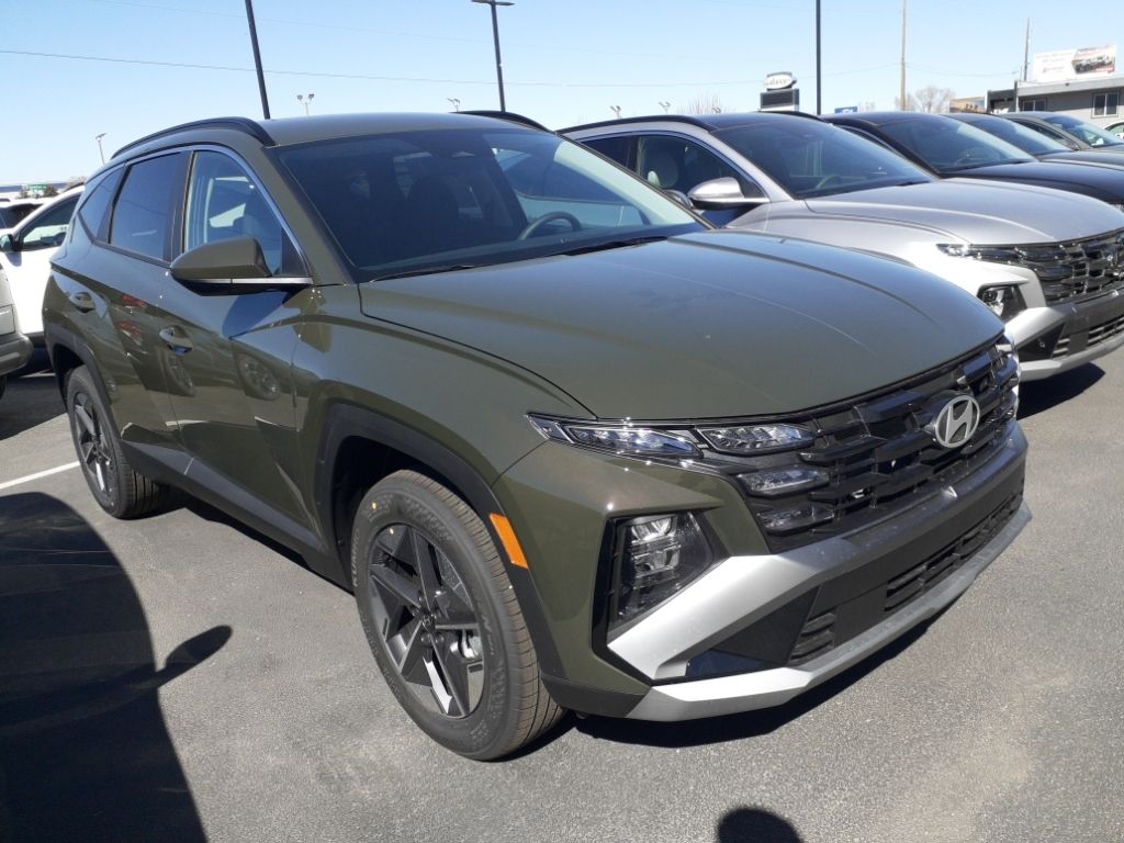 It offers Apple CarPlay for seamless connectivity. This model offers Automatic Climate Control for personalized comfort. The vehicle offers Android Auto for seamless smartphone integration. This Hyundai Tucson features a hands-free Bluetooth phone system. See what's behind you with the back up camera on this mid-size suv. Start this model from inside with remote start. Load groceries and much more with ease into this vehicle thanks to the power liftgate. Set the temperature exactly where you are most comfortable in it. The fan speed and temperature will automatically adjust to maintain your preferred zone climate. This 2026 Hyundai Tucson has four wheel drive capabilities. The Hyundai Tucson has a 4 Cyl, 2.5L high output engine. With the keyless entry system on this Hyundai Tucson you can pop the trunk without dropping your bags from the store. This vehicle contains elegant lines finished with an exquisite green color. With the adjustable lumbar support in this vehicle your back will love you.