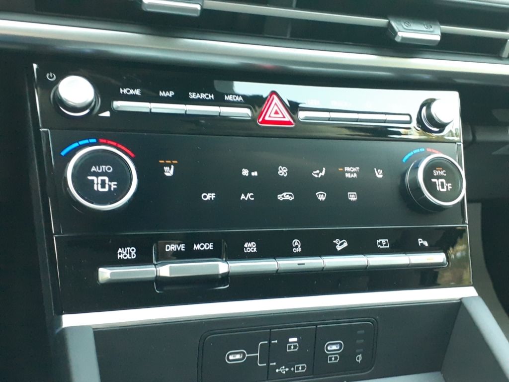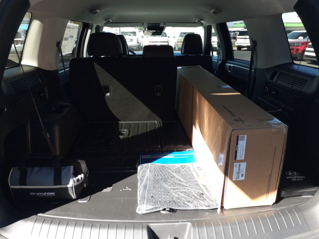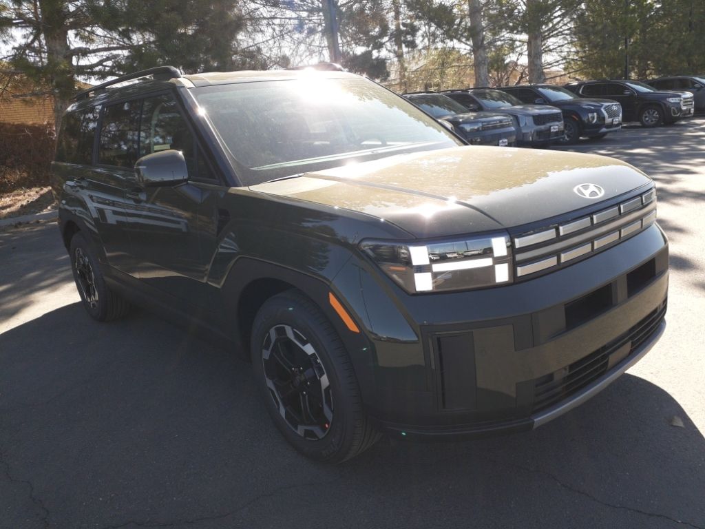 Option Group 01,Roof Rack Crossbars,Carpeted Floor Mats,Cargo Tray,Roadside Assistance Kit,Cargo Net,First Aid Kit,Apple CarPlay & Android Auto smart device wireless mirroring,Lane Following Assist (LFA) hands-on cruise control,Forward Collision-Avoidance Assist (FCA) w/Pedestrian/Cyclist Detection,Smart Cruise Control with Stop & Go (SCC),Brake assist system,Cruise control with steering wheel mounted controls,Power liftgate rear cargo door,Heated driver and front passenger seats,H-Tex leatherette front seat upholstery,Forward Collision-Avoidance Assist (FCA) w/Pedestrian, Cyclist & Junction-Turning Detection,Smart key with hands-free access and push button start,Lane Keeping Assist (LKA),Blind Spot Collision Warning (BCW),Rear Cross-Traffic Collision-Avoidance Assist (RCCA),Keyfob keyless entry,Driver Attention Warning (DAW),High Beam Assist (HBA) auto high-beam headlights,Hill Assist Control (HAC),Fixed third-row seats,Vehicle tracker with vehicle slowdown,External memory control,Front wireless smart device charging,Proximity cargo area access release,Rear mounted camera,Keyfob remote start,Bluetooth handsfree wireless device connectivity,Electronic stability control system,Automatic climate control,Selective service internet access,Driver seat power reclining, lumbar support, cushion tilt, fore/aft control and height adjustable control,Automatic full-time AWD,Bluetooth wireless audio streaming,LED daytime running lights,Primary monitor touchscreen,Standard grade speakers,Smartstream 2.5L I-4 port/direct injection, DOHC, CVVT variable valve control, intercooled turbo, regular unleaded, engine with 277HP,Smartstream 2.5L I-4 DOHC,Front windshield solar coating,Smart device remote start,Push-button,Automatic brake hold,Hyundai Digital Key smart device-as-key proximity door locks,Safe Exit Assist (SEA) external exit warning system,Dual-zone front climate control,Voice-activated climate control,Third-row climate control with separate controls,Manual fold into floor third-row seat,Immobilizer,Vehicle integrated emergency SOS system,Trailer sway control