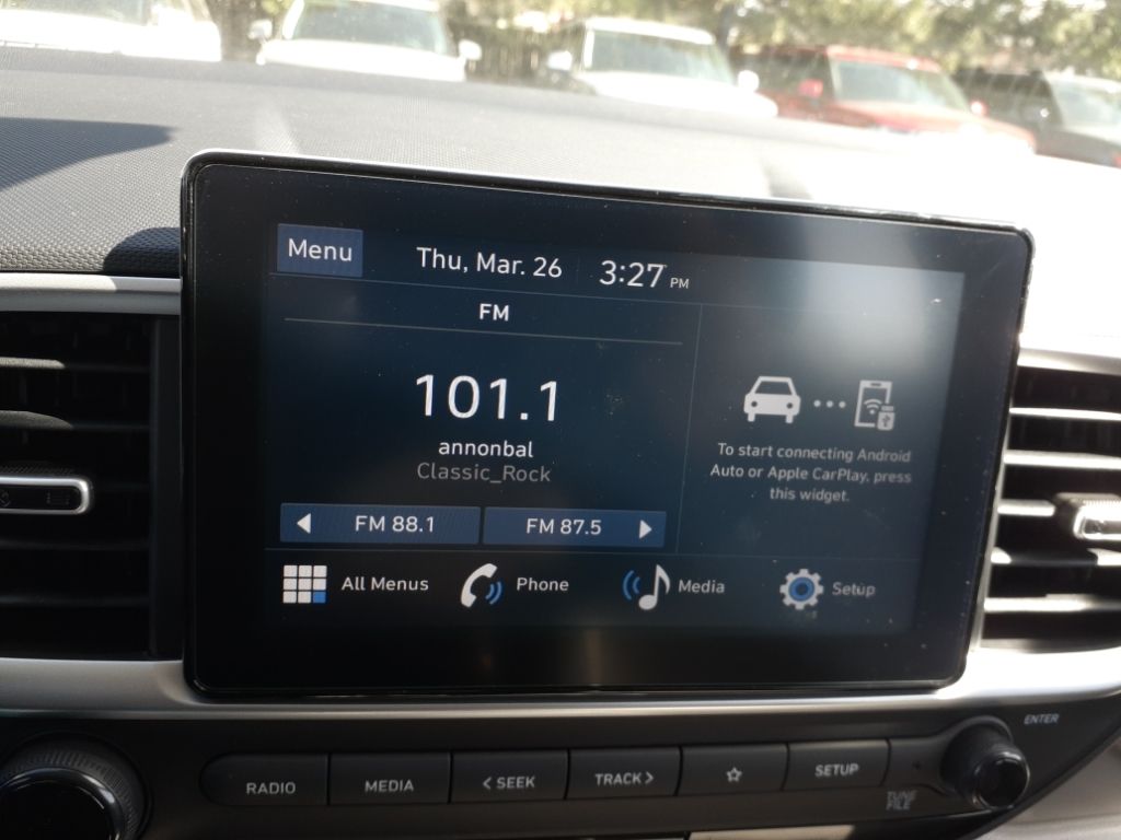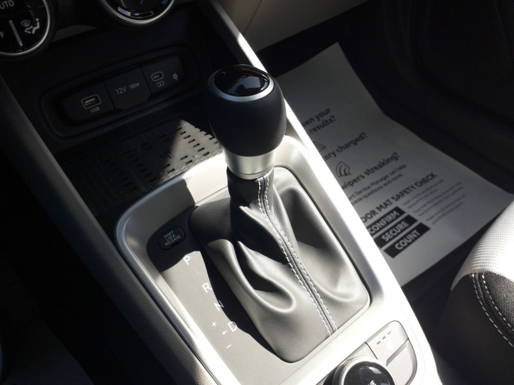 Option Group 01,All-Season Fitted Liners,Carpeted Floor Mats,Cargo Tray,Rear Seat Cup Holder,Cargo Net,First Aid Kit,Apple CarPlay & Android Auto smart device wireless mirroring,Forward Collision-Avoidance Assist (FCA) w/Pedestrian Detection,Brake assist system,Cruise control with steering wheel mounted controls,Heated driver and front passenger seats,Forward Collision-Avoidance Assist (FCA),Driver Attention Warning (DAW),Smart key with hands-free access and push button start,Lane Keep Assist (LKA),Blind Spot Collision Warning (BCW),Rear Cross-Traffic Collision Warning (RCCW),Keyfob keyless entry,High Beam Assist (HBA) auto high-beam headlights,Hill Assist Control (HAC),External memory control,Qi Wireless Charging front wireless smart device charging,Rear View Monitor (RVM) rear mounted camera,Bluetooth handsfree wireless device connectivity,Electronic stability control system,First-row sliding and tilting glass sunroof with express open/close activation sunshade,Automatic climate control,Manual cargo area access release,Bluetooth wireless audio streaming,Primary monitor touchscreen,Daytime running lights,Standard grade speakers,Smartstream 1.6L I-4 DOHC, CVVT variable valve control, regular unleaded, engine with 121HP,Smartstream 1.6L I-4 DOHC,Push-button,Immobilizer,Multi-level cargo floor,Rear Occupant Alert (ROA) rear seat check warning,Leather steering wheel,Manual rear child safety door locks,Roof rails,Heated driver and passenger side door mirrors,Driver selectable steering effort,Gauge cluster display size: 4.20,Manual tilting steering wheel,Manual telescopic steering wheel,Pearlcoat paint,17 x 6.5-inch front and rear machined w/painted accents aluminum wheels,P205/55HR17 AS BSW front and rear tires,Cloth front seat upholstery,6 airbags,Driver front impact airbag,Seat mounted side impact driver airbag,Curtain first and second-row overhead airbags,Passenger front impact airbag,Seat mounted side impact front passenger airbag