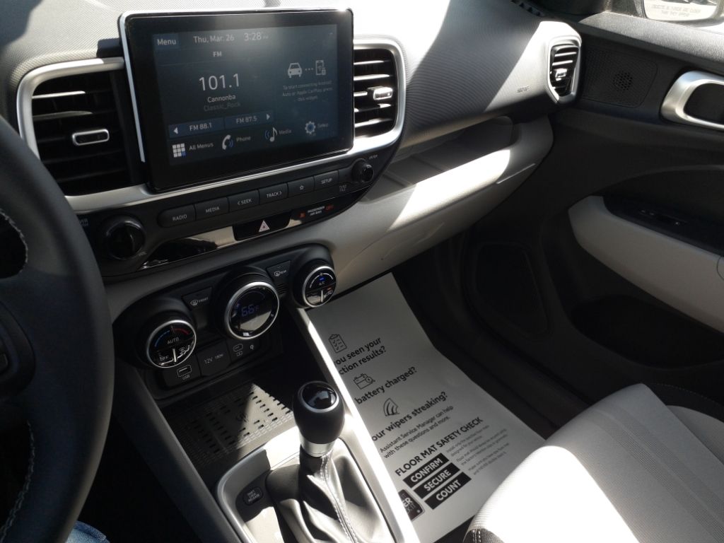 This Hyundai Venue keeps you comfortable with Auto Climate. Bluetooth technology is built into the Hyundai Venue, keeping your hands on the steering wheel and your focus on the road. Apple CarPlay: Seamless smartphone integration for the vehicle - stay connected and entertained on the go! It offers Android Auto for seamless smartphone integration. See what's behind you with the back up camera on this vehicle. Lane Keep Assist in this vehicle helps maintain safe driving by gently steering to stay within the lane. The vehicle has a 4 Cyl, 1.6L high output engine. Front wheel drive on this model gives you better traction and better fuel economy. This model is painted with a sleek and sophisticated black color. Maintaining a stable interior temperature in the Hyundai Venue is easy with the climate control system. Quickly unlock it with keyless entry. This 2026 Hyundai Venue features cruise control for long trips.