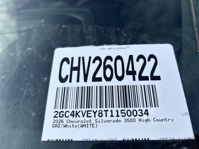 SiriusXM with 360L Trial Subscription,Preferred Equipment Group 3LZ,10-Way Power Driver Seat Adjuster with Lumbar,Driver Memory,Power Sliding Rear Window with Defogger,10-Way Power Passenger Seat Adjuster with Lumbar,Chevrolet Connected Access Capable,Power Front Windows with Passenger Express Up/Down,Power Rear Windows with Express Down,Deep-Tinted Glass,Power Door Locks,Keyless Open and Start,Power Front Windows with Driver Express Up/Down,Color-Keyed Carpeting Floor Covering,Front Carpeted Floor Mats,Rear Carpeted Floor Mats,Winter Grille Cover,Bluetooth® For Phone,Power-Retractable Assist Steps,Push Button Start,Remote Vehicle Starter System,6 Rectangular Chromed Tubular Assist Steps,Electric Rear-Window Defogger,Front Rain-Sensing Wipers,Power Sunroof,Chevytec Spray-on Black Bedliner,Compass Located in Instrument Cluster,Technology Package,Floor-Mounted Center Console,Auto-Dimming Inside Rear-View Mirror,Chrome Mirror Caps,Auto-Dimming Inside Rearview Mirror with Camera,Chrome Door Handles,Durabed Pickup Bed,Radio: Chevrolet Infotainment 3 Premium System,Hill Descent Control,Engine Block Heater,Exhaust Brake,Wireless Charging,Heated Driver and Front Outboard Passenger Seats,Heated 2nd Row Outboard Seats,120-Volt Bed Mounted Power Outlet,Heated Steering Wheel,120-Volt Interior Power Outlet,Ventilated Driver and Front Passenger Seats,220 Amp Alternator,170 Amp Alternator,Heavy-Duty 80 Amp-Hour Battery,Manual Tilt-Wheel/Telescoping Steering Column,Wrapped Steering Wheel,Skid Plates,Hitch Guidance with Hitch View,Rear Wheelhouse Liners,Standard Tailgate,Multi-Flex Tailgate,EZ Lift Power Lock and Release Tailgate,Power Tailgate,Up-Level Rear Seat with Storage Package,Perforated Leather Seating Surfaces,Front LED Fog Lamps,Trailer Camera Provisions,Ultrasonic Front and Rear Park Assist,OnStar Services Capable,in-Vehicle Trailering App System,LED Cargo Area Lighting,Rear Cross Traffic Alert,Universal Home Remote,Steering Wheel Audio Controls,Trailer Side Blind Zone Alert,Bose Premium 7-Speaker Sound System,Unauthorized Entry Theft-Deterrent System,Multicolor 15 Diagonal Head-Up Display,Bed View Camera with Two Trailer Camera Provisions,Front Chrome Recovery Hooks,Black Molded Splash Guards,Polished Exhaust Tip,Wi-Fi Hotspot Capable,Wheels: 20 8-Spoke Bright Finish Aluminum,Gooseneck/5th Wheel Prep Package,Z71 Off-Road Package,Suspension Package,4-Wheel Disc Brakes,Apple CarPlay/Android Auto,Premium audio system: Chevrolet Infotainment 3 Premium,AM/FM radio: SiriusXM with 360L,Auto High-beam Headlights,Compass,7 Speakers,Auto-dimming Rear-View mirror,Ventilated front seats,Variably intermittent wipers,Turn signal indicator mirrors,Trip computer,Traction control,Tilt steering wheel,Telescoping steering wheel,Steering wheel mounted audio controls,Split folding rear seat,Speed-sensing steering,Speed control,Security system,Remote keyless entry,Rear window defroster,Rear step bumper,Rear seat center armrest,Rear reading lights,Rain sensing wipers,Power windows,Power steering,Power passenger seat,Power driver seat,Power door mirrors,Passenger vanity mirror,Passenger door bin,Panic alarm,Overhead console,Overhead airbag,Outside temperature display,Occupant sensing airbag,Memory seat,Low tire pressure warning,Illuminated entry,Heated steering wheel,Heated rear seats,Heated front seats,Heated door mirrors,Genuine wood door panel insert,Genuine wood dashboard insert,Genuine wood console insert,Garage door transmitter,Fully automatic headlights,Front wheel independent suspension,Front reading lights,Front fog lights,Front dual zone A/C,Front anti-roll bar,Emergency communication system,Dual front side impact airbags,Dual front impact airbags,Driver vanity mirror,Driver door bin,Delay-off headlights,Bumpers: body-color,Brake assist,Bodyside moldings,Automatic temperature control,Auto-dimming door mirrors,Alloy wheels,ABS brakes,Voltmeter,Tachometer,Front Center Armrest,Front Bucket Seats,Electronic Stability Control,Air Conditioning,Adaptive Cruise Control,REAR CAMERA MIRROR inside rearview auto-dimming with full camera display,TAILGATE GATE FUNCTION MANUAL WITH EZ LIFT includes power lock and release,SKID PLATES protect the oil pan front axle and transfer case,WHEELS 20 (50.8 CM) BRIGHT FINISH ALUMINUM 8-SPOKE (STD),TAILGATE MULTI-FLEX with six functional load/access features NOTE: Auto release can be disabled if ball hitch is installed. See Owner's manual for details,GOOSENECK / 5TH WHEEL PREP PACKAGE -- Hitch platform to accept Gooseneck or 5th Wheel hitch. Includes hitch platform with tray to accept ball stamped bed holes with removable caps installed and bed mounted 7-pin trailer harness (similar to UY2 harness). (Includes (CGN) Chevytec spray-on bedliner.,JET BLACK PERFORATED LEATHER SEATING SURFACES,TRANSMISSION 10-SPEED AUTOMATIC,HILL DESCENT CONTROL,LPO MOLDED SPLASH GUARDS BLACK (dealer-installed),TIRES LT275/65R20 E 126/123 BF GOODRICH OFF-ROAD T/A KO3,WINTER GRILLE COVER,TECHNOLOGY PACKAGE includes (DRZ) Rear Camera Mirror and (UV6) 15 Diagonal Head-Up Display,ASSIST STEPS POWER-RETRACTABLE WITH BRIGHT TRIM includes LED lighting,ENGINE BLOCK HEATER,HIGH COUNTRY PREFERRED EQUIPMENT GROUP includes standard equipment,SUMMIT WHITE,REAR AXLE 3.42 RATIO,GVWR 12 100 LBS. (5488 KG) WITH SINGLE REAR WHEELS,AUDIO SYSTEM CHEVROLET INFOTAINMENT 3 PREMIUM SYSTEM with Google built-in compatibility (select service plan required terms and limitations apply) including navigation capability 13.4 diagonal HD color touchscreen includes multi-touch display AM/FM stereo Bluetooth streaming audio for music and most phones; featuring Wireless Apple CarPlay and Wireless Android Auto capability for compatible phones advanced voice recognition in-vehicle apps personalized profiles for infotainment and vehicle settings (STD),EXHAUST BRAKE,SEATS FRONT BUCKET WITH CENTER CONSOLE FOR CREW CAB AND DOUBLE CAB MODELS (STD),SUNROOF POWER ON CREW CAB MODELS,ENGINE DURAMAX 6.6L TURBO-DIESEL V8 B20-DIESEL COMPATIBLE (470 hp [
