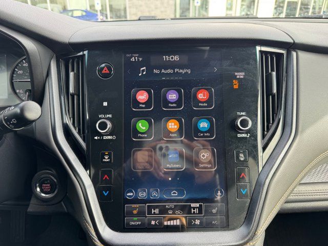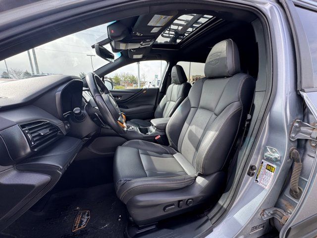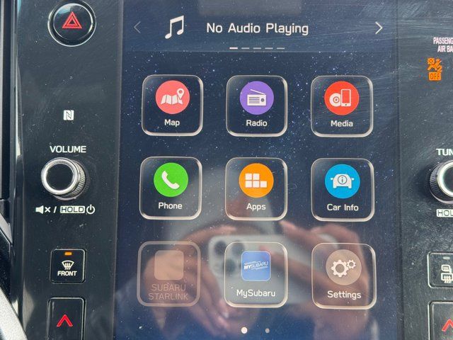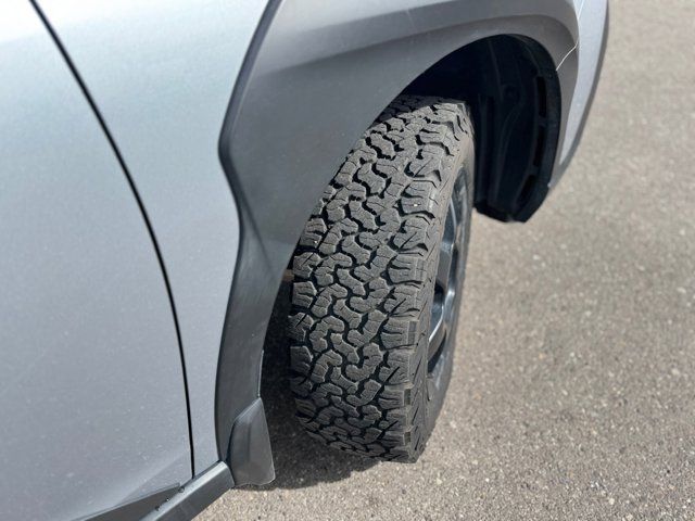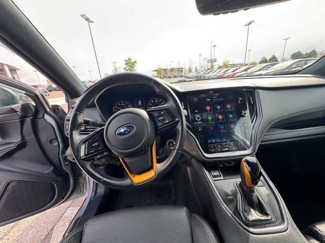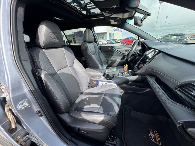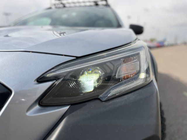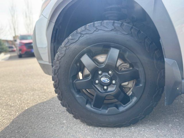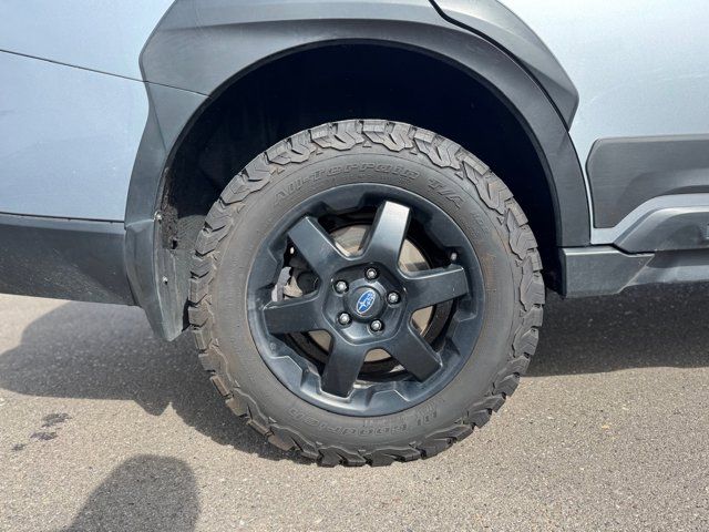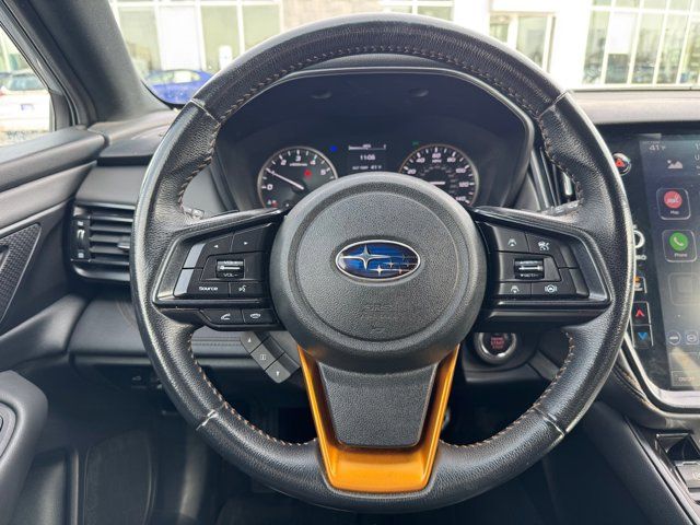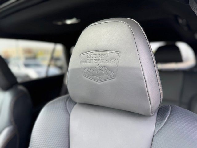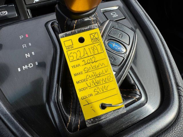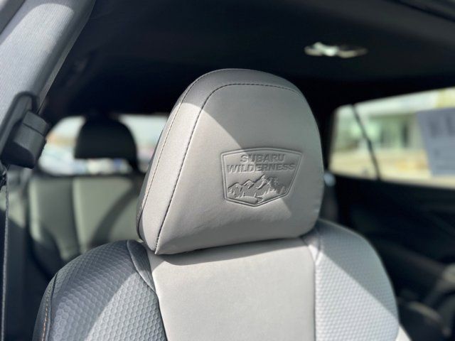 GRAY STARTEX-TRIMMED UPHOLSTERY -inc: yellow stitching,ICE SILVER METALLIC,DOOR CLADDING -inc: Part number J101SAN900,CARPETED FLOOR MATS -inc: Part number J501SAN060,WILDERNESS PACKAGE -inc: Wireless Charger Part number H671SAN200 Auto-Dimming Exterior Mirror w/Approach Light Part number J201SAN300 Cargo Sidewall Protector Part number J501SAN260 Dome Light LED Upgrade Part number H461SFL110 Splash Guards Part number J101SAN150 Rear Seat Back Protector Part number J501SAN222,DOOR SCUFF PROTECTOR -inc: Part number J131SAN000,POWER MOONROOF & NAVIGATION & RAB -inc: Reverse Automatic Braking (RAB) System Power Moonroof Radio: Subaru STARLINK 11.6 Multimedia Nav System AM/FM stereo HD Radio multi-touch gesture high resolution display screen voice activated controls and navigation Bluetooth audio streaming and hands-free phone connectivity w/SMS text messaging (refer to subaru.com for cell phone compatibility) Near Field Communication (NFC) iPod control capability SiriusXM All Access radio (4 months free trial/subscription required after) SiriusXM Traffic (3 years free trial/subscription required after) SiriusXM Travel Link (3 year free trial/subscription required after) smartphone integration: Android Auto Apple CarPlay and STARLINK cloud applications (refer to subaru.com for app availability) USB and Over The Air (OTA) audio system update USB/Map Over The Air (MOTA) TomTom navigation system update (3 years free map updates) 6 speakers 3.5mm auxiliary input jack and dual USB input ports,Turbocharged,All Wheel Drive,Power Steering,ABS,4-Wheel Disc Brakes,Brake Assist,Brake Actuated Limited Slip Differential,Aluminum Wheels,Tires - Front All-Terrain,Tires - Rear All-Terrain,Conventional Spare Tire,Heated Mirrors,Power Mirror(s),Integrated Turn Signal Mirrors,Rear Defrost,Privacy Glass,Intermittent Wipers,Variable Speed Intermittent Wipers,Rear Spoiler,Remote Trunk Release,Power Liftgate,Power Door Locks,Luggage Rack,Daytime Running Lights,Automatic Headlights,Headlights-Auto-Leveling,LED Headlights,Fog Lamps,Automatic Highbeams,AM/FM Stereo,Satellite Radio,MP3 Capability,Bluetooth Connection,Telematics,Auxiliary Audio Input,HD Radio,Smart Device Integration,Requires Subscription,MP3 Capability,Steering Wheel Audio Controls,Bluetooth Connection,Power Driver Seat,Power Passenger Seat,Bucket Seats,Heated Front Seat(s),Driver Adjustable Lumbar,Pass-Through Rear Seat,Heated Rear Seat(s),Rear Bench Seat,Adjustable Steering Wheel,Trip Computer,Power Windows,Telematics,Requires Subscription,Leather Steering Wheel,Keyless Entry,Power Door Locks,Keyless Entry,Power Door Locks,Keyless Start,Hands-Free Liftgate,Universal Garage Door Opener,Cruise Control,Adaptive Cruise Control,Climate Control,Multi-Zone A/C,A/C,Premium Synthetic Seats,Driver Vanity Mirror,Passenger Vanity Mirror,Driver Illuminated Vanity Mirror,Passenger Illuminated Visor Mirror,Auto-Dimming Rearview Mirror,Floor Mats,Cargo Shade,Keyless Start,Smart Device Integration,Smart Device Integration,Requires Subscription,Power Door Locks,Power Windows,Trip Computer,Security System,Immobilizer,Cruise Control Steering Assist,Traction Control,Stability Control,Traction Control,Front Side Air Bag,Lane Departure Warning,Lane Keeping Assist,Lane Departure Warning,Front Collision Mitigation,Driver Monitoring,Telematics,Requires Subscription,Blind Spot Monitor,Cross-Traffic Alert,Tire Pressure Monitor,Driver Air Bag,Passenger Air Bag,Front Head Air Bag,Rear Head Air Bag,Passenger Air Bag Sensor,Knee Air Bag,Child Safety Locks,Back-Up Camera
