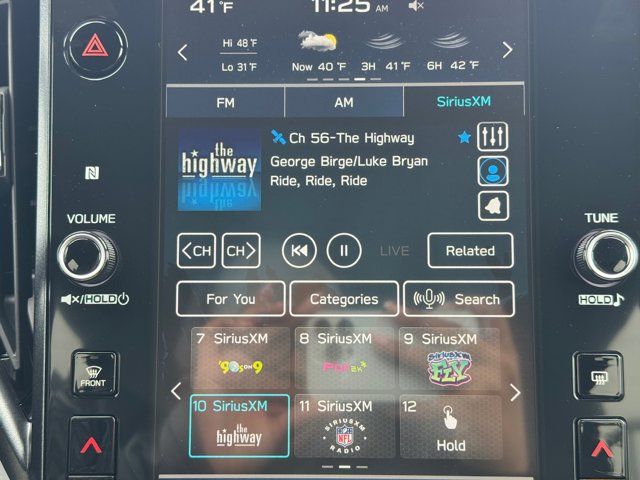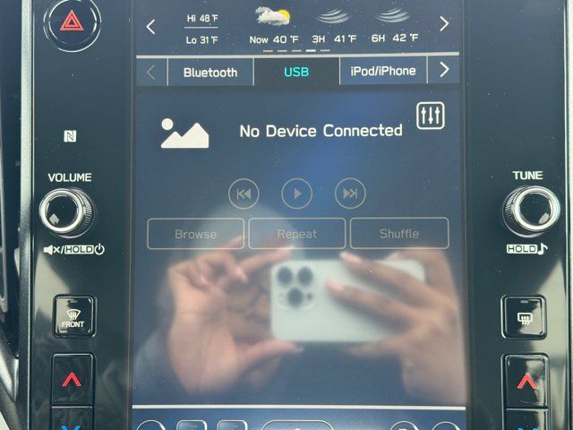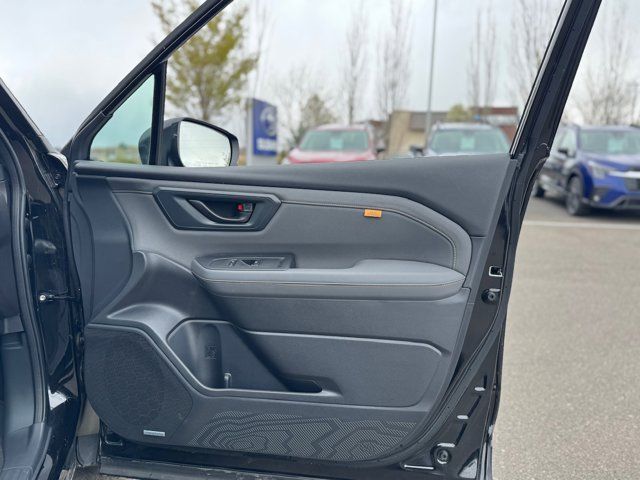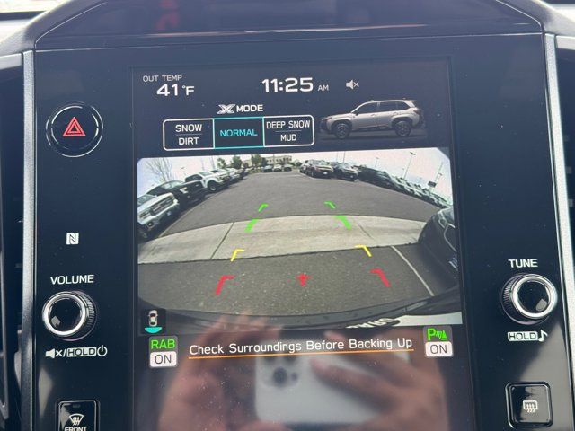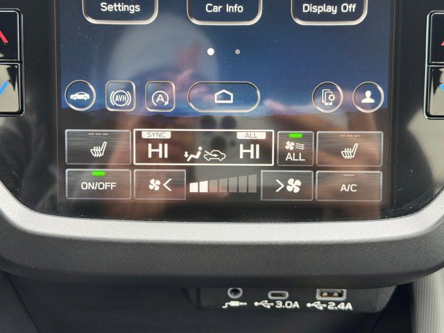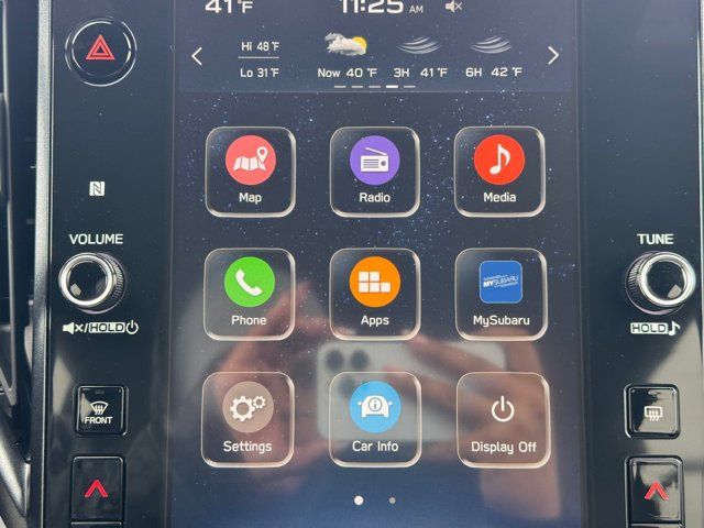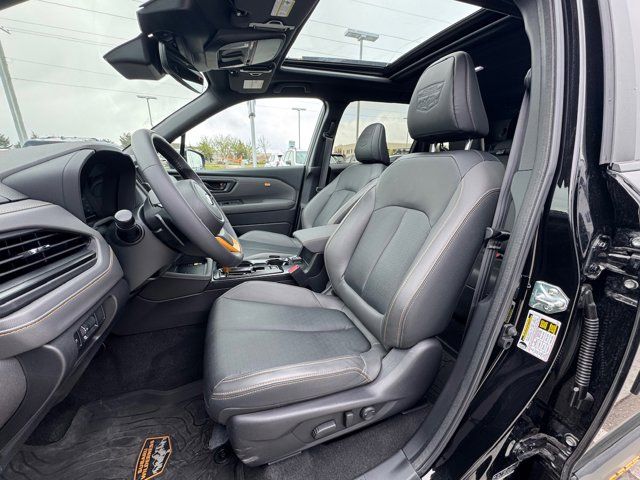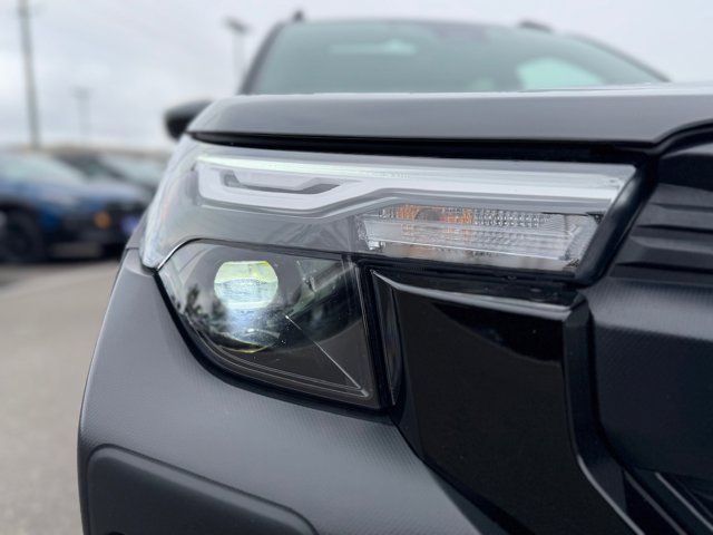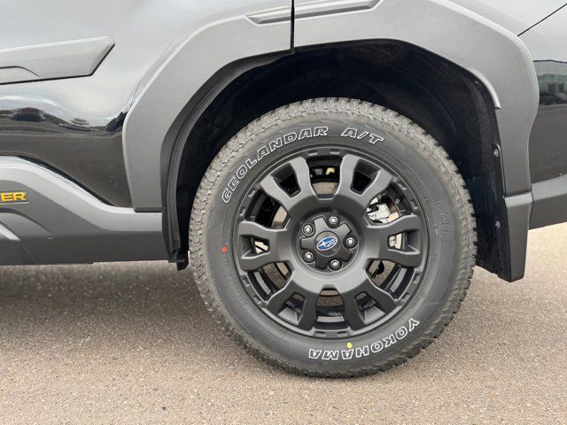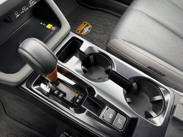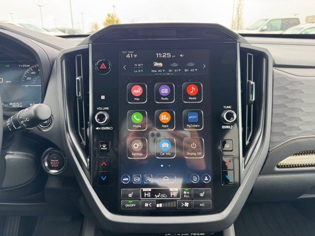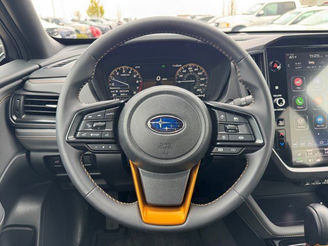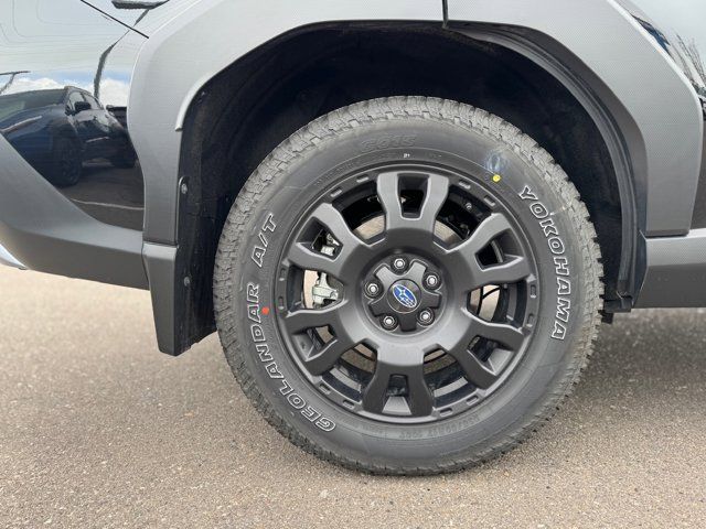 AUTO-DIMMING MIRROR W/COMPASS & HOMELINK -inc: Part number H501SAN000,SPLASH GUARDS -inc: Part number J101SSL300,GRAY TEXTURED STARTEX UPHOLSTERY -inc: silver and copper stitching and embossed Subaru Wilderness logo on head restraints,CRYSTAL BLACK SILICA,HARMAN/KARDON SPEAKER SYSTEM & POWER REAR GATE -inc: Power Rear Gate automatic close and height memory hand pressure sensing automatic close and illuminated close and lock switch Radio: Subaru 11.6 Multimedia Navigation System valet mode integrated center information display AM/FM stereo HD Radio multitouch gesture high resolution display screen voice activated controls voice activated navigation Bluetooth audio streaming and hands-free phone connectivity w/SMS text messaging (refer to Subaru.com for cellphone compatibility) TomTom navigation software w/what3words iPod control capability smartphone integration: Android Auto and Apple CarPlay w/full screen view and wireless connection USB and Over The Air (OTA) audio system update USB and Map Over The Air (MOTA) TomTom navigation system update (3 years free map updates) steering wheel controls harman/kardon speaker system w/11 speakers and 576 watt equivalent maximum output amplifier 3.5mm auxiliary input jack and ro,AUTO-DIMMING EXTERIOR MIRROR W/APPROACH LIGHT -inc: Part number J201SFN001,All Wheel Drive,Power Steering,ABS,4-Wheel Disc Brakes,Brake Assist,Brake Actuated Limited Slip Differential,Aluminum Wheels,Tires - Front All-Terrain,Tires - Rear All-Terrain,Conventional Spare Tire,Sun/Moonroof,Generic Sun/Moonroof,Panoramic Roof,Heated Mirrors,Power Mirror(s),Integrated Turn Signal Mirrors,Rear Defrost,Privacy Glass,Intermittent Wipers,Variable Speed Intermittent Wipers,Rain Sensing Wipers,Rear Spoiler,Power Door Locks,Daytime Running Lights,Automatic Headlights,Headlights-Auto-Leveling,LED Headlights,Automatic Highbeams,Fog Lamps,AM/FM Stereo,Satellite Radio,MP3 Capability,Steering Wheel Audio Controls,Bluetooth Connection,Auxiliary Audio Input,HD Radio,Smart Device Integration,Requires Subscription,MP3 Capability,Bluetooth Connection,Power Driver Seat,Bucket Seats,Heated Front Seat(s),Driver Adjustable Lumbar,Pass-Through Rear Seat,Rear Bench Seat,Adjustable Steering Wheel,Trip Computer,Power Windows,WiFi Hotspot,Keyless Entry,Power Door Locks,Keyless Entry,Power Door Locks,Keyless Start,Cruise Control,Adaptive Cruise Control,Climate Control,Multi-Zone A/C,A/C,Premium Synthetic Seats,Driver Vanity Mirror,Passenger Vanity Mirror,Driver Illuminated Vanity Mirror,Passenger Illuminated Visor Mirror,Floor Mats,Cargo Shade,Keyless Start,Smart Device Integration,Power Door Locks,Power Windows,Trip Computer,Security System,Immobilizer,Cruise Control Steering Assist,Traction Control,Stability Control,Traction Control,Front Side Air Bag,Front Collision Mitigation,Driver Monitoring,Telematics,Requires Subscription,Blind Spot Monitor,Lane Departure Warning,Lane Keeping Assist,Lane Departure Warning,Evasion Assist,Cross-Traffic Alert,Rear Collision Mitigation,Tire Pressure Monitor,Driver Air Bag,Passenger Air Bag,Front Head Air Bag,Rear Head Air Bag,Passenger Air Bag Sensor,Knee Air Bag,Child Safety Locks,Back-Up Camera