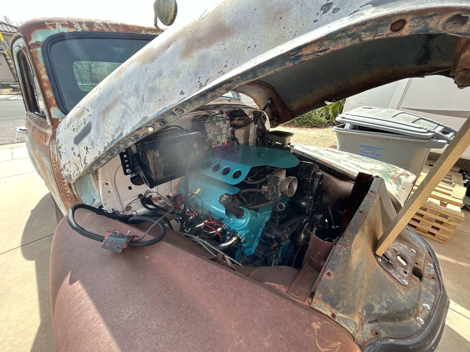 Needs lights, radiator hoses, gauges, exhaust, and that’s about it.