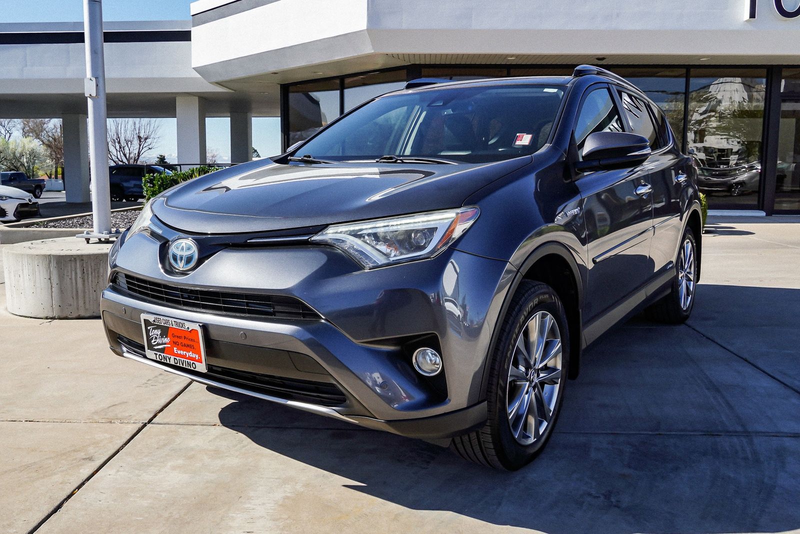 Vehicle located at new Layton location!Tony Divino Used Cars And Trucks385-493-15011573 N. Main StreetLayton Utah 840412018 Toyota RAV4 Hybrid Limited Gray 4D Sport Utility 2.5L 4-Cylinder 34/30 City/Highway MPG AWD CVT 2.5L 4-Cylinder. Clean CARFAX. Awards: * 2018 KBB.com 10 Best SUVs Under $25,000 * 2018 KBB.com 10 Most Awarded Brands * 2018 KBB.com Best Resale Value Awards*All payments are estimates and for illustrative purposes only. Actual terms, pricing, and monthly payments may vary based on vehicle selection, credit approval, lender terms, and other factors. Tax, title, license, and fees are additional. $349 documentation fee included. Vehicle availability, pricing, and specifications are subject to change without notice. Dealer is not responsible for typographical or data errors. Please verify all information with Tony Divino Used Cars And Trucks.