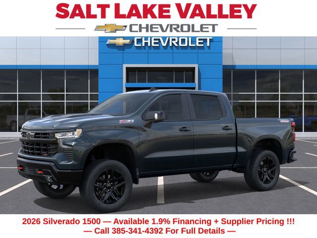 Recent Arrival! Discover the new Chevrolet Silverado 1500 at Salt Lake Valley Chevrolet in Salt Lake City! With bold design, modern technology, and reliable performance, Chevrolet makes every drive exciting. Whether it’s city streets or canyon roads, the Silverado 1500 is ready for anything. Call us today at 801-969-8221 to schedule a time to see it! --- 2026 Chevrolet Silverado 1500 Cypress Gray EcoTec3 5.3L V8 --- Final price excludes tax, tag, title, documentation fees, dealer-installed options, and any market-based pricing adjustments. Financing through GM Financial is required for all discounts to apply. Special finance offers may not be combined with certain factory incentives. While we strive for accuracy, errors may occur—please verify all information with a sales representative. For the most accurate pricing, call (801) 969-8221 or visit us in person. Prices and payments are subject to change based on manufacturer incentives. - Price includes - $4250 - Chevrolet Consumer Cash Program $500 - Chevrolet Bonus Cash