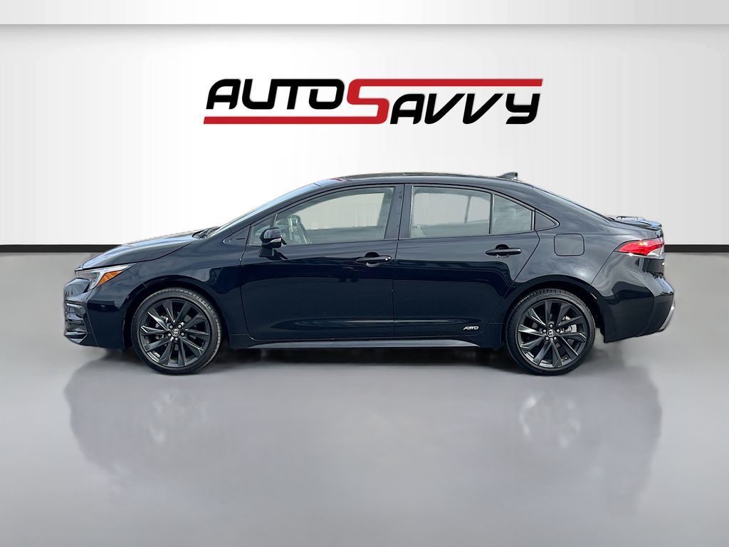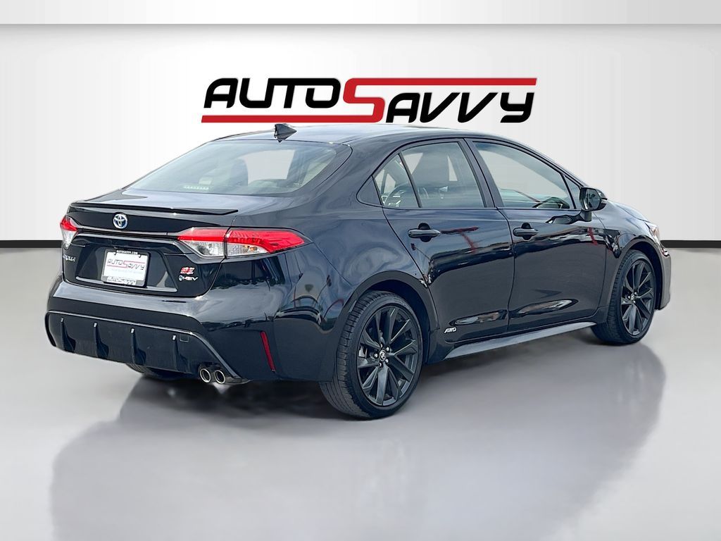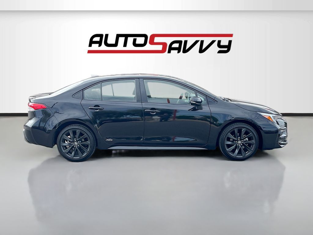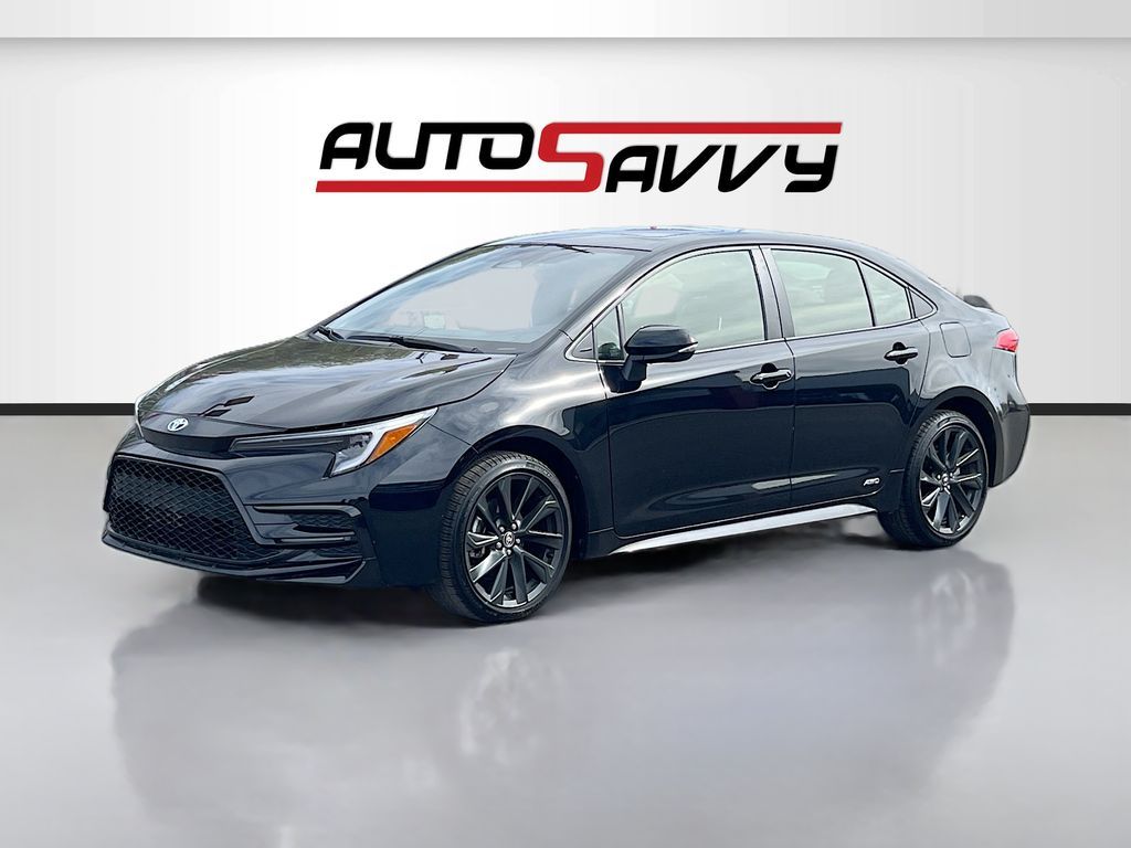 Explore the future of driving with the 2025 Toyota Corolla Hybrid SE AWD, now available at AutoSavvy Las Vegas. This sleek Midnight Black Metallic sedan is designed for efficiency and style, boasting a low mileage of just 19,875 miles. Equipped with a 1.8L I-4 DOHC engine, this hybrid offers an impressive 47 MPG in the city and 41 MPG on the highway, making it perfect for both urban commutes and long road trips. The Corolla Hybrid SE features a premium interior with black and red accents, and comes with advanced technology such as Apple CarPlay, Android Auto, and a 10.5-inch Toyota Audio Multimedia system. Enjoy peace of mind with safety features like Adaptive Cruise Control, Lane Departure Warning, and a Blind Spot Monitor. The current status of the title is branded, underscoring AutoSavvy's commitment to transparency and quality assurance. This Corolla is Savvy Certified, having undergone thorough inspections to ensure it meets high standards of reliability and performance. With the added assurance of our 4-month/4,500 Mile Warranty, you can drive confidently, knowing you've invested in a vehicle that offers exceptional value and peace of mind. Visit AutoSavvy Las Vegas today to experience the perfect blend of innovation, efficiency, and safety in the 2025 Toyota Corolla Hybrid SE AWD.