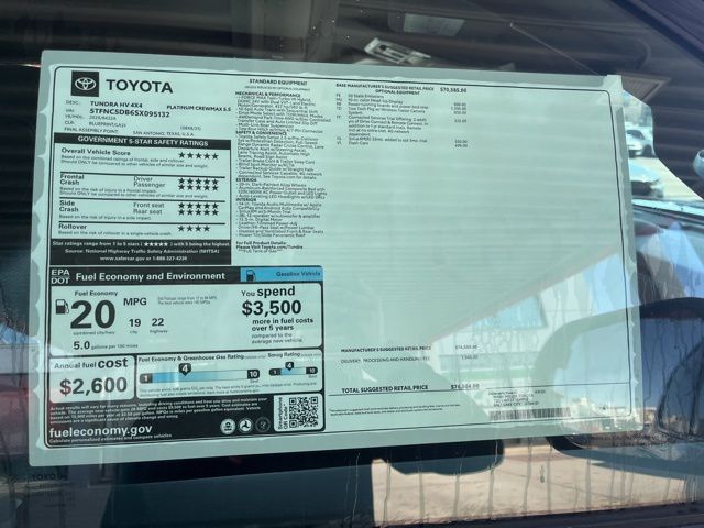 For sale in Salt Lake City UT. Mark Miller Toyota serving UT, offers great prices on a 2025 Toyota Tundra Hybrid Platinum. We are located at 730 S West Temple in Salt Lake City. Discount refers to Mark Miller Toyota Discount. Dealer retains all manufacturer rebates. College Grad and Military Rebates are not included Discount not valid with any other offers. Plus tax, Licensing, and registration.