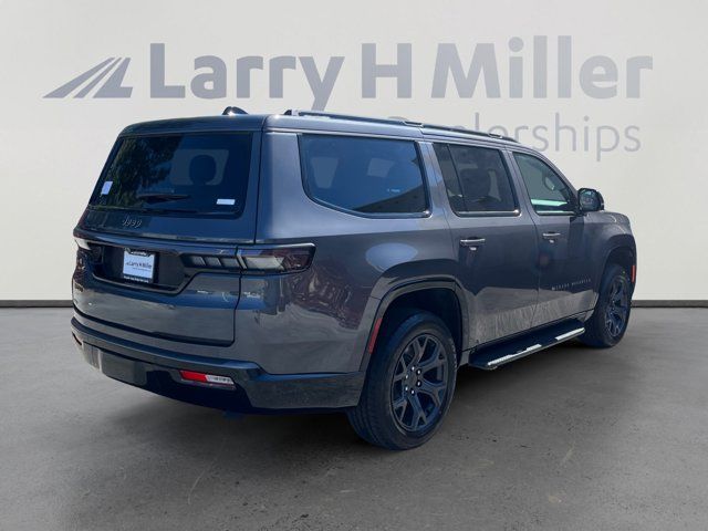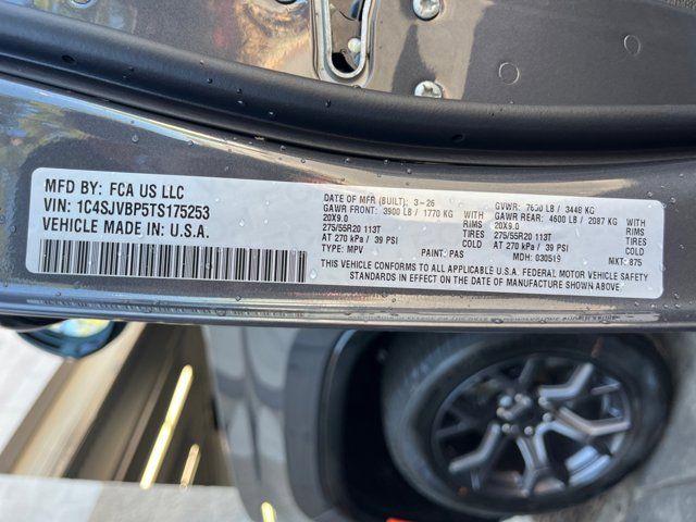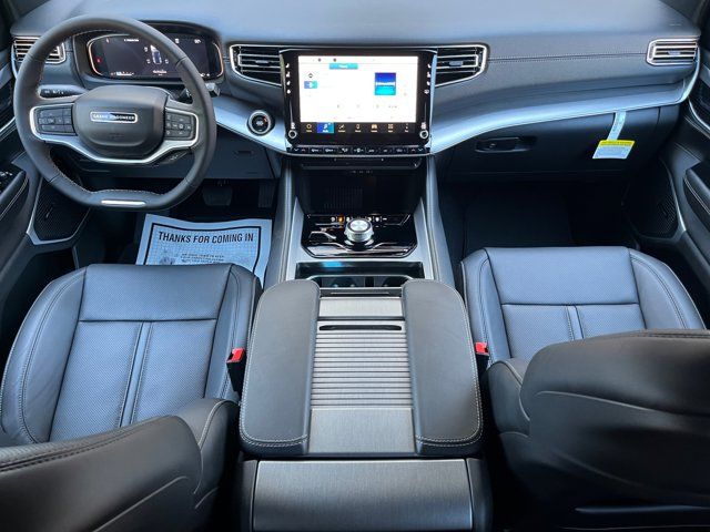 Quick Order Package 29X Altitude,MyFlexCare Service Plan,8-Passenger Seating Package,Altitude Appearance Package,40/20/40 Row Bench Power Tip/Slide,Full Length Floor Console,8-Passenger Seating,3.55 Rear Axle Ratio,Leather Trimmed Bucket Seats,Auto-Dimming Exterior Driver Mirror,118 Mph Maximum Speed Calibration,Heated Exterior Mirrors,Exterior Mirrors Approach Lamps,Exterior Mirrors with Supplemental Signals,Exterior Mirrors with Memory,Auto Adjust in Reverse Exterior Mirrors,Black Exterior Accents,Titanium Upper Grille Applique,Titanium Daylight Opening Upper,Normal Duty Suspension,Radio: Uconnect 5 Nav with 12.0 Display,Wheels: 20 x 9 Aluminum Painted,Manufacturer Statement of Origin,4-Wheel Disc Brakes,Emergency communication system: Jeep Connect,Apple CarPlay/Android Auto,AM/FM radio: SiriusXM with 360L,Auto High-beam Headlights,Exterior Parking Camera Rear,Driver's Seat Mounted Armrest,Front Center Armrest w/Storage,Compass,Speed-Sensitive Wipers,Auto-dimming Rear-View mirror,Ventilated rear seats,Ventilated front seats,Variably intermittent wipers,Turn signal indicator mirrors,Trip computer,Traction control,Tilt steering wheel,Telescoping steering wheel,Steering wheel mounted audio controls,Steering wheel memory,Split folding rear seat,Speed-sensing steering,Speed control,Security system,Remote keyless entry,Reclining 3rd row seat,Rear window wiper,Rear window defroster,Rear seat center armrest,Rear reading lights,Rear anti-roll bar,Rear air conditioning,Rain sensing wipers,Radio data system,Power windows,Power steering,Power passenger seat,Power driver seat,Power door mirrors,Passenger vanity mirror,Passenger seat mounted armrest,Passenger door bin,Panic alarm,Overhead console,Overhead airbag,Outside temperature display,Occupant sensing airbag,Memory seat,Low tire pressure warning,Knee airbag,Illuminated entry,Heated steering wheel,Heated rear seats,Heated front seats,Heated door mirrors,Garage door transmitter,Fully automatic headlights,Front reading lights,Front fog lights,Front dual zone A/C,Front anti-roll bar,Four wheel independent suspension,Dual front side impact airbags,Dual front impact airbags,Driver vanity mirror,Driver door bin,Delay-off headlights,Bumpers: body-color,Brake assist,Automatic temperature control,Auto-leveling suspension,Auto-dimming door mirrors,Audio memory,Anti-whiplash front head restraints,Alloy wheels,ABS brakes,3rd row seats: bench,Voltmeter,Tachometer,Power Liftgate,Navigation System,Front Bucket Seats,Electronic Stability Control,Air Conditioning,Adaptive Cruise Control,9 Speakers,MYFLEXCARE SERVICE PLAN,QUICK ORDER PACKAGE 29X ALTITUDE -inc: 3.0L I6 Hurricane SO Twin Turbo ESS Engine 8-Speed Auto 880RE Transmission Altitude Appearance Package Titanium Upper Grille Applique Titanium Daylight Opening Upper Black Exterior Accents,275/55R20 BSW ALL SEASON TIRES (STD),8-SPEED AUTO 880RE TRANSMISSION (STD),7 600 LBS GVWR,MANUFACTURER STATEMENT OF ORIGIN,3.0L I6 HURRICANE SO TWIN TURBO ESS ENGINE (STD),BALTIC GRAY METALLIC CLEARCOAT,GLOBAL BLACK LEATHER TRIMMED BUCKET SEATS,8-PASSENGER SEATING PACKAGE -inc: 8 Passenger Seating 40/20/40 Row Bench Power Tip/Slide Full Length Floor Console 7 600 lbs GVWR,3.55 REAR AXLE RATIO (STD),Turbocharged,Four Wheel Drive,Tow Hitch,Power Steering,ABS,4-Wheel Disc Brakes,Brake Assist,Locking/Limited Slip Differential,Aluminum Wheels,Tires - Front Performance,Tires - Rear Performance,Conventional Spare Tire,Power Folding Mirrors,Heated Mirrors,Integrated Turn Signal Mirrors,Power Mirror(s),Rear Defrost,Privacy Glass,Intermittent Wipers,Variable Speed Intermittent Wipers,Rain Sensing Wipers,Running Boards/Side Steps,Remote Trunk Release,Power Liftgate,Power Door Locks,Daytime Running Lights,Automatic Headlights,LED Headlights,Fog Lamps,Automatic Highbeams,AM/FM Stereo,Navigation System,Bluetooth Connection,Premium Sound System,Satellite Radio,MP3 Capability,Steering Wheel Audio Controls,Auxiliary Audio Input,HD Radio,Requires Subscription,Premium Sound System,Bluetooth Connection,Power Driver Seat,Power Passenger Seat,Driver Adjustable Lumbar,Seat Memory,Heated Front Seat(s),Cooled Front Seat(s),Power Driver Seat,Driver Adjustable Lumbar,Power Passenger Seat,Passenger Adjustable Lumbar,Bucket Seats,Adjustable Steering Wheel,Trip Computer,Power Windows,WiFi Hotspot,3rd Row Seat,Heated Steering Wheel,Keyless Entry,Power Door Locks,Keyless Start,Keyless Entry,Power Door Locks,Hands-Free Liftgate,Universal Garage Door Opener,Cruise Control,Adaptive Cruise Control,Climate Control,Multi-Zone A/C,A/C,A/C,Rear A/C,Leather Seats,Bucket Seats,Auto-Dimming Rearview Mirror,Driver Vanity Mirror,Passenger Vanity Mirror,Driver Illuminated Vanity Mirror,Passenger Illuminated Visor Mirror,Floor Mats,Seat Memory,Remote Engine Start,Keyless Start,Remote Engine Start,Smart Device Integration,Requires Subscription,Navigation System,Smart Device Integration,Mirror Memory,Power Windows,Power Door Locks,Trip Computer,Security System,Immobilizer,Cruise Control Steering Assist,Traction Control,Stability Control,Traction Control,Front Side Air Bag,Telematics,Requires Subscription,Cross-Traffic Alert,Rear Collision Mitigation,Cross-Traffic Alert,Lane Departure Warning,Lane Keeping Assist,Lane Departure Warning,Front Collision Mitigation,Driver Monitoring,Rear Parking Aid,Blind Spot Monitor,Tire Pressure Monitor,Driver Air Bag,Passenger Air Bag,Front Head Air Bag,Rear Head Air Bag,Passenger Air Bag Sensor,Knee Air Bag,Child Safety Locks,Back-Up Camera