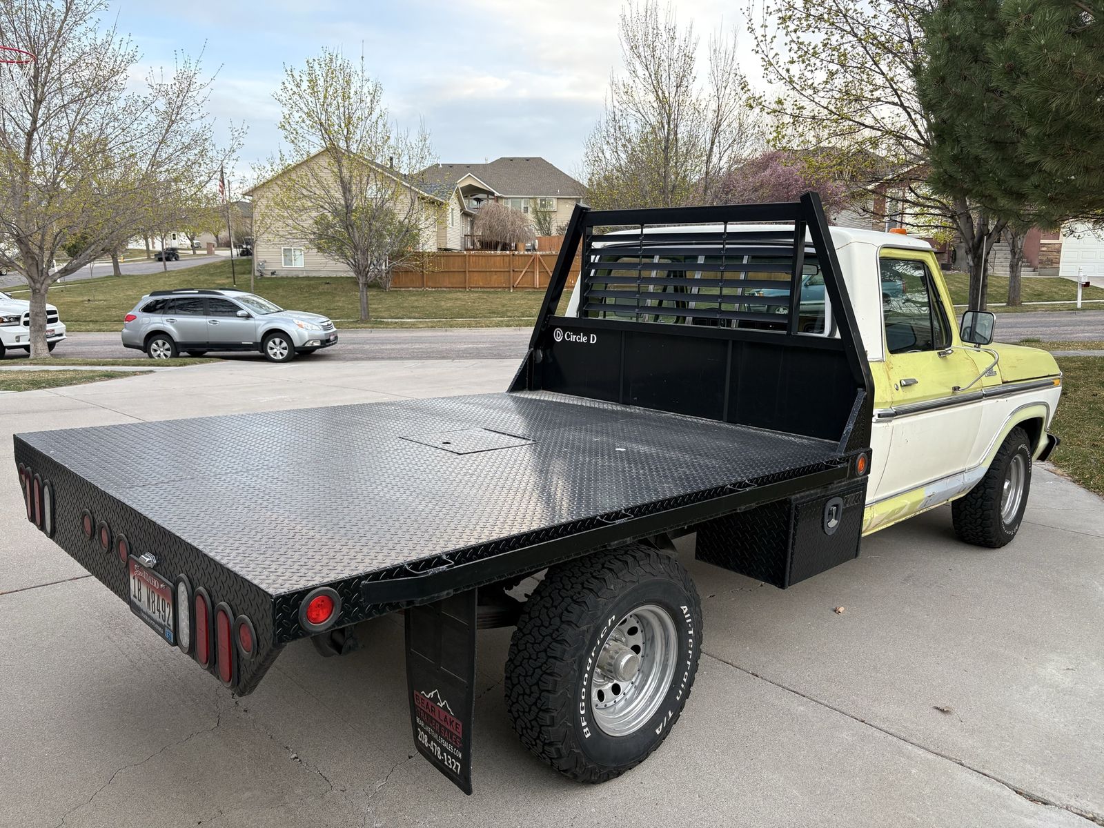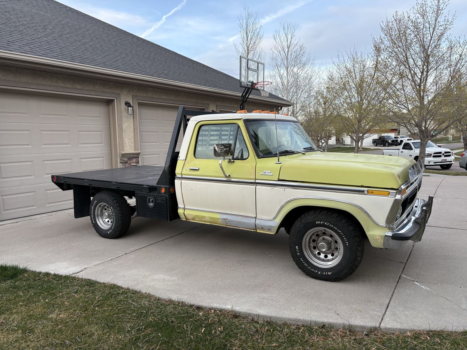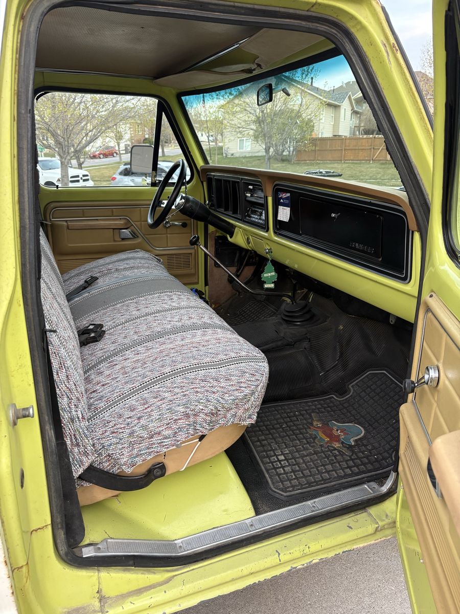 1977 Ford longbed flatbed. This is a solid older truck. It is a 2 wheel drive with the 4 speed manual transmission. I am the second owner. My grandpa bought it brand new. At some point he put a 400 in it. Miles are unknown. It’s not perfect but it is a solid truck for the age. I had it in storage and I put a brand new battery in it and it fired right up and ran pretty good.