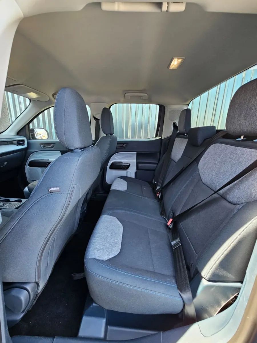 Front Pedestrian Automatic emergency braking, Front Automatic emergency braking, Lane keeping assist, Check rear seat reminder, Pedestrian Detection Pre-collision warning system, Driver attention alert system, Audible Warning Pre-collision warning system, Visual Warning Pre-collision warning system, Lane deviation sensors, Driver Knee airbags, Rearview Camera system, Front Side airbags, Rear Side curtain airbags, Front Side curtain airbags, Regenerative braking system, 4-wheel ABS, Emergency braking preparation, Auto-locking Power door locks, Auto Off Electronic parking brake, Perimeter Alarm Anti-theft system, Trailer stability control, Ventilated Disc Rear brake, Alarm Anti-theft system, Braking assist, Hill holder control, Ventilated Disc Front brake, Dual Front airbags, Vehicle Immobilizer Anti-theft system, Power brakes, LATCH System Child seat anchors, Electronic brakeforce distribution, Stability control, Traction control, In Dash Rearview monitor, Occupant Sensing Passenger Airbag deactivation, Front Seatbelt pretensioners, Front Seatbelt force limiters, Front Emergency locking retractors, Post-collision Safety System Impact sensor, Alert System Impact sensor, Rear Emergency locking retractors, Roll stability control, Front Seatbelt warning sensor, Painted Aluminum Alloy Wheels, LED Headlights, Auto High Beam Dimmer Headlights, Safety Reverse Power windows, Power Locking Tailgate, Power Side mirror adjustments, Daytime running lights, Steel Spare wheel, Variable Intermittent Front wipers, Rear privacy glass, Tire Pressure Monitoring System, Auto On/off Headlights, Auto Delay Off Headlights, Temporary Spare tire size, Pickup bed light, Wiper Activated Headlights, Black Rear bumper color, Black Window trim, Black Door handle color, Black Mirror color, Manual Folding Side mirror adjustments, Black Surround Grille color, Black Grille color, Black Front bumper color, Hotspot Wi-Fi, 13.2 In. Infotainment screen size, Apple CarPlay Smartphone integration, Android Auto Smartphone integration, FordPass Connect Smart device app compatibility, Bluetooth Wireless data link, Voice Operated Hands-free phone call integration, Voice Operated Radio, Bluetooth Auxiliary audio input, Engine Start Smart device app function, Touch Screen Display Radio, App Marketplace Integration Connected in-car apps, Voice Operated Electronic messaging assistance, SiriusXM Satellite radio, 6 Total speakers, USB Auxiliary audio input, IPod/iPhone Auxiliary audio input, Vehicle Location Smart device app function, Lock Operation Smart device app function, SYNC Infotainment, Maintenance Status Smart device app function, AM/FM Radio, Radio data system, Speed sensitive volume control, Google POIs Connected in-car apps, Google Search Connected in-car apps, Proximity Entry System Multi-function remote, Push-button start, In Bed Storage, Variable/speed-proportional Power steering, Cruise control, Cloth Upholstery, Bucket Front seat, Front air conditioning, 8 In. Instrument cluster screen size, Carpet Floor mat material, Bench Rear seat, Air filtration, Capless fuel filler system, Folds Up Rear seat folding, USB Front Power outlet(s), USB-C Front Power outlet(s), USB Rear Power outlet(s), USB-C Rear Power outlet(s), 12V Front Power outlet(s), Tilt And Telescopic Steering wheel, Front Floor mats, Lumbar Driver seat manual adjustments, Multi-function display, Lumbar Passenger seat manual adjustments, Front Console With Armrest And Storage Center console, External temperature display, MPG Fuel economy display, Range Fuel economy display, 6 Driver seat manual adjustments, Front Reading lights, Tachometer Gauge, Manual Day/night Rearview mirror, Front Cupholders, Maintenance Due Warnings and reminders, Front Overhead console, 1 One-touch windows, Panic Alarm Multi-function remote, Audio Steering wheel mounted controls, Dual Vanity mirrors, Under Rear Seats Storage, Carpet Floor material, Cruise Control Steering wheel mounted controls, Phone Steering wheel mounted controls, Front Seatback Storage, Single Front air conditioning zones, Auto start/stop, 4-pin Trailer wiring, Receiver Hitch Trailer hitch, Drive mode selector, Independent Front suspension classification, MacPherson Front struts, Diameter 28 Mm Front stabilizer bar, Tow/Haul mode, Battery saver, Twin-tube Gas Rear shock, Twin-tube Gas Front shock, Tie-down Anchors Pickup bed cargo management, 1.1 KWh EV battery capacity